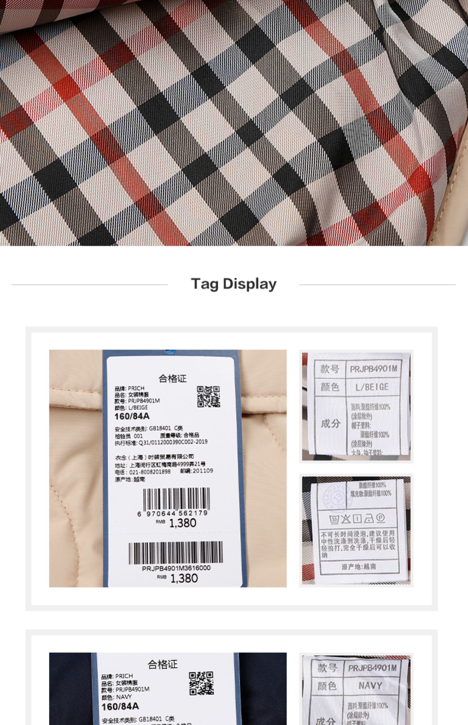 PRICH可拆卸短款棉服PRJPB4901M