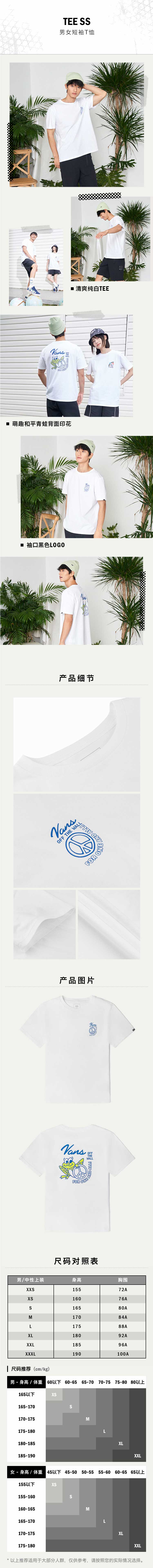 VANS男女情侣短袖T恤夏季宽松彩色图案和平青蛙白色VN0A7PZHWHT