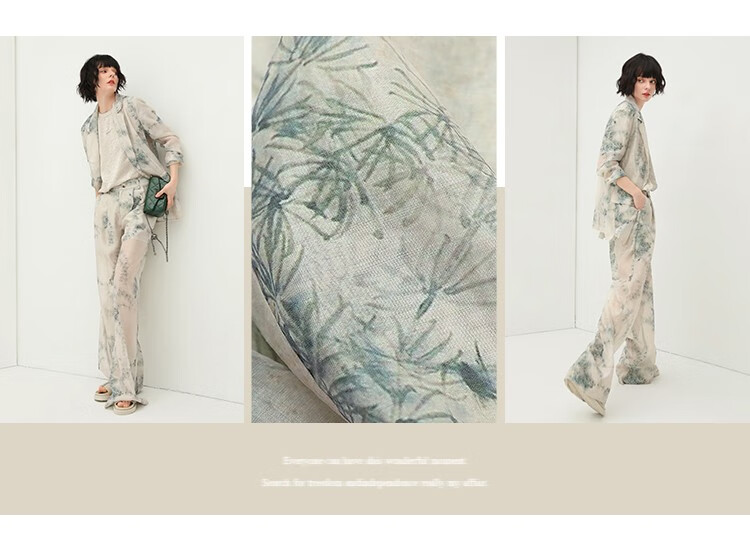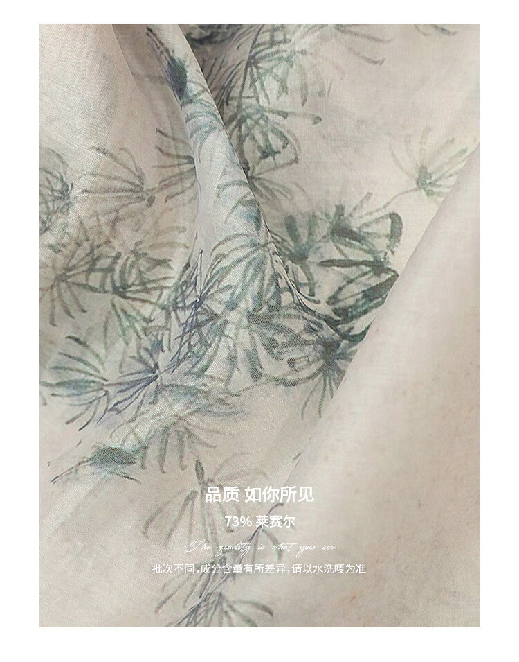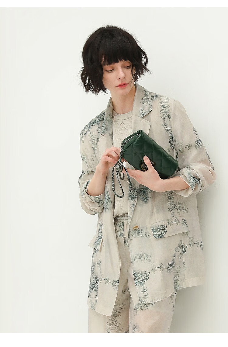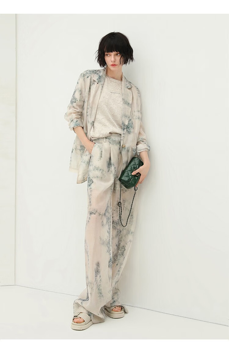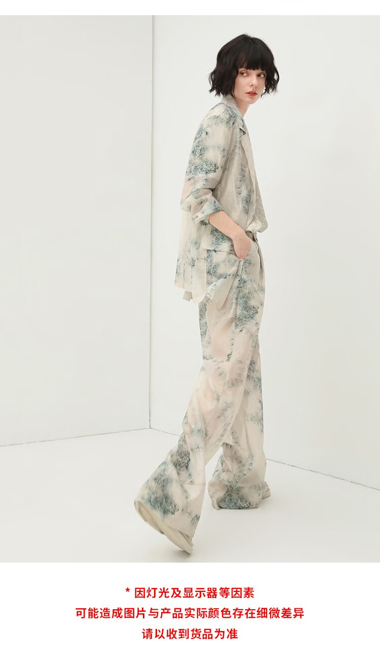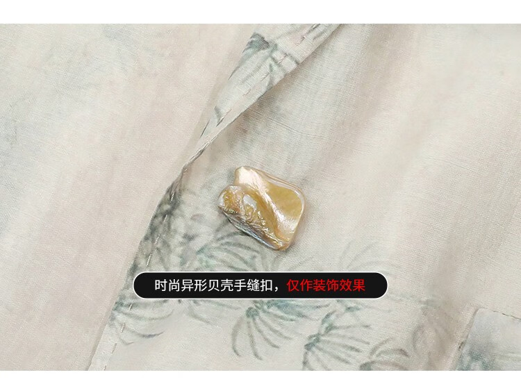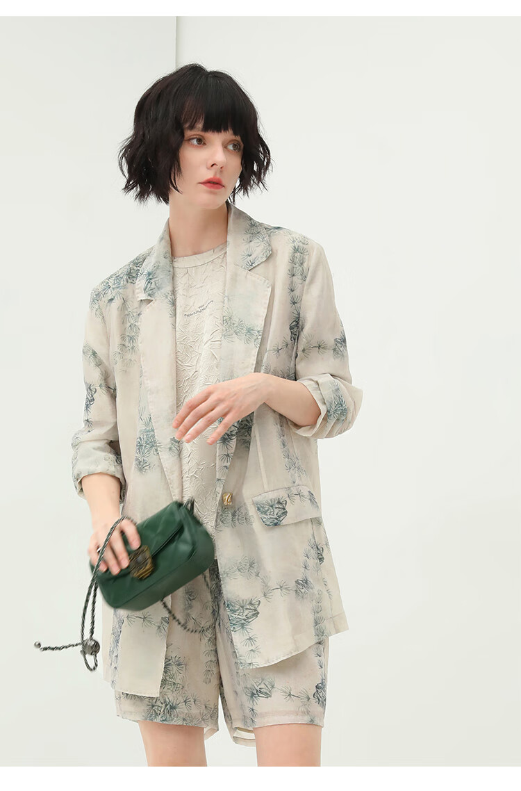 COCOBELLA国风写意印花新中式贡针西装莱赛尔微透视外套SI532