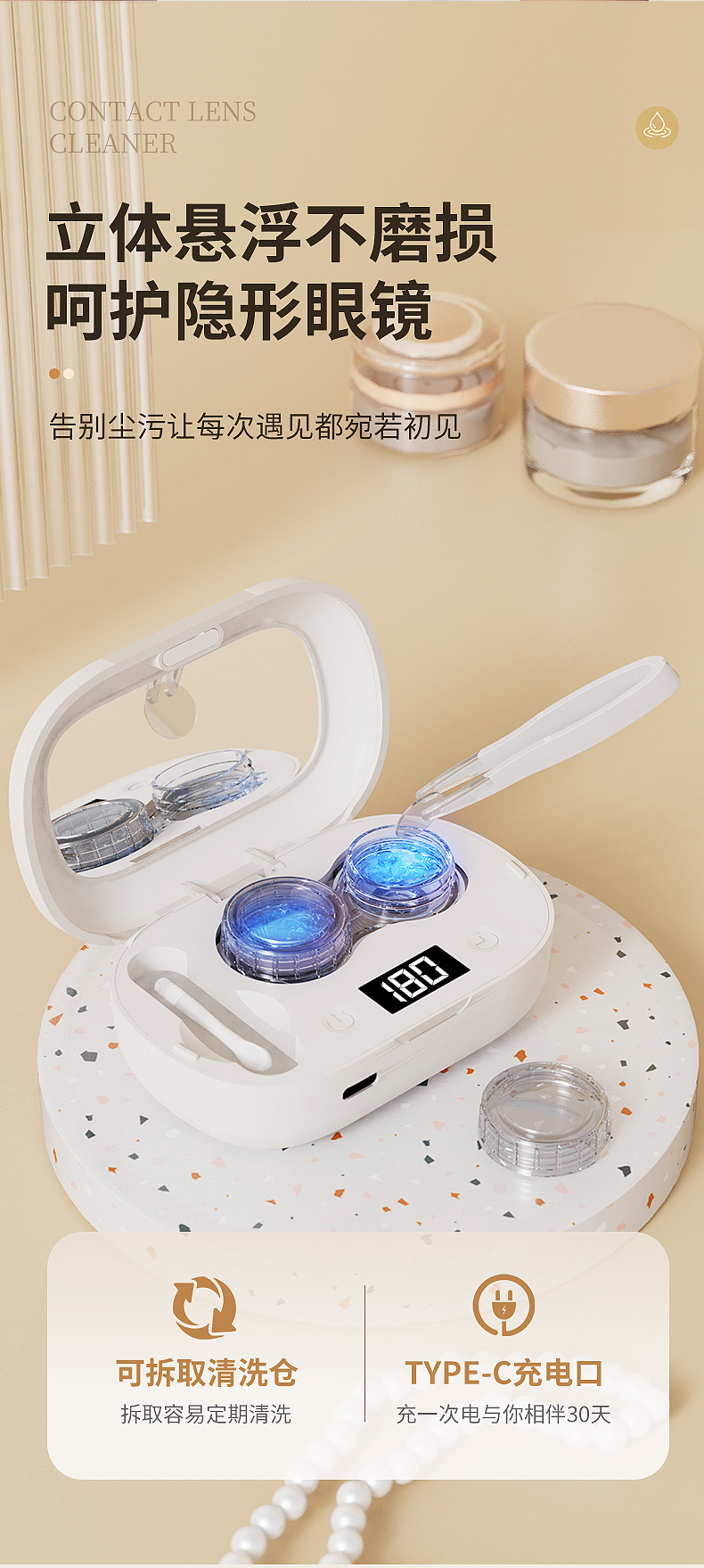 新升级 便携清洗器 隐形眼镜美瞳清洗器 高频自动蓝光杀菌 深度清洁神器
