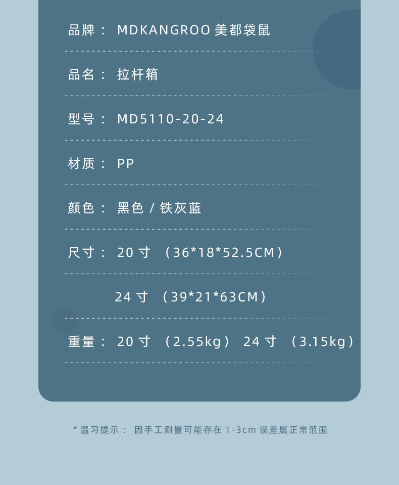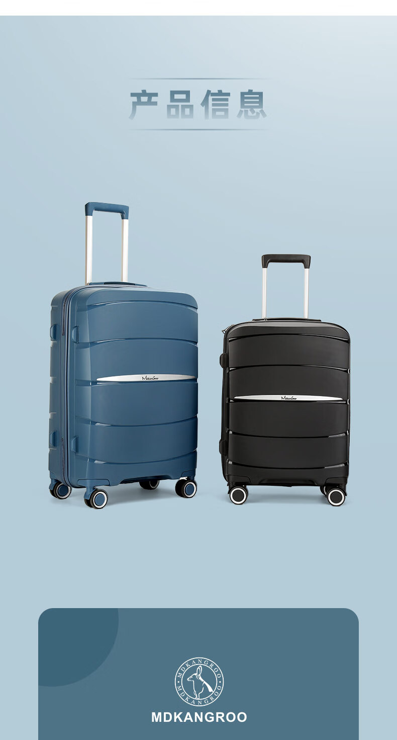 美都袋鼠(MDKANGROO)全新pp商务休闲旅行箱学生男女通用拉杆箱时尚登机箱