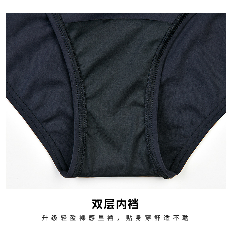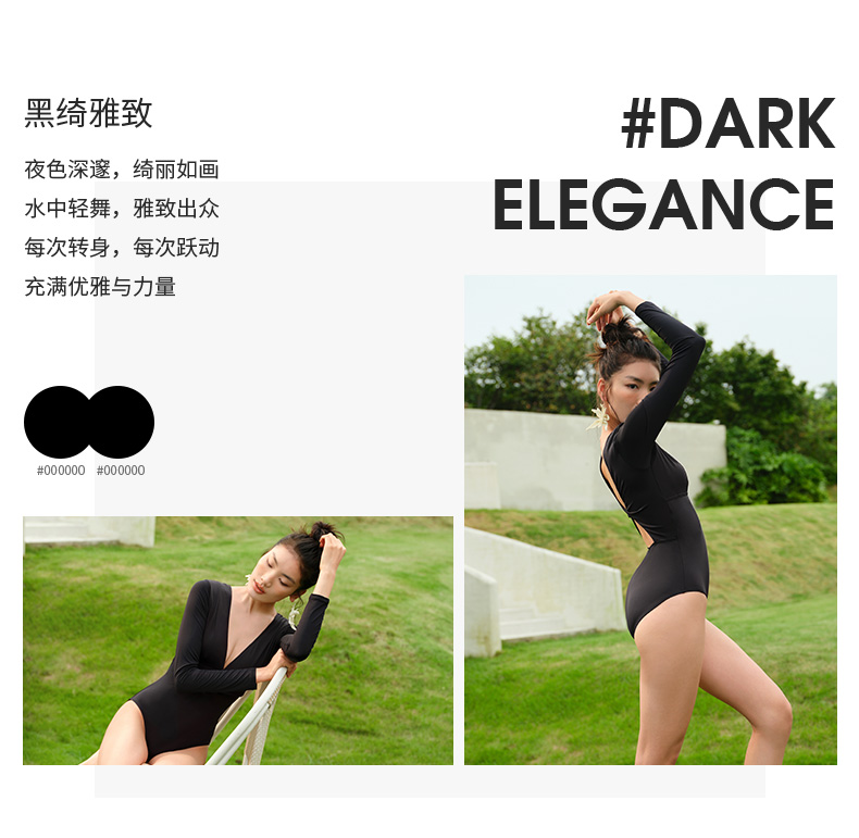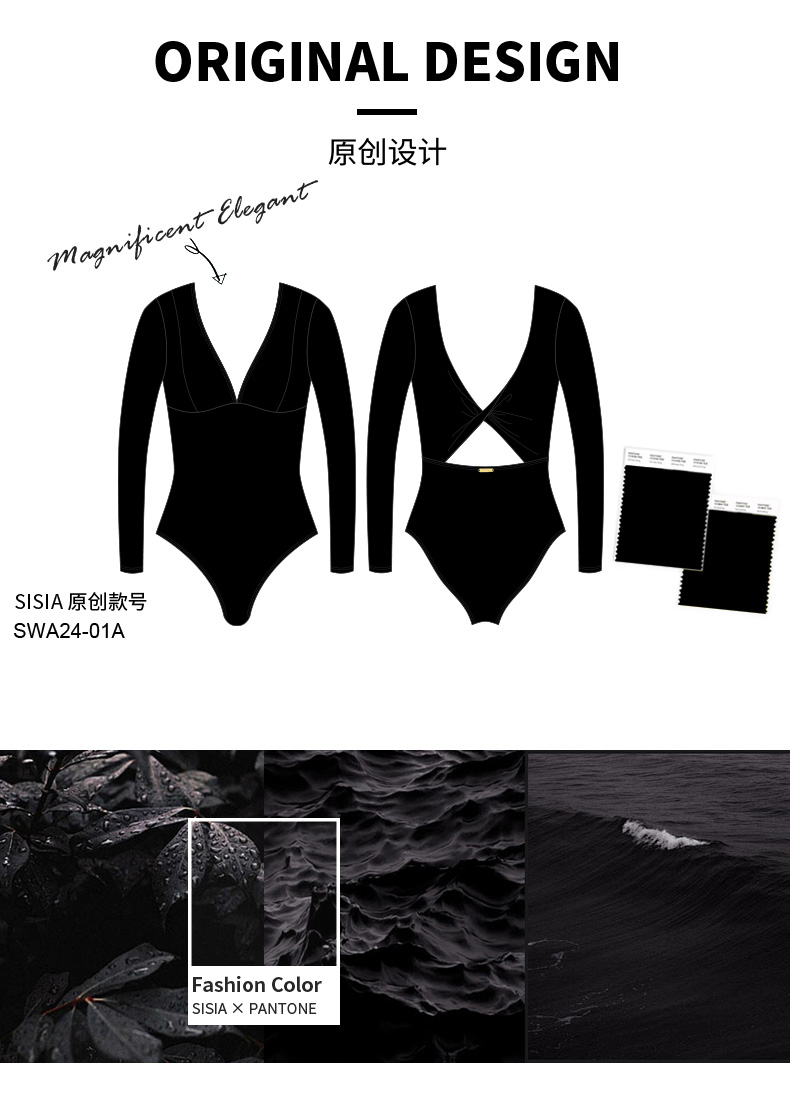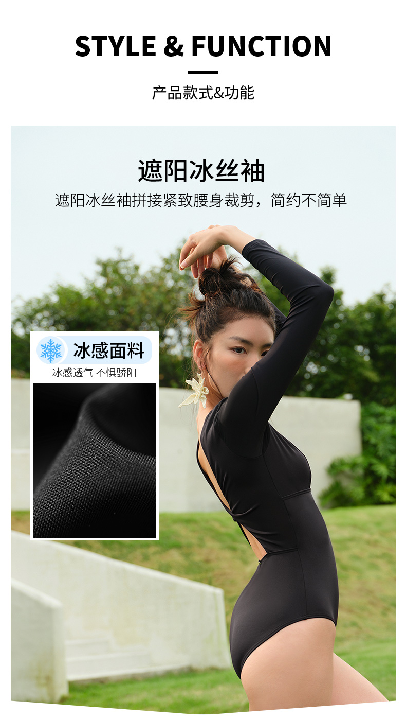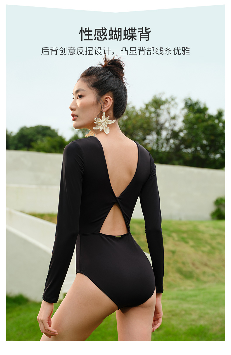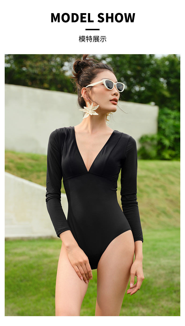 sisia连体泳衣女款性感纯欲V领露背游泳衣长袖防晒显瘦泡温泉泳装SWA24-01A