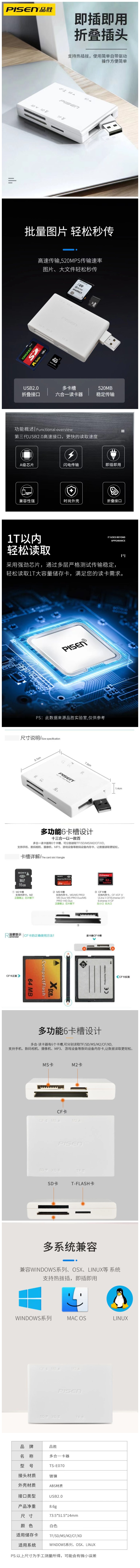 品胜读卡器SD内存卡TF高速CF XD转换器佳能相机MS大卡PSP记忆棒M2车载手机电脑