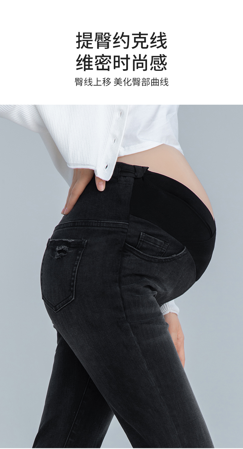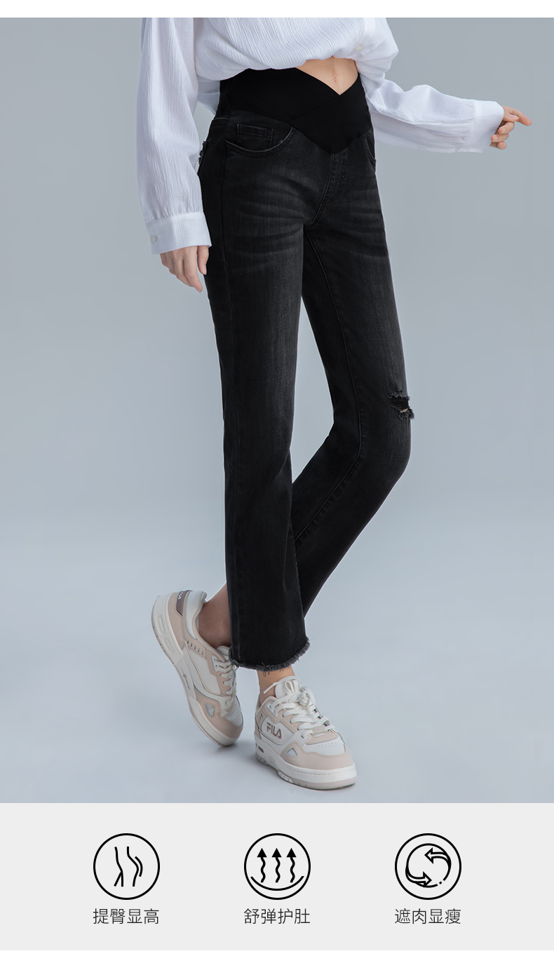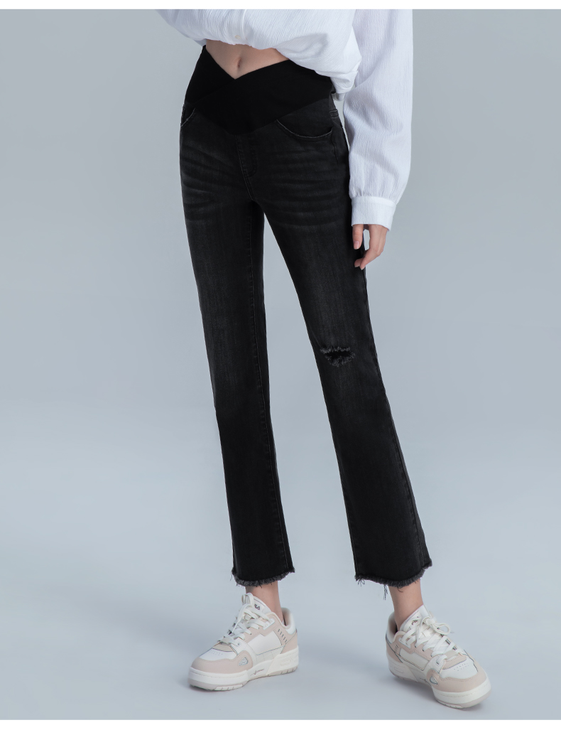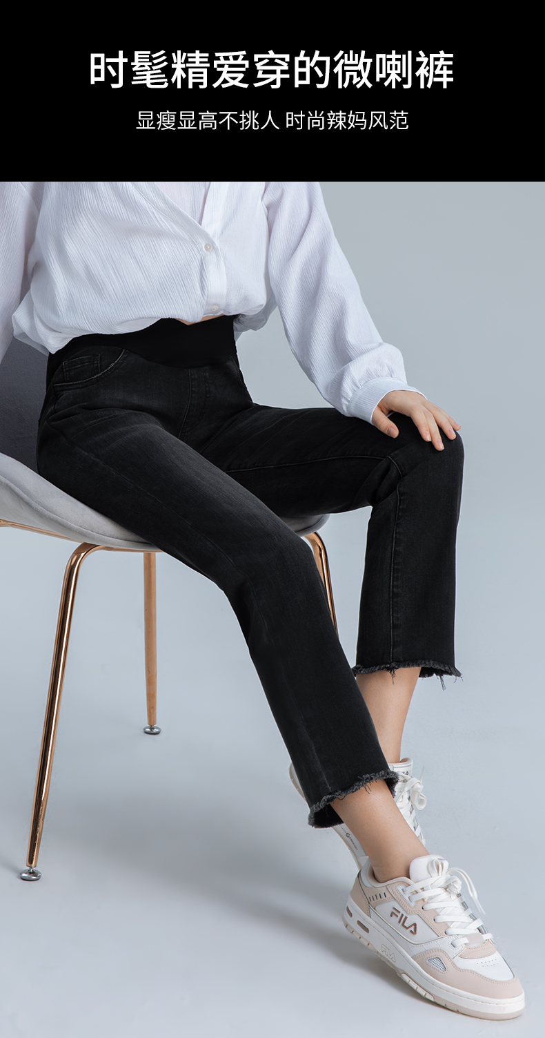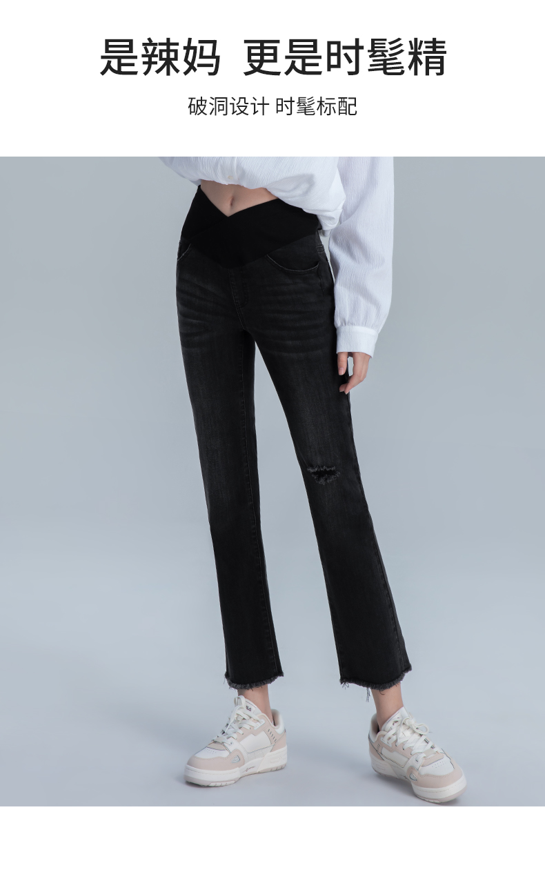 【孕妈服饰】嫚熙孕妇微喇叭裤子春秋装时尚外穿破洞阔腿宽松直筒阔腿牛仔裤女