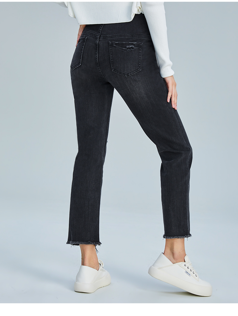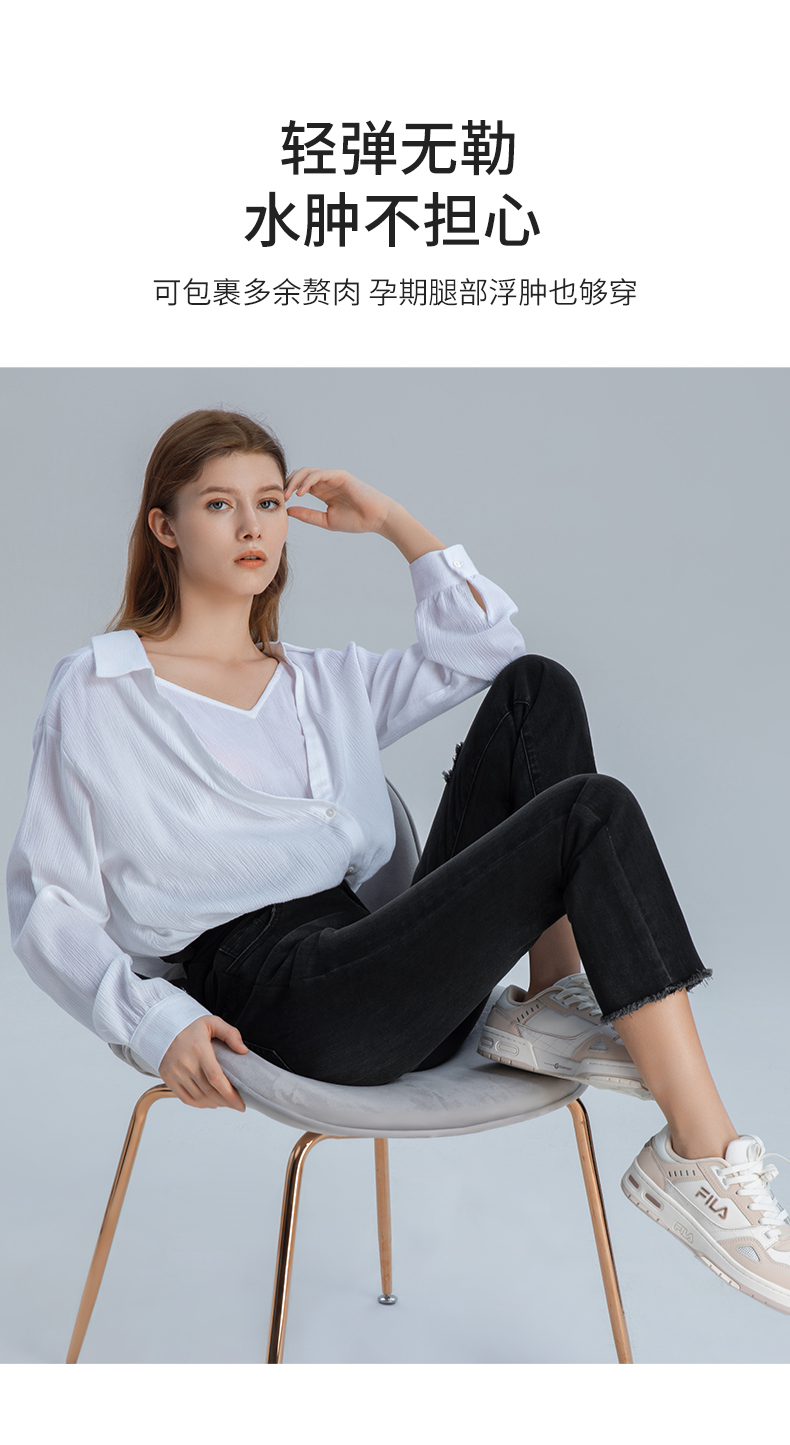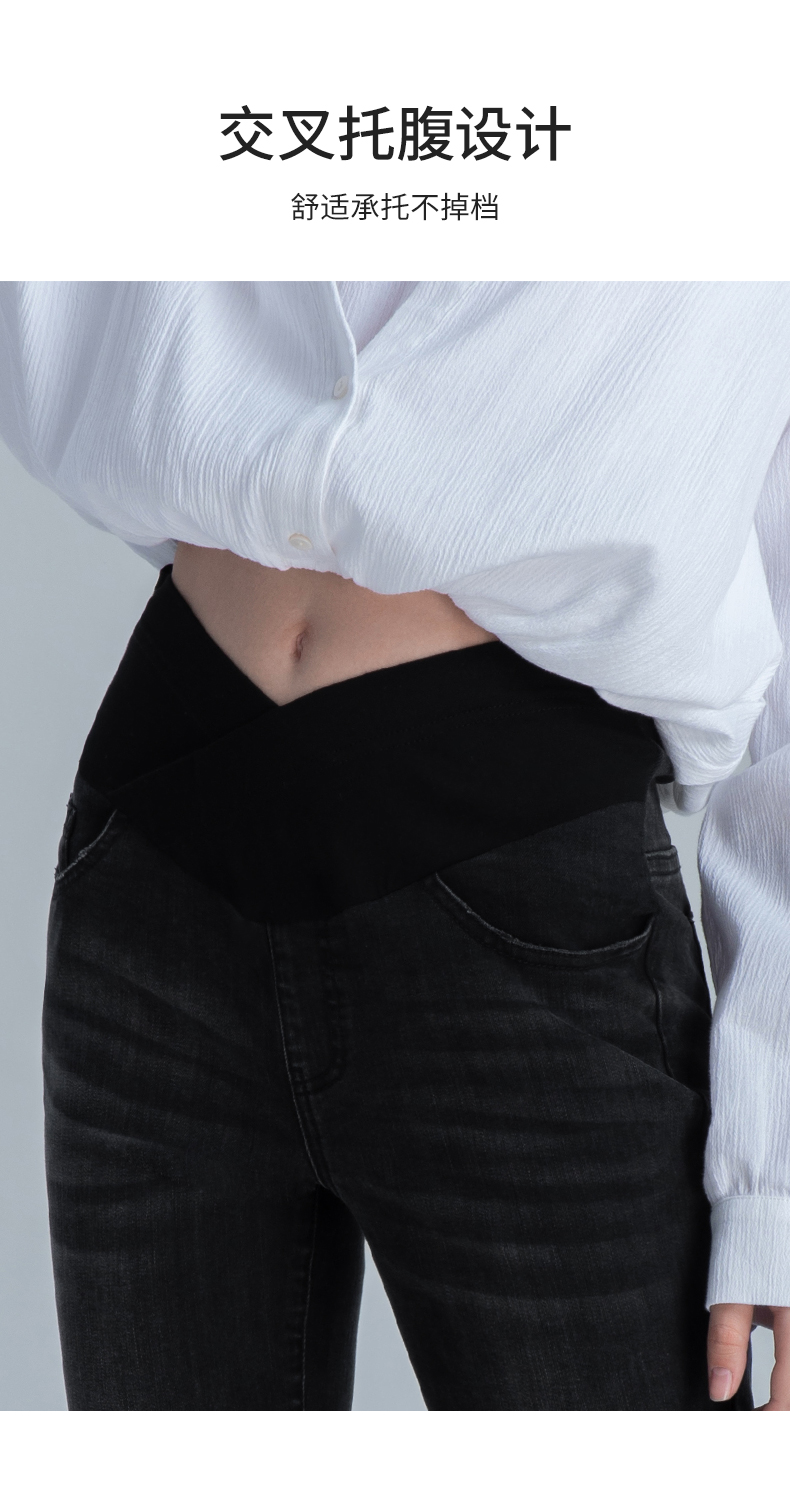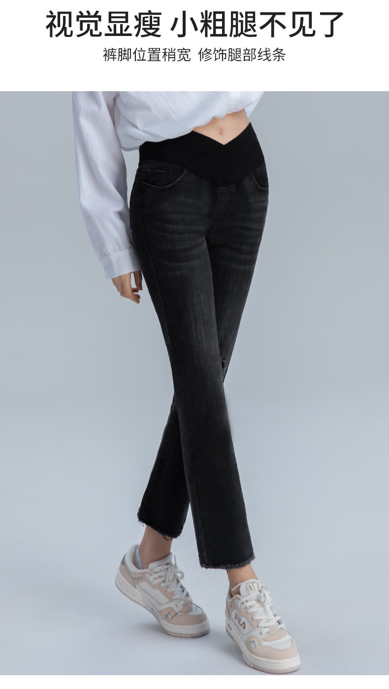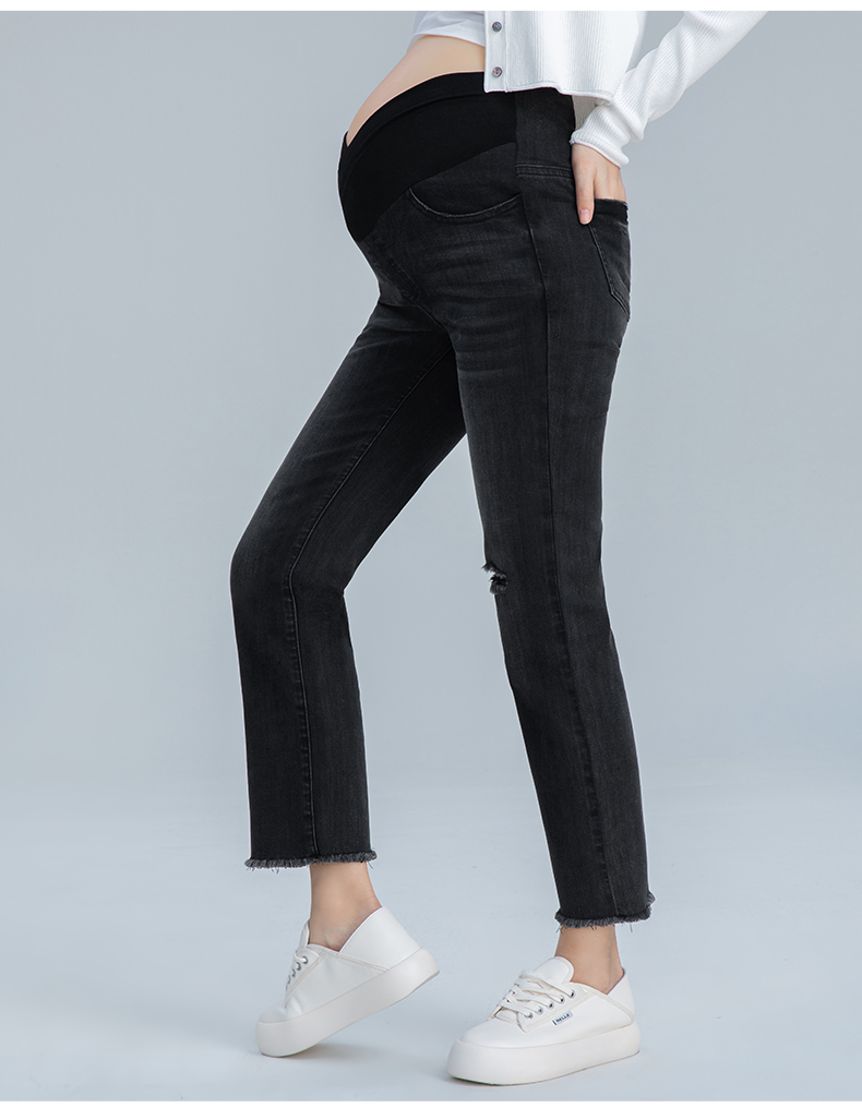 【孕妈服饰】嫚熙孕妇微喇叭裤子春秋装时尚外穿破洞阔腿宽松直筒阔腿牛仔裤女