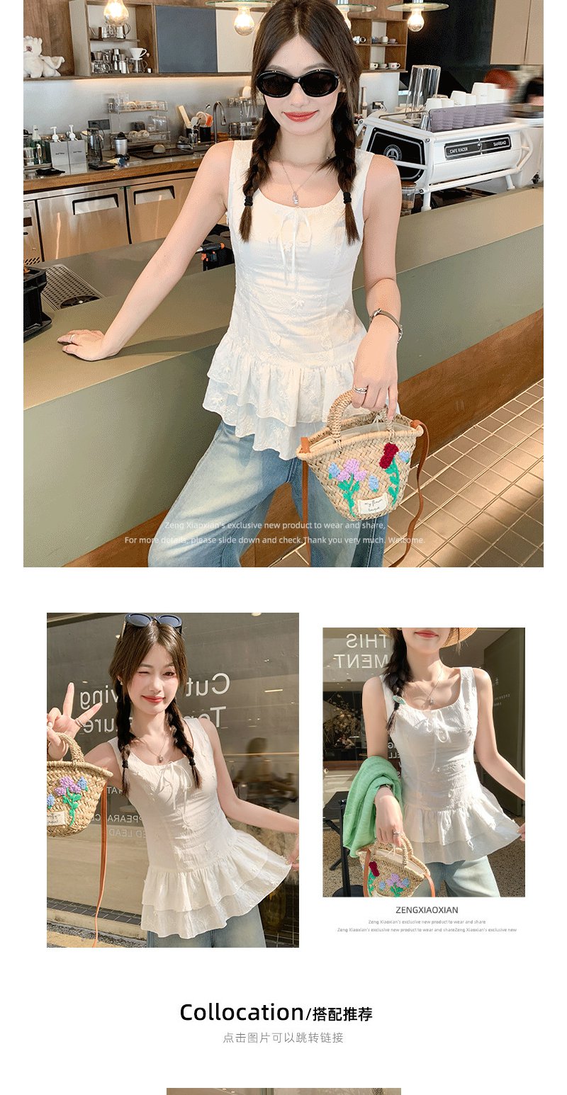 <曾小咸推荐>韩系气质无袖提花吊带背心