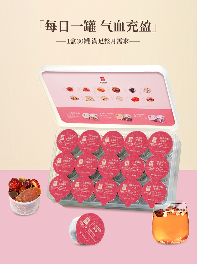 热售【红参阿胶玫瑰花女神茶】人参花茶泡水养生小罐茶饮品450g