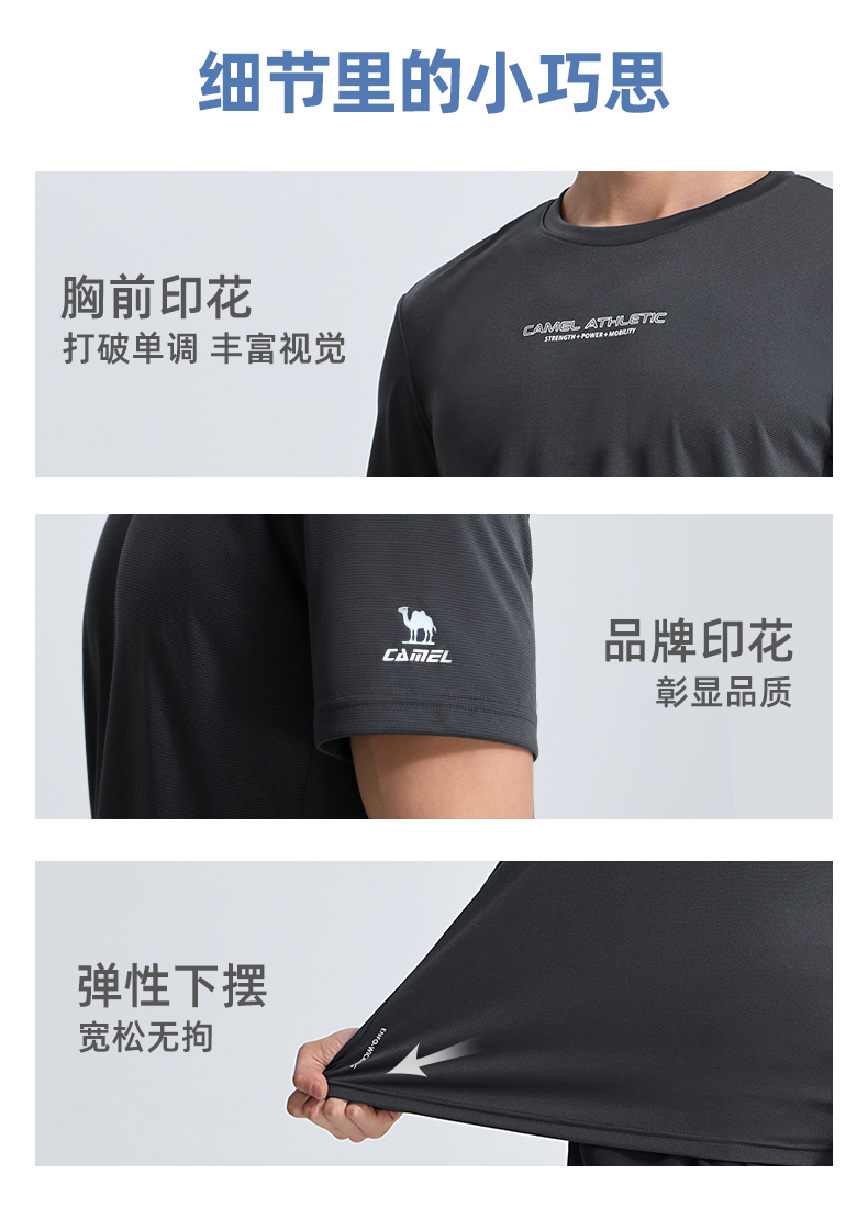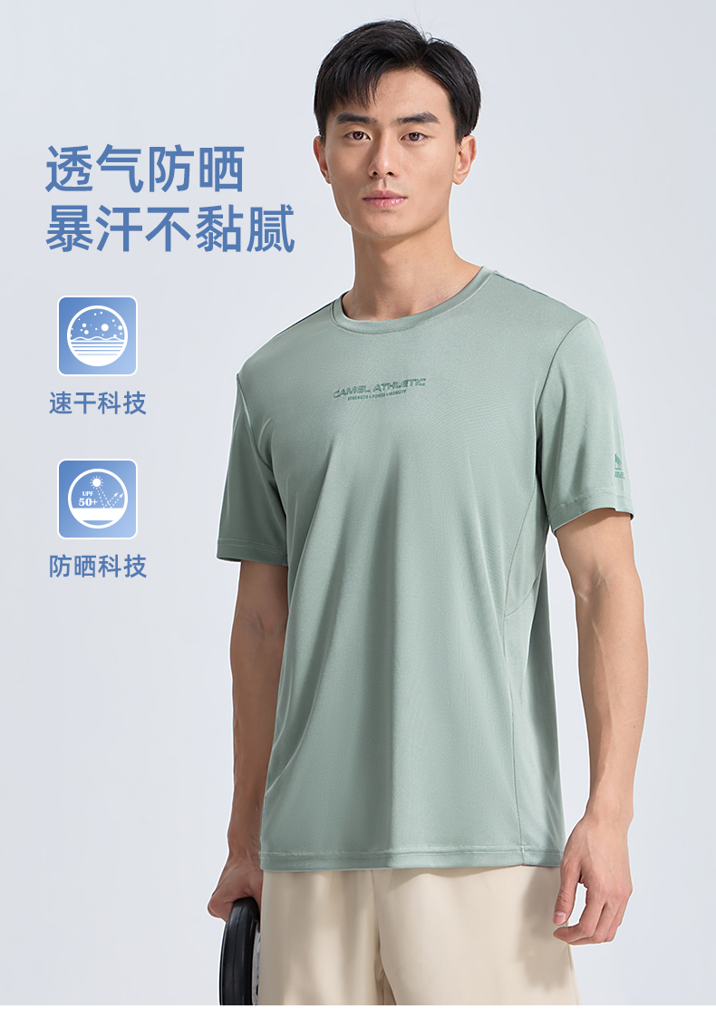 骆驼运动速干T恤男士2025夏季新款薄款透气健身跑步防晒短袖上衣 J14BAY6065