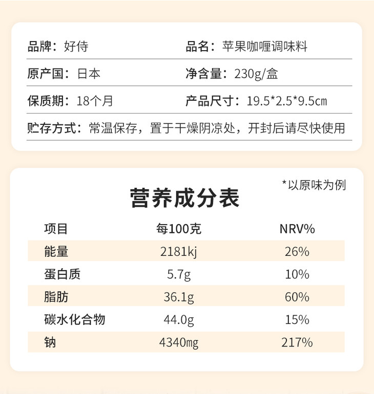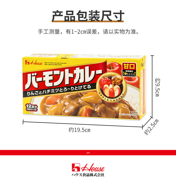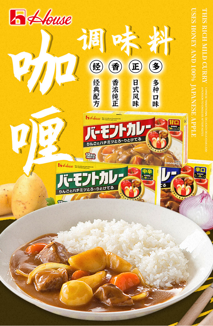 进口日本咖喱 好侍蜂蜜苹果咖喱微辣(复合调味料) 230g(853887)