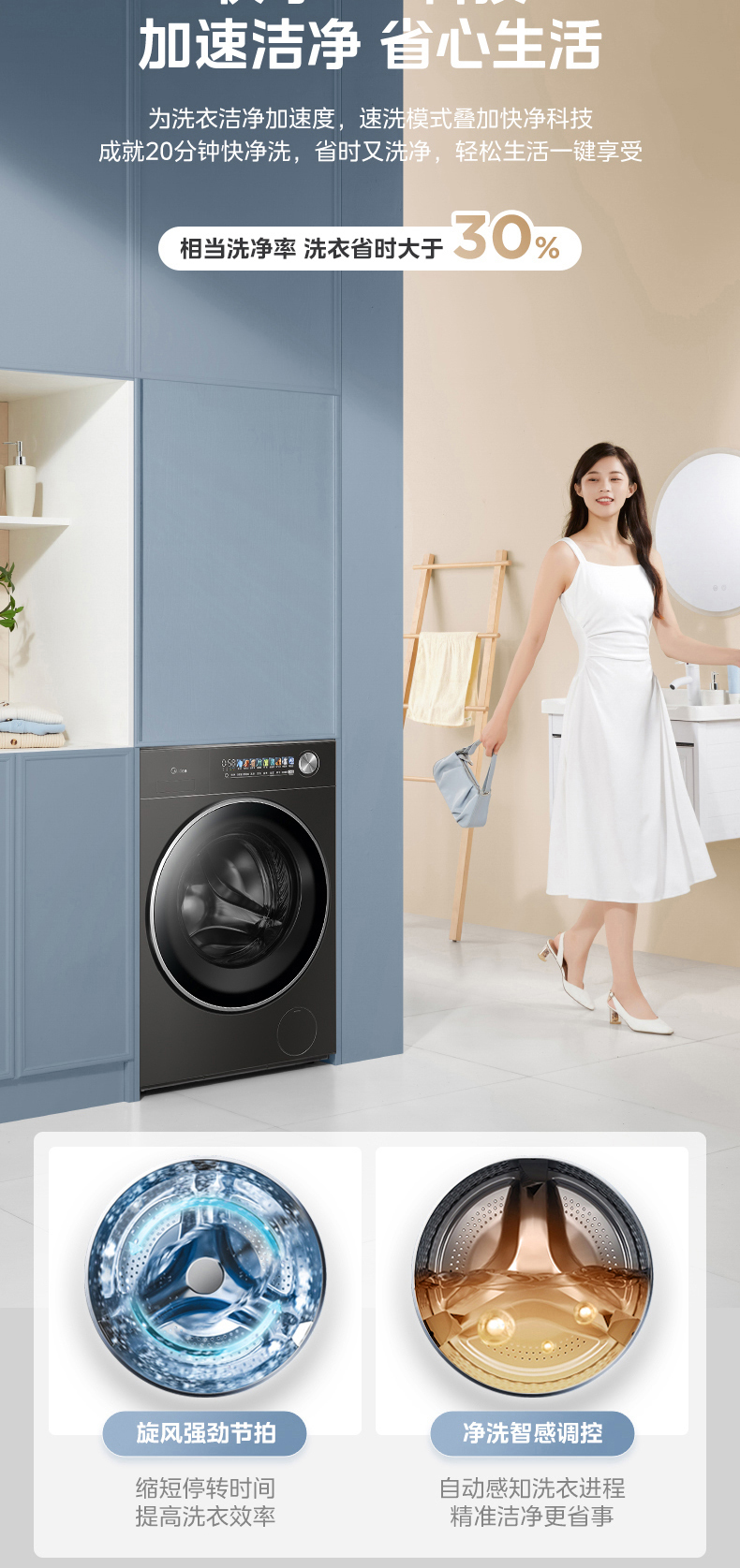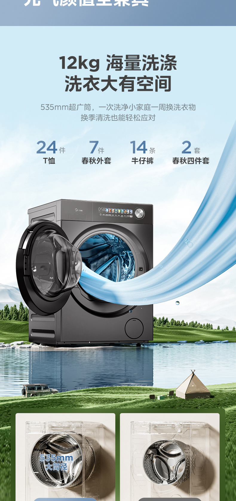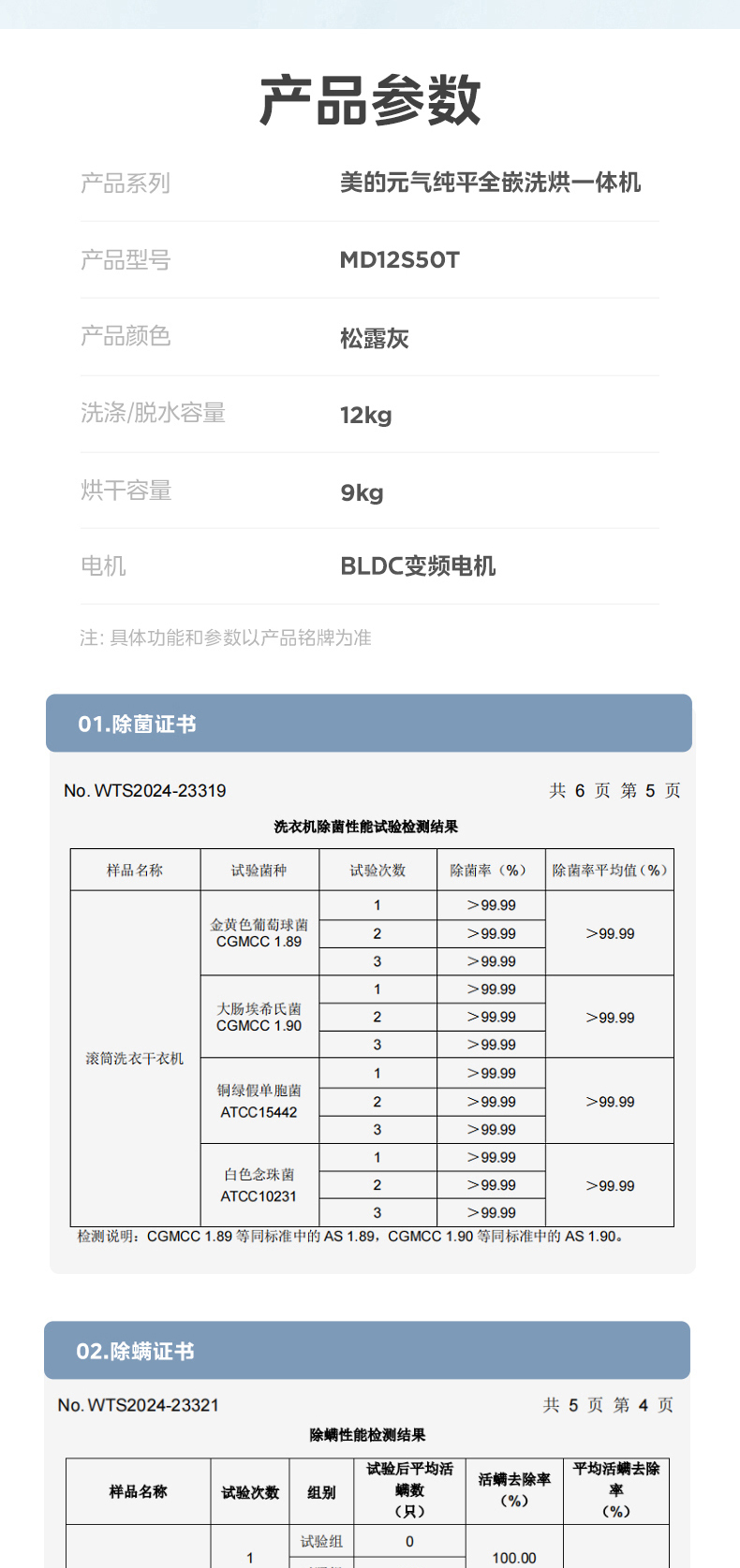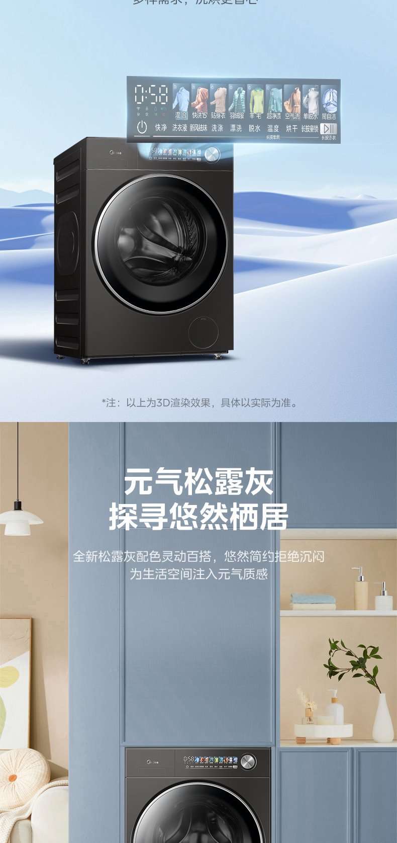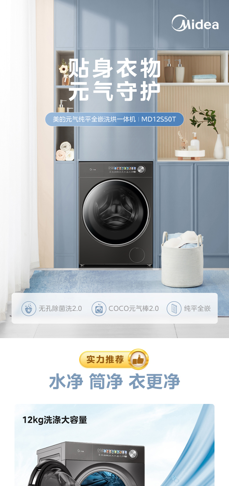 美的 MD12S50T 滚筒洗干一体机 松露灰 220V,1Ph 50Hz 转速1200 不带银离子