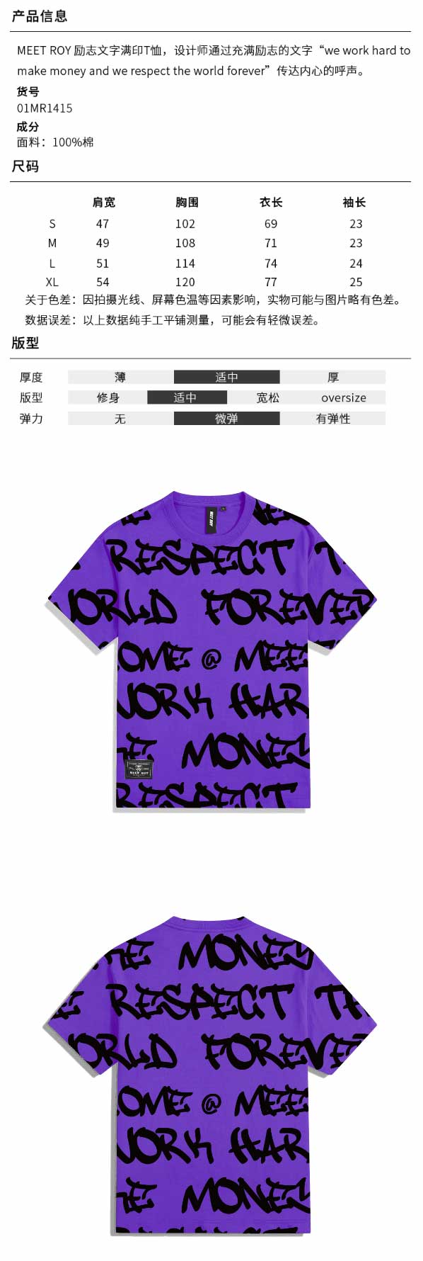 MEET ROY满印励志文字印花T恤01MR1415