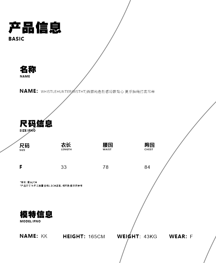 WHISTLEHUNTER(WSTHT)百搭纯色性感短款背心 夏季抽绳打底吊带