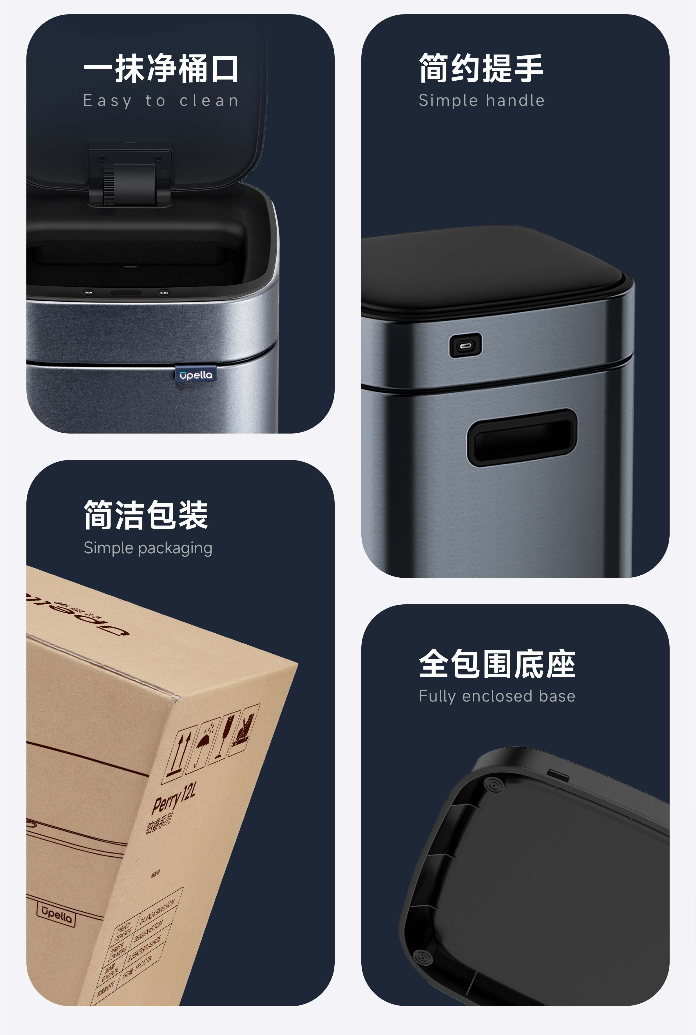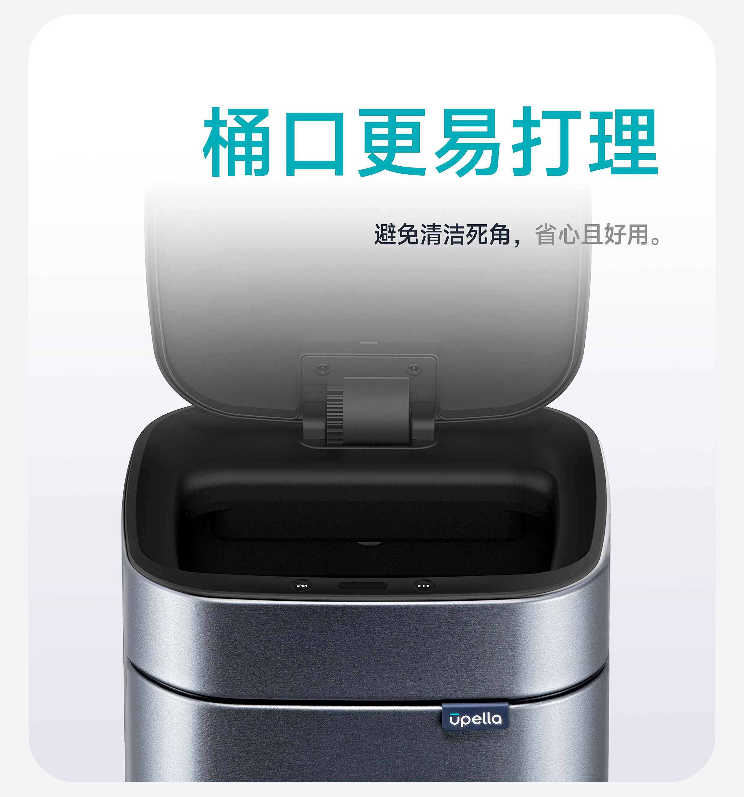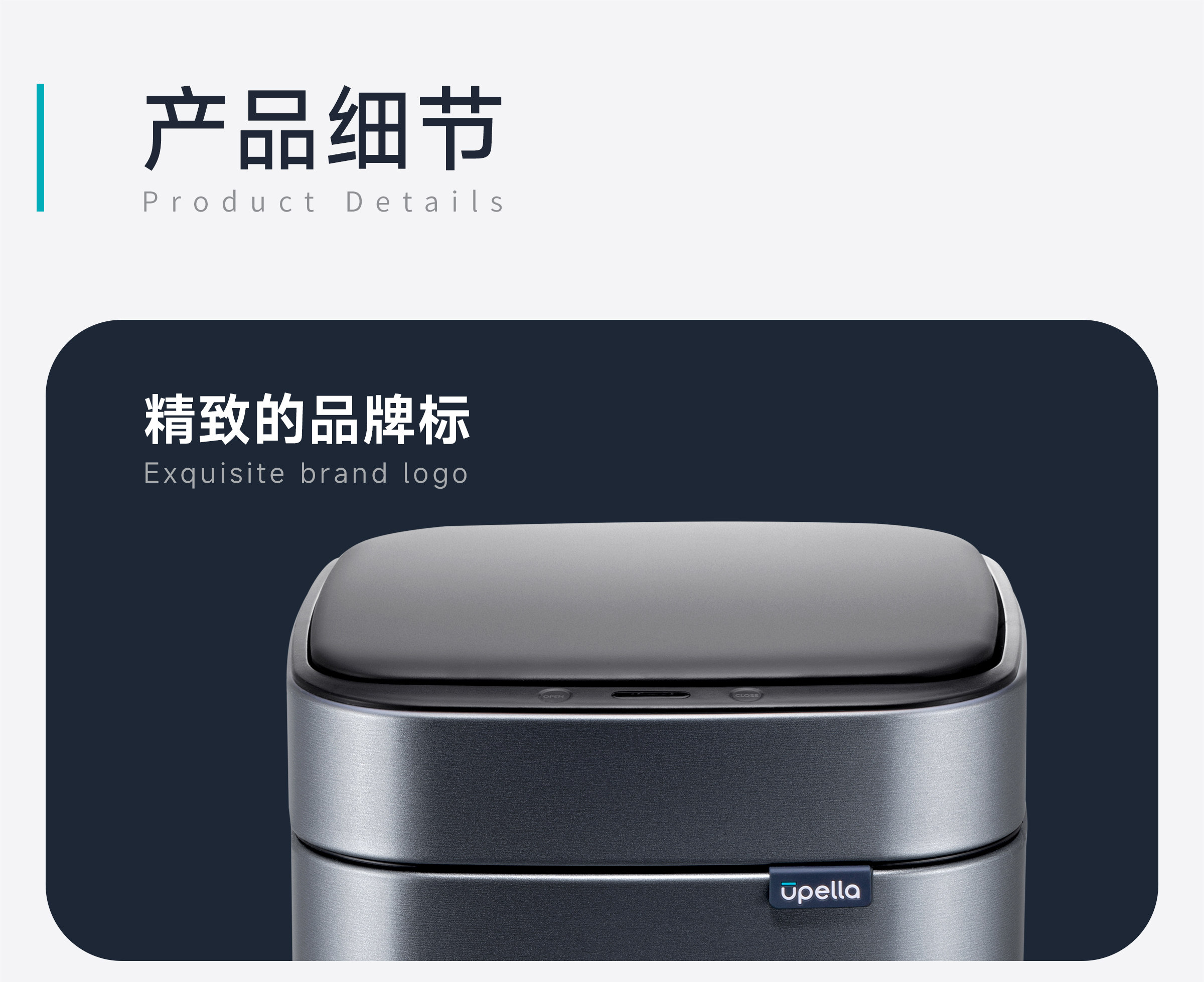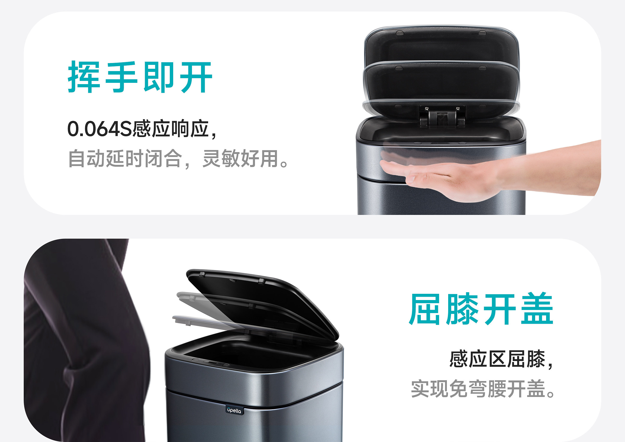 优百纳智能感应垃圾桶充电式不锈钢家用铂睿系列感应卫生桶-12L(锂电池)