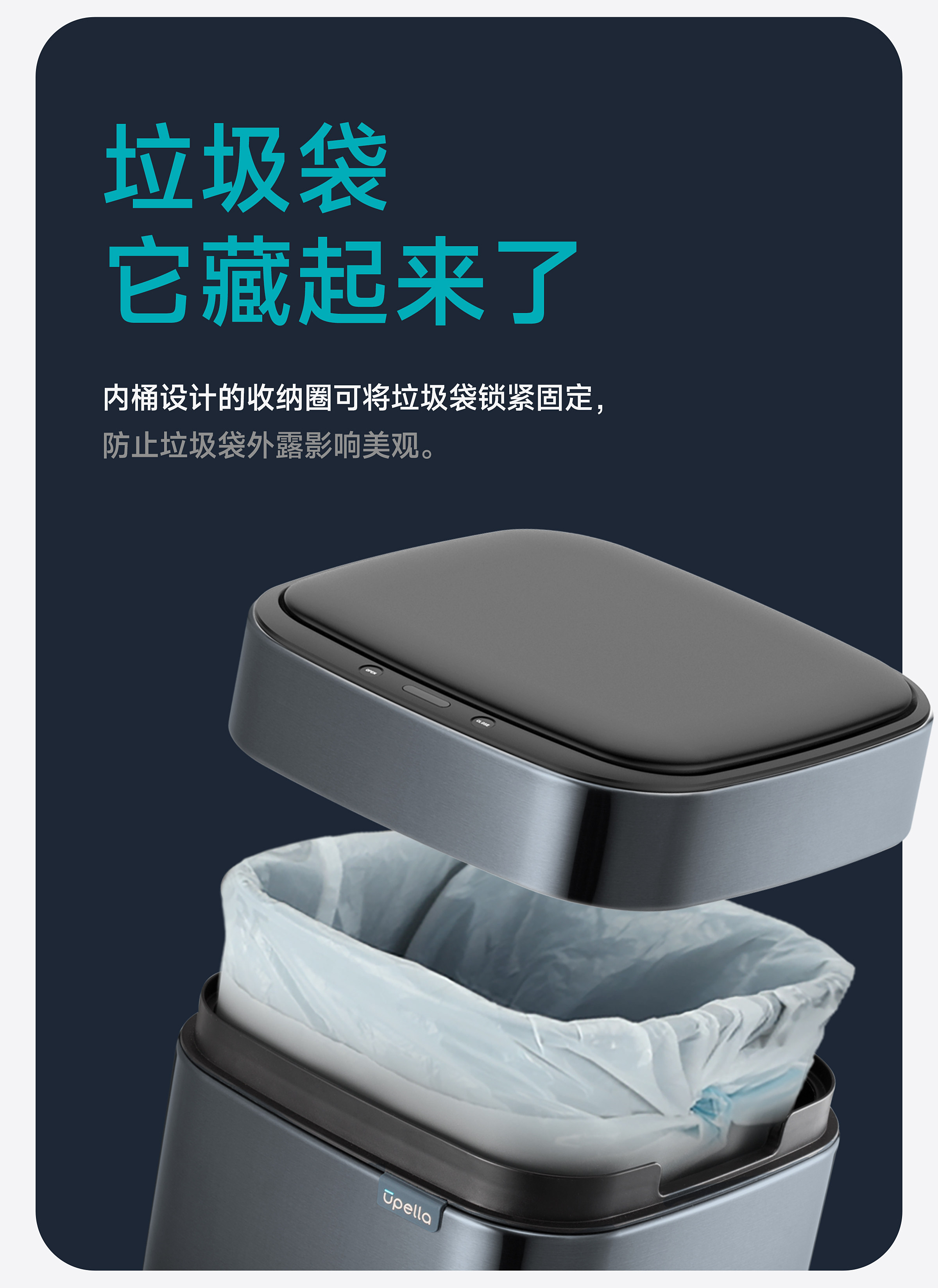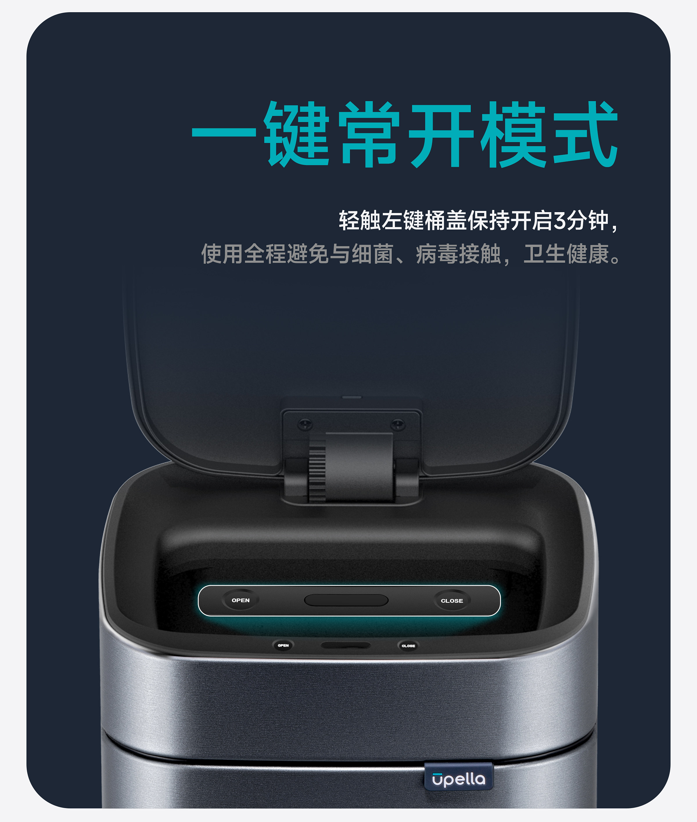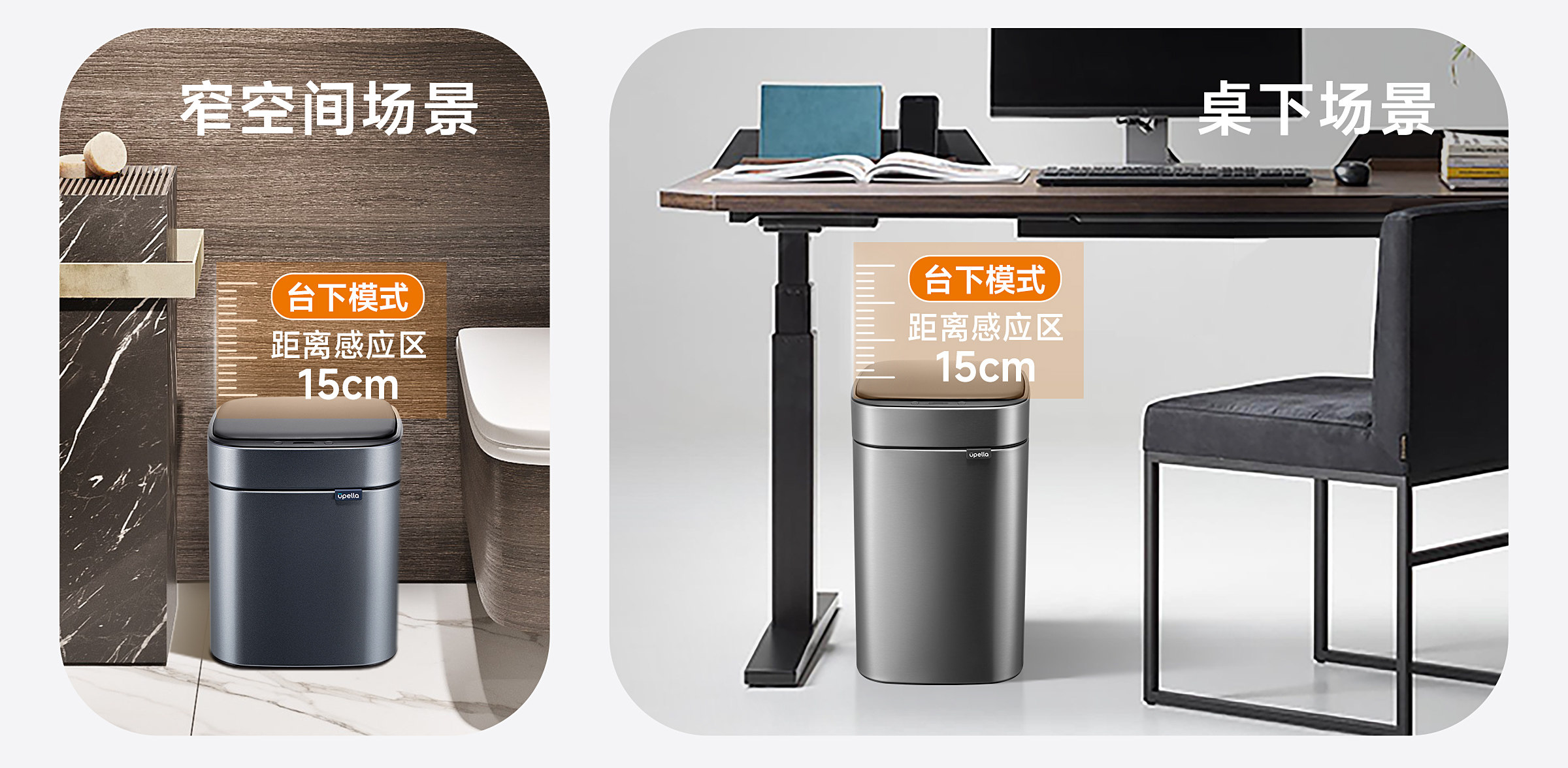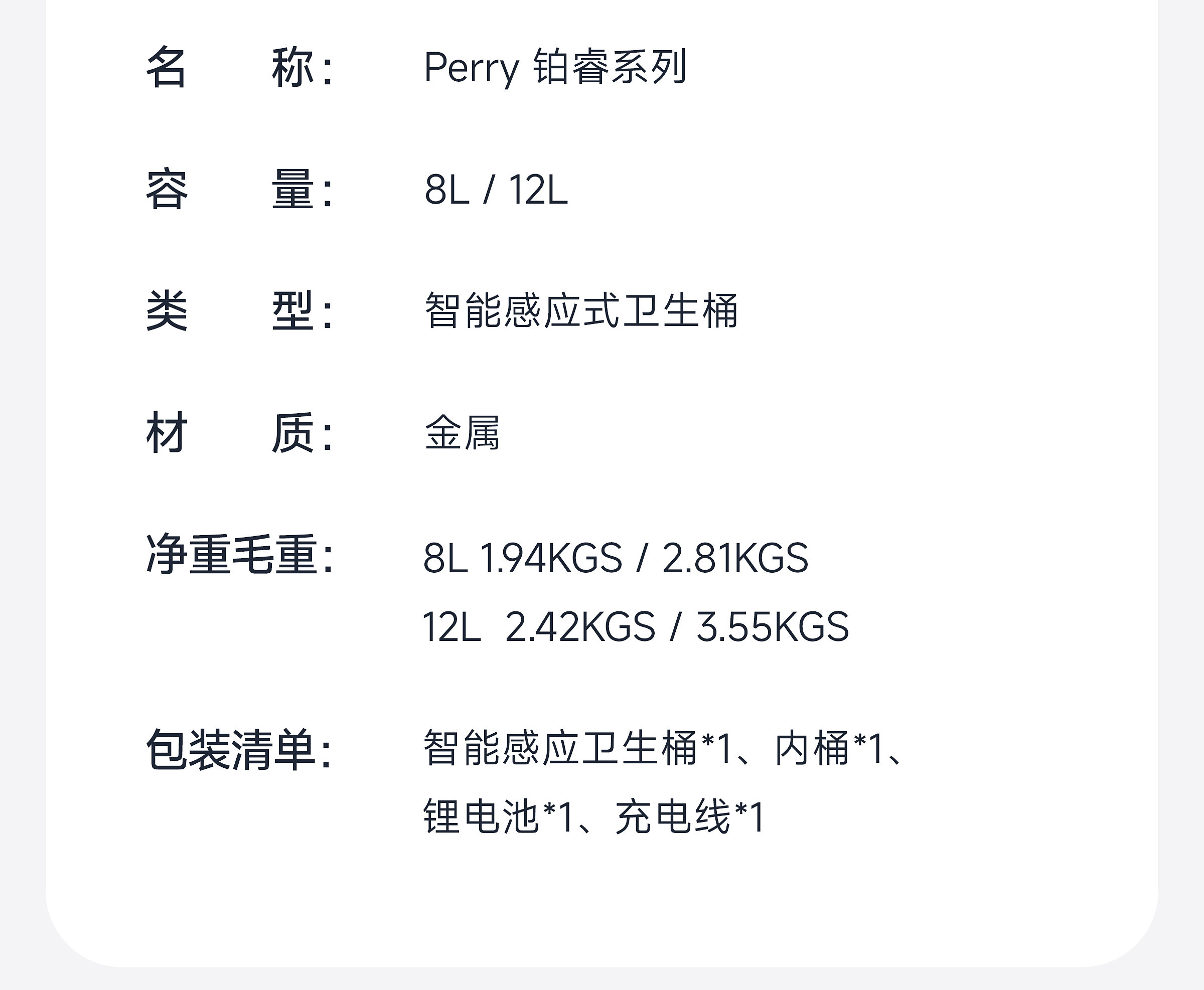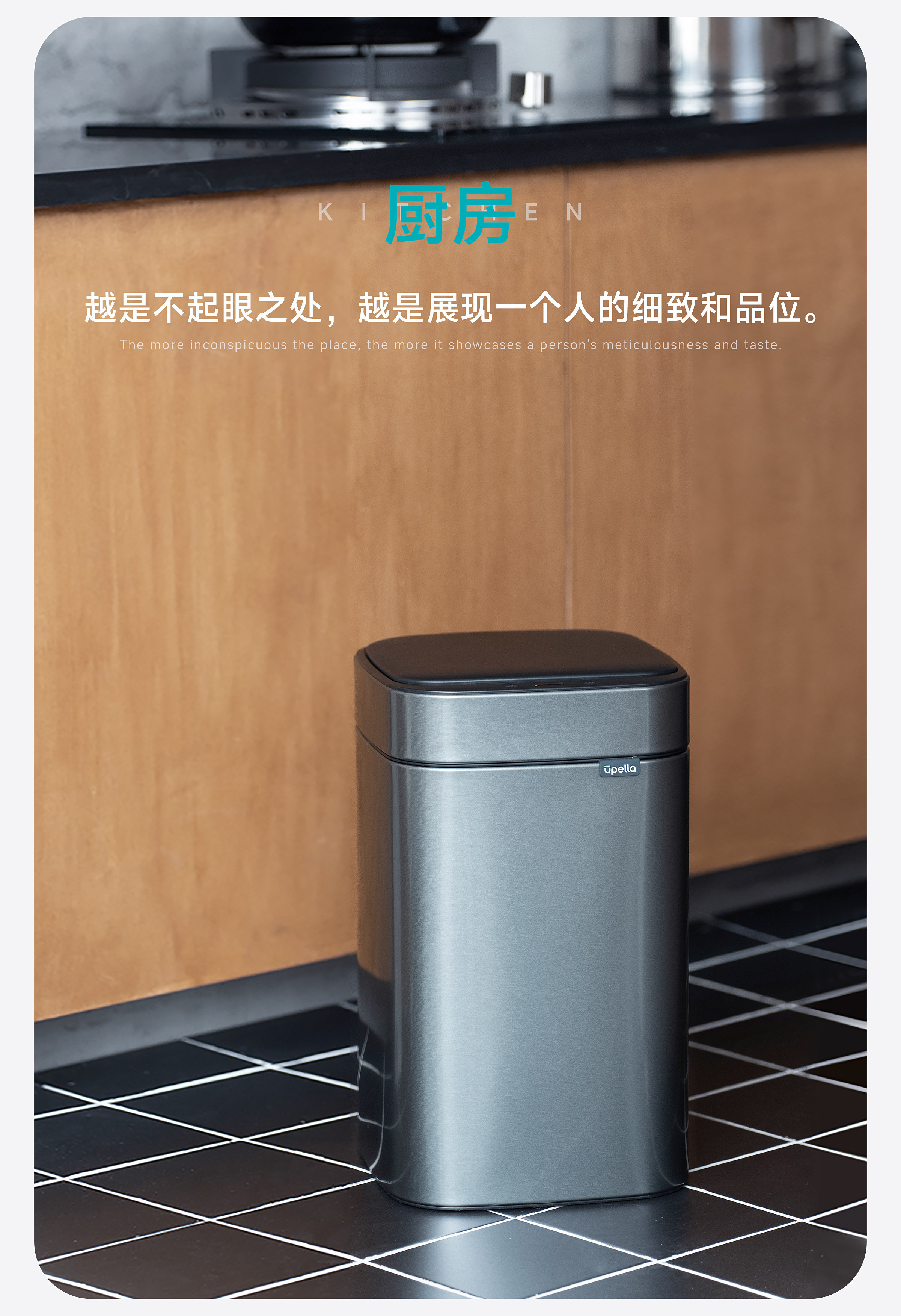 优百纳智能感应垃圾桶充电式不锈钢家用铂睿系列感应卫生桶-12L(锂电池)