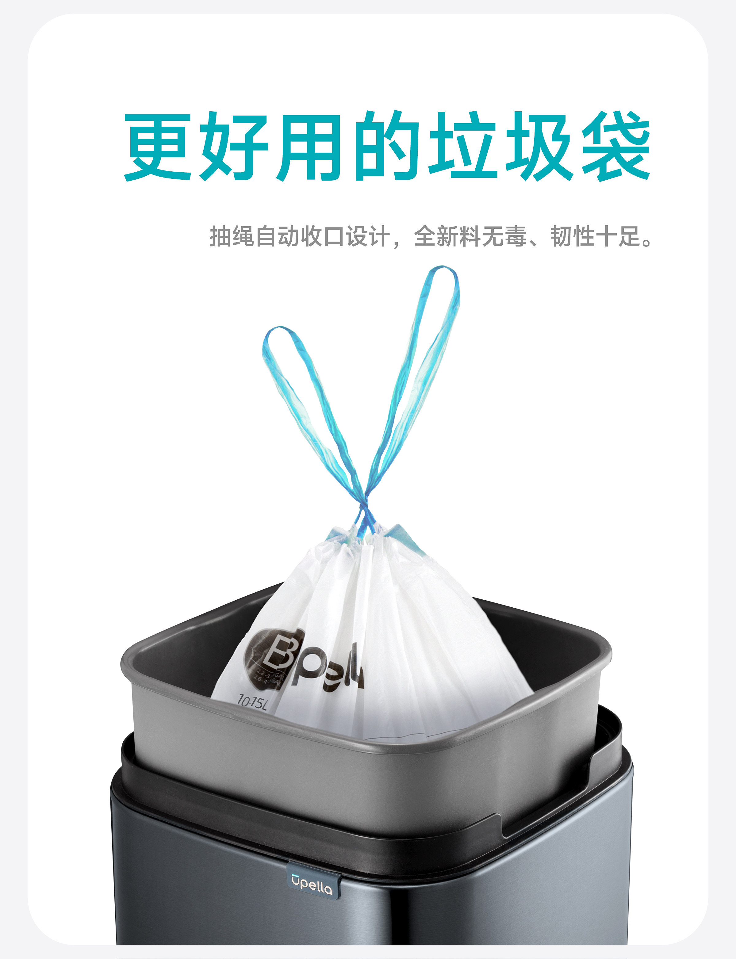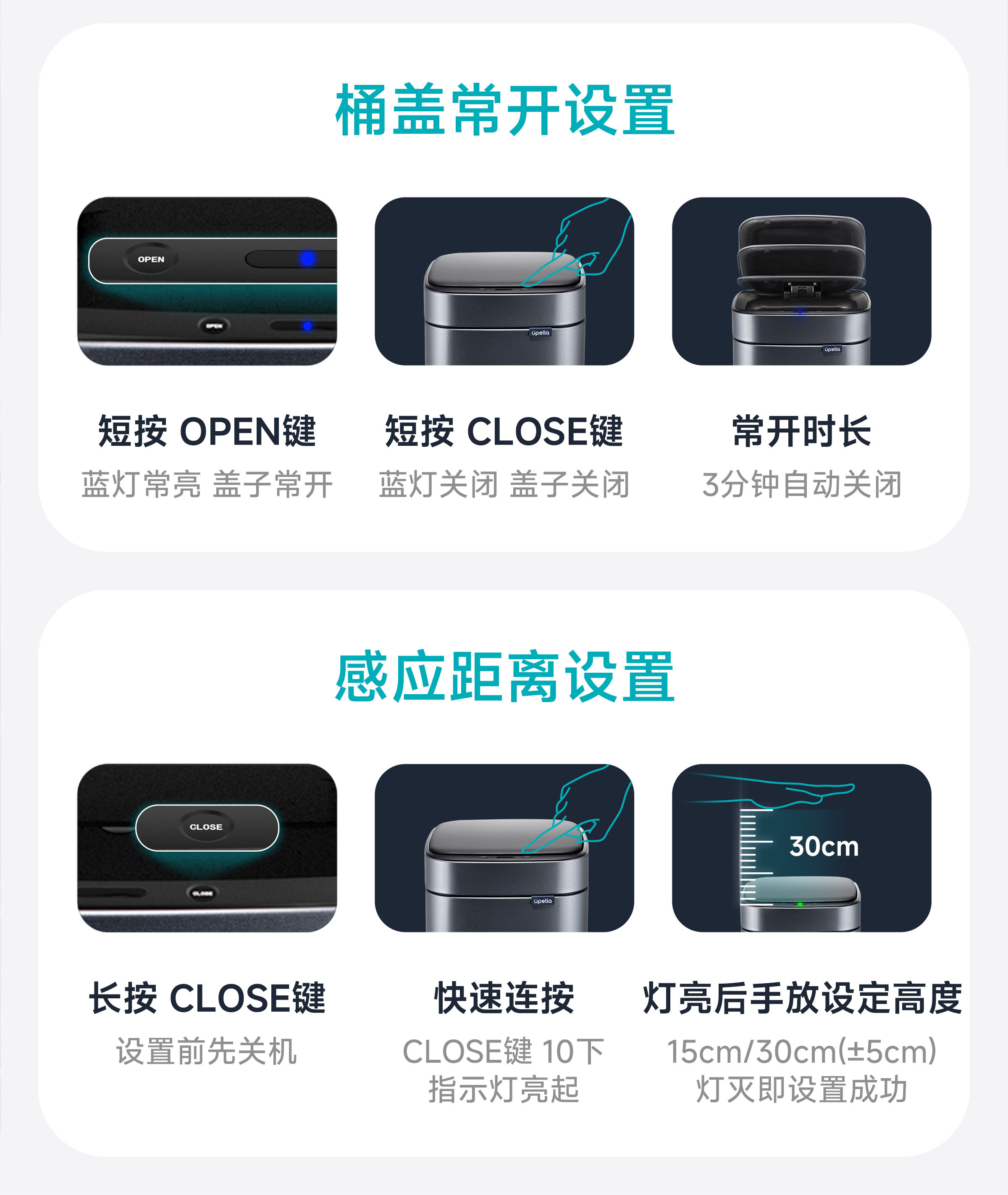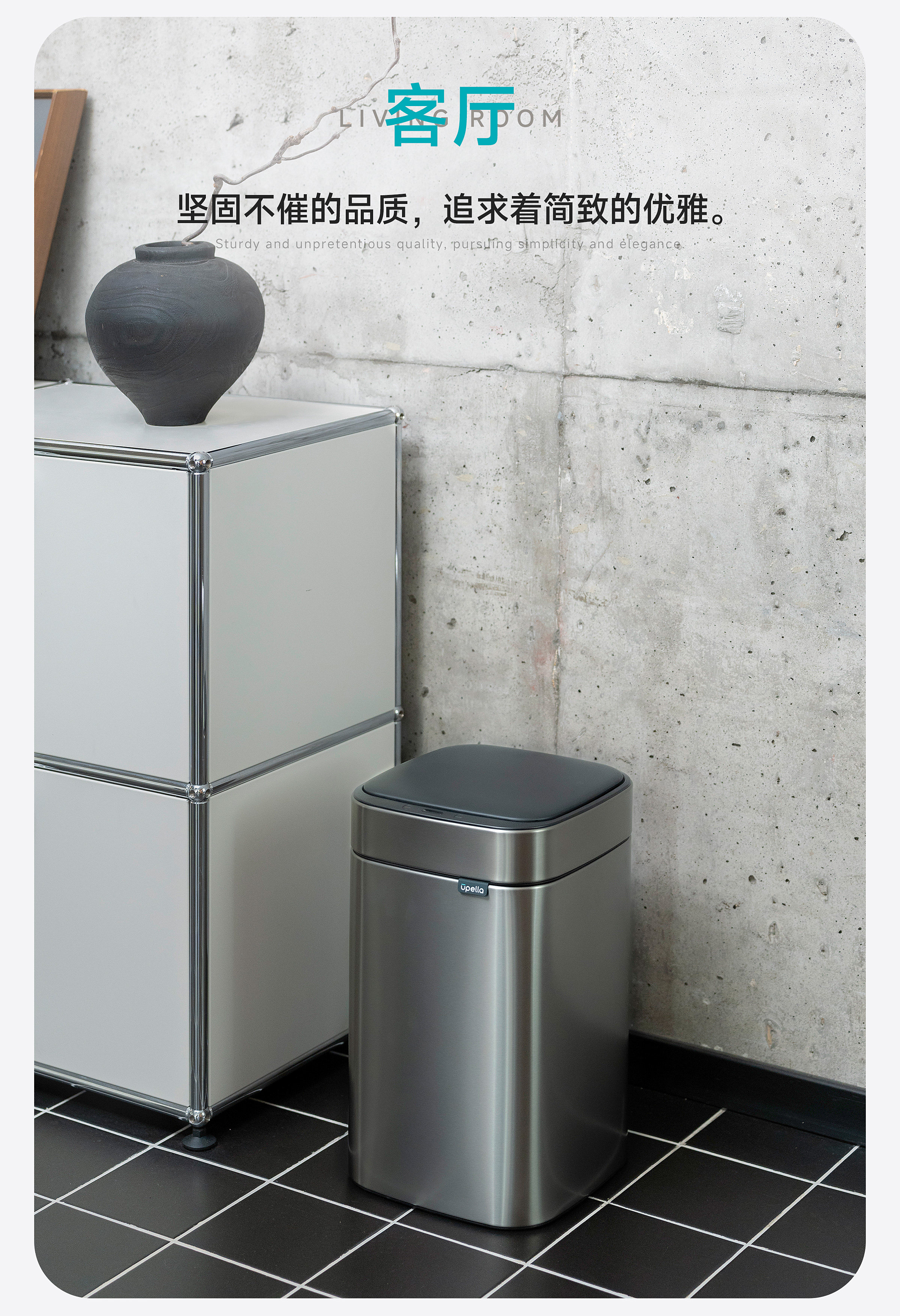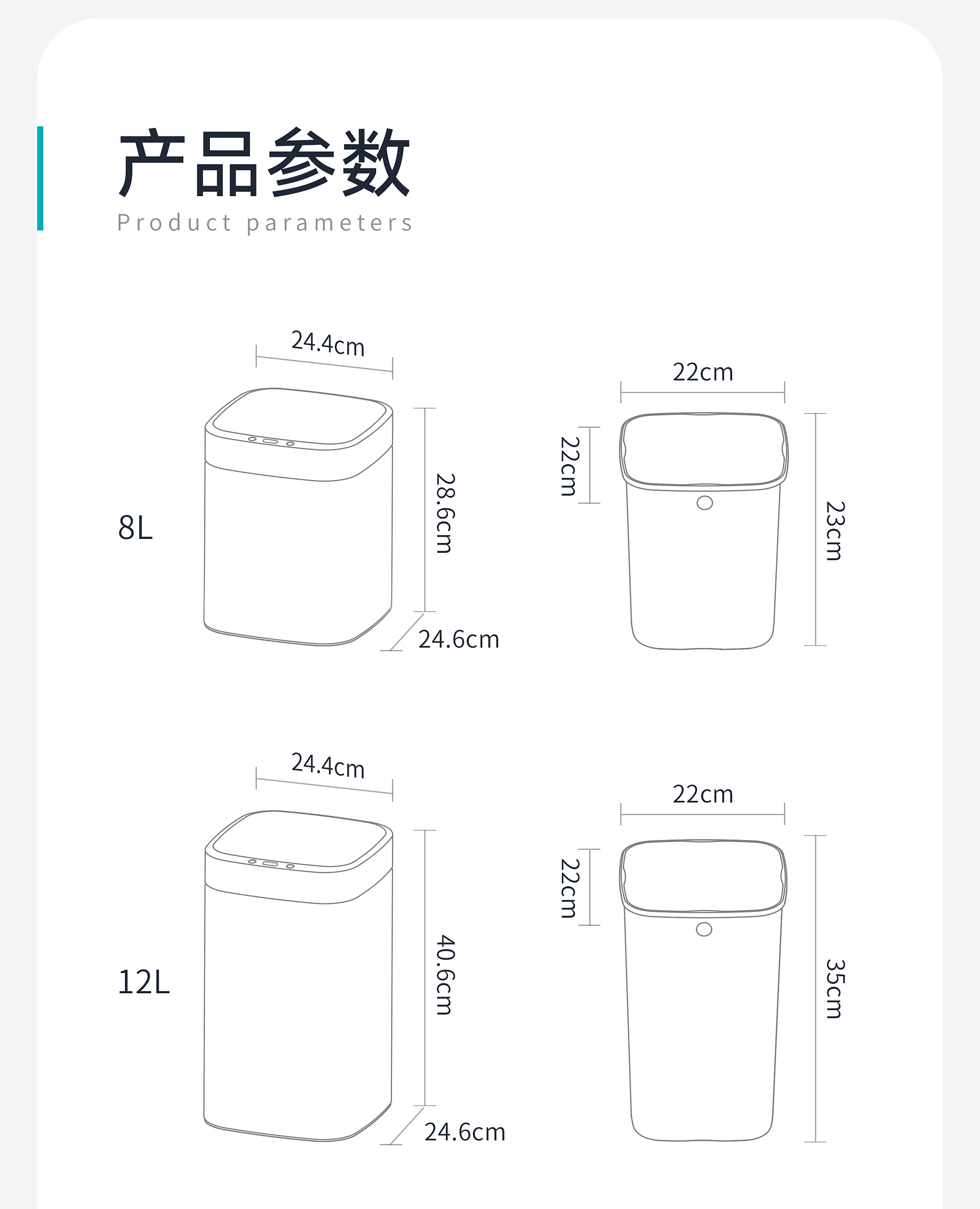 优百纳智能感应垃圾桶充电式不锈钢家用铂睿系列感应卫生桶-12L(锂电池)