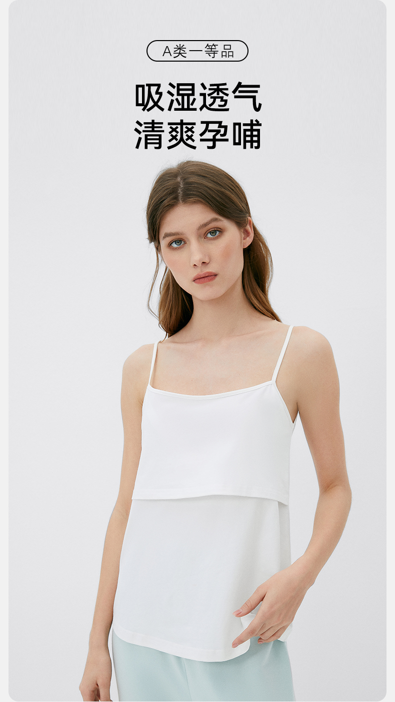 【哺乳吊带】嫚熙孕妇春秋内衣背心产妇喂奶防走光外出打底衣产后纯棉哺乳吊带