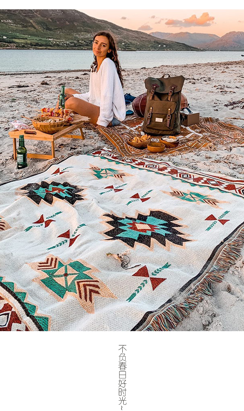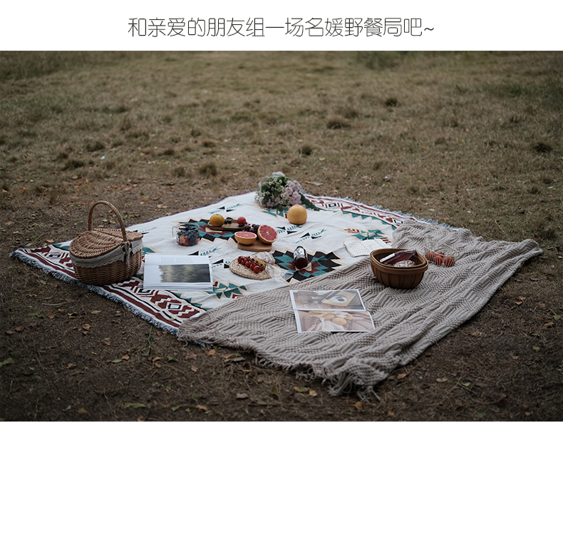 野餐垫防潮垫加厚ins风户外地垫露营野餐布波西米亚地毯blanket