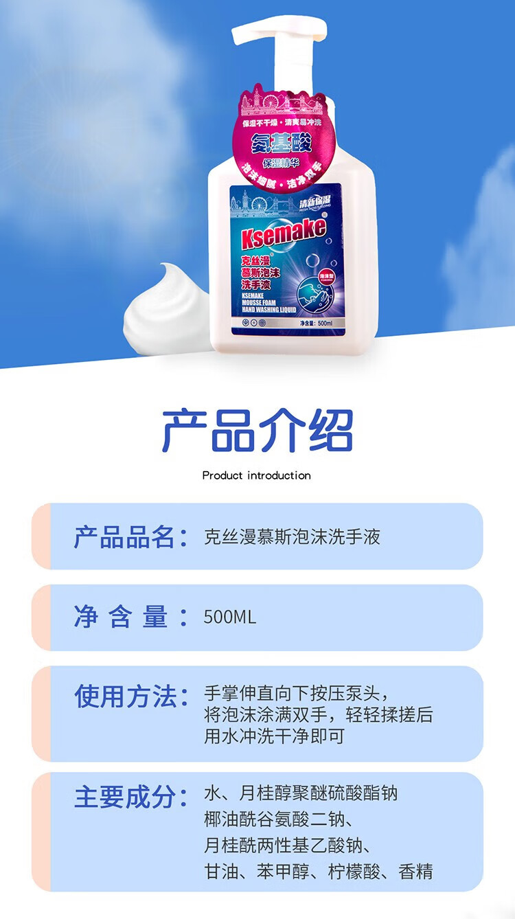 克丝漫 慕斯泡沫洗手液 500ml/瓶