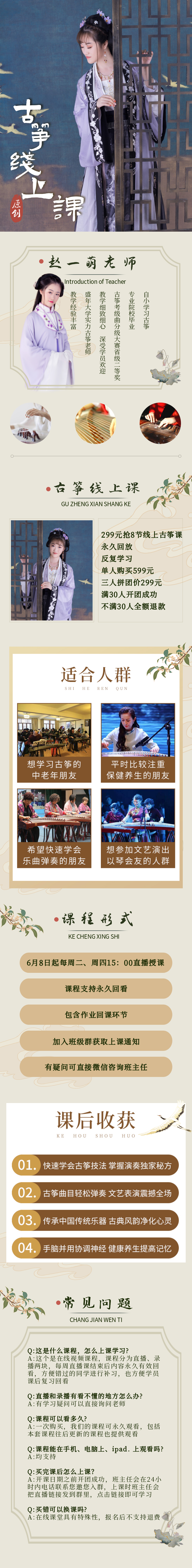 299元抢【赵一萌老师】8节线上古筝课
