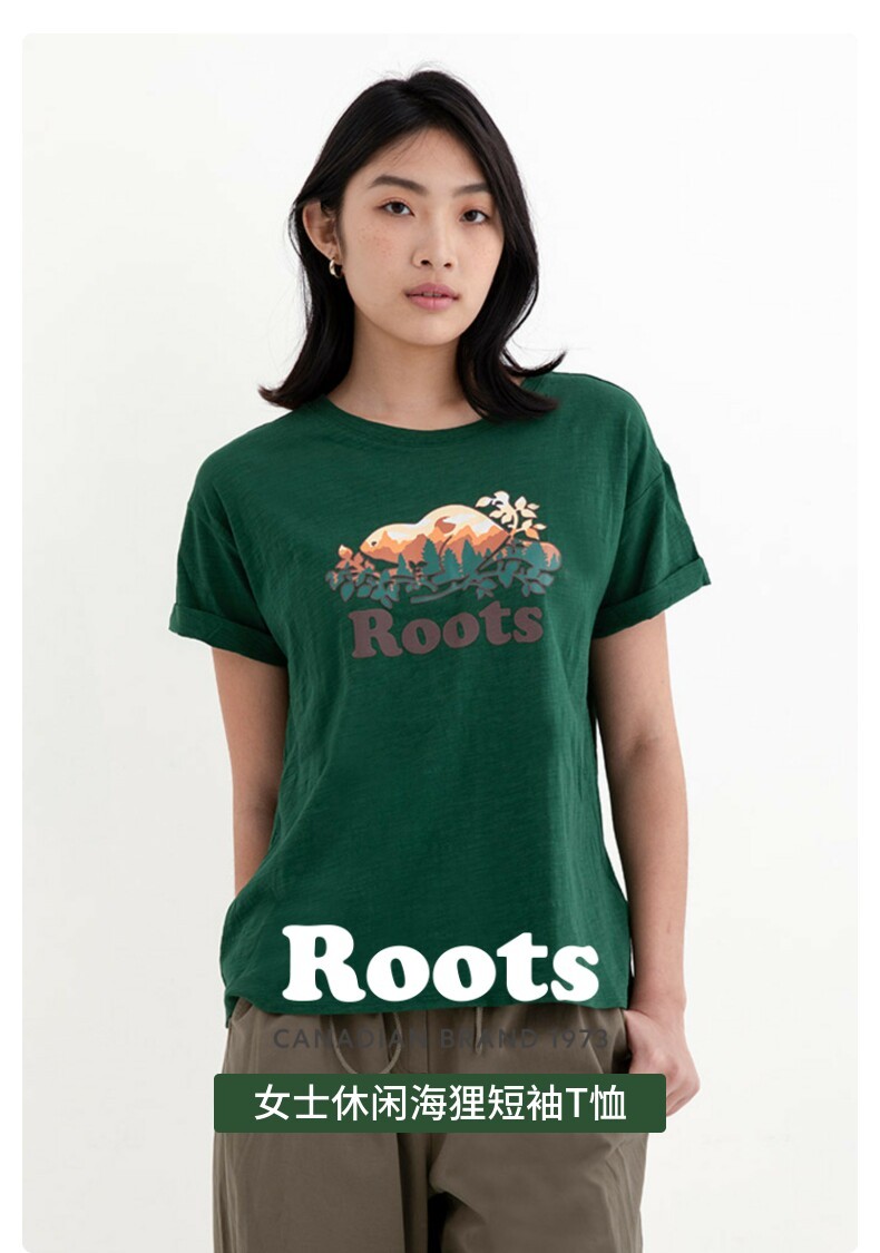 【2件9折】【ROOTS】女式休闲海狸短袖T恤