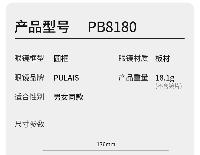 普莱斯光学镜框PB8180 气质素颜时尚有质感 品质板材高颜值配色 男女同款四色可选