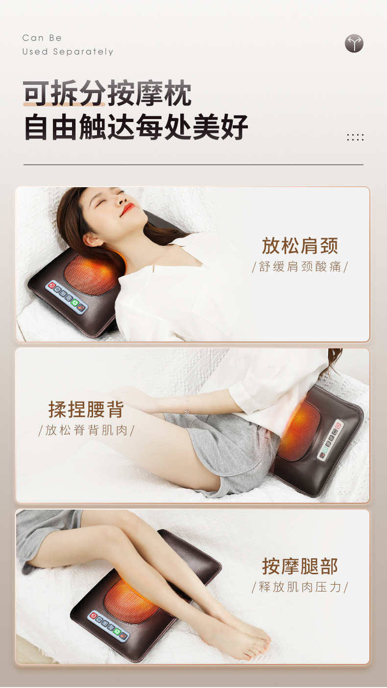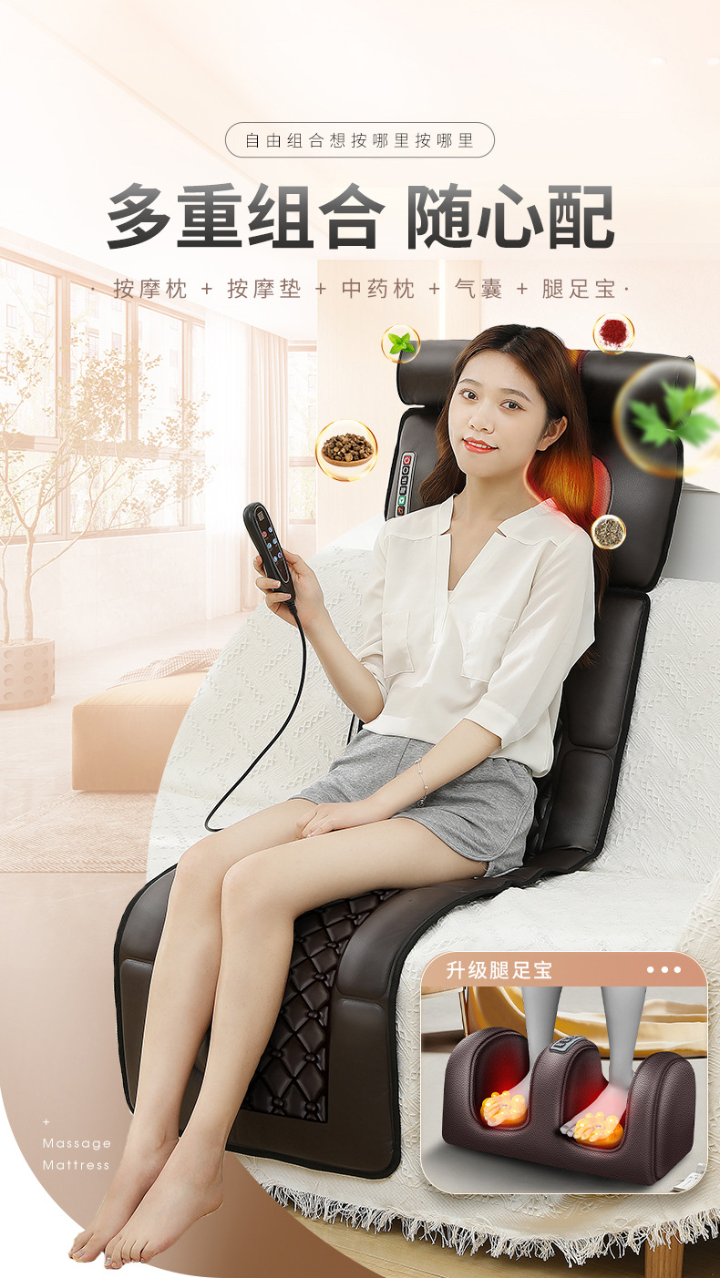【母亲节送妈妈实用礼物】颈椎腰部智能坐垫靠垫按摩床垫,电动家用多功能按摩器按摩垫,多重组合随心配-lm!-ry