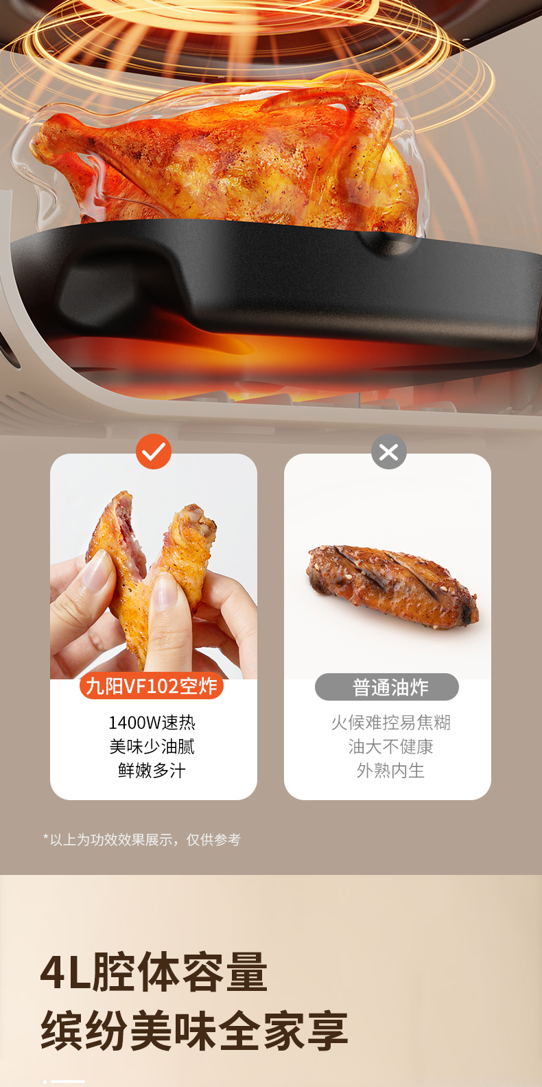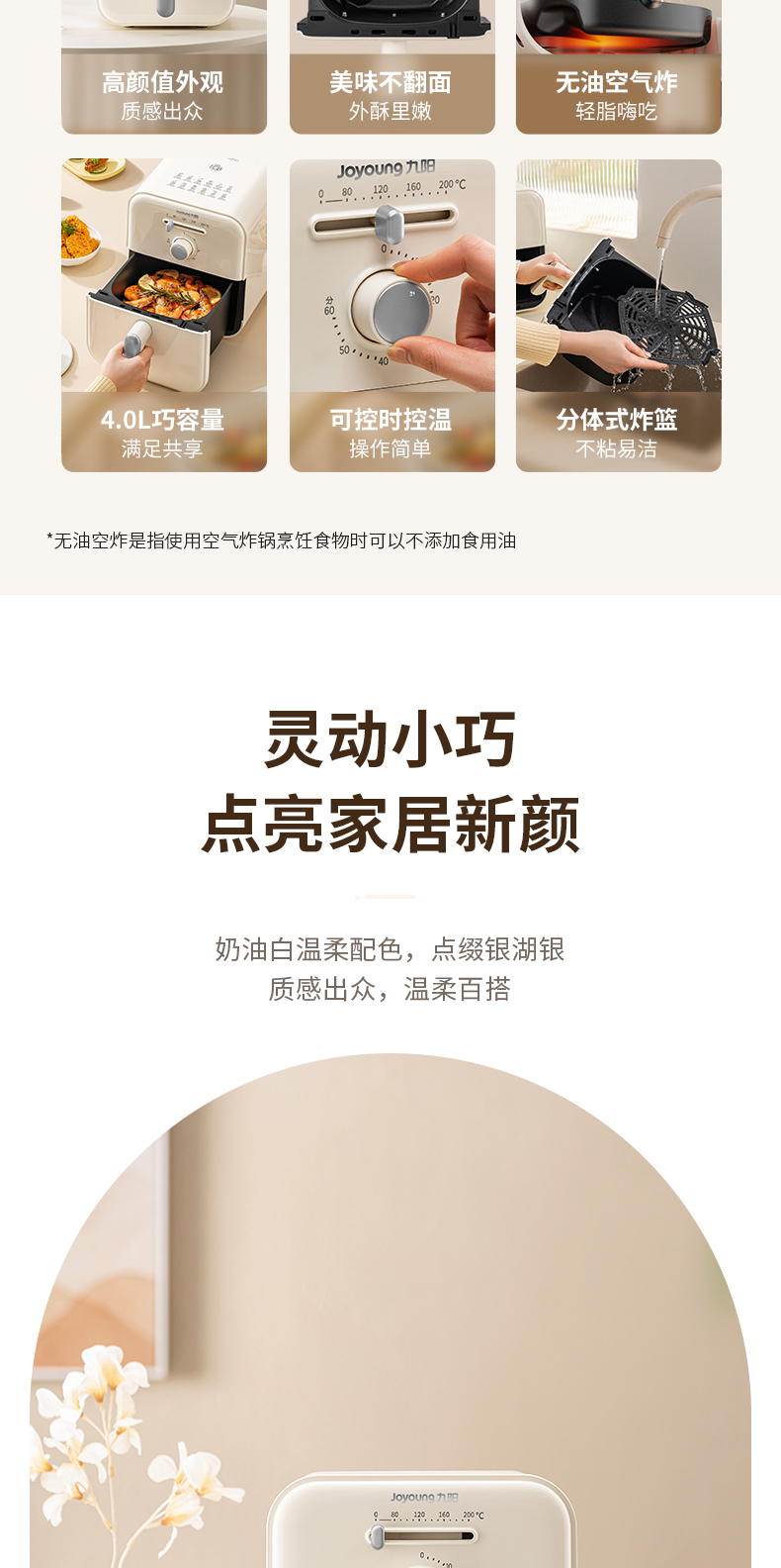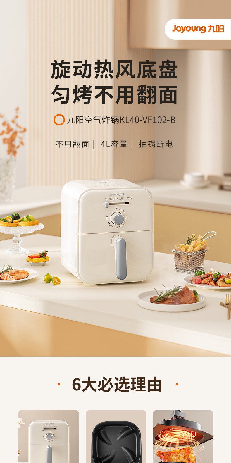 【自营】 九阳 空气炸锅 自由控温 自由定时 4L