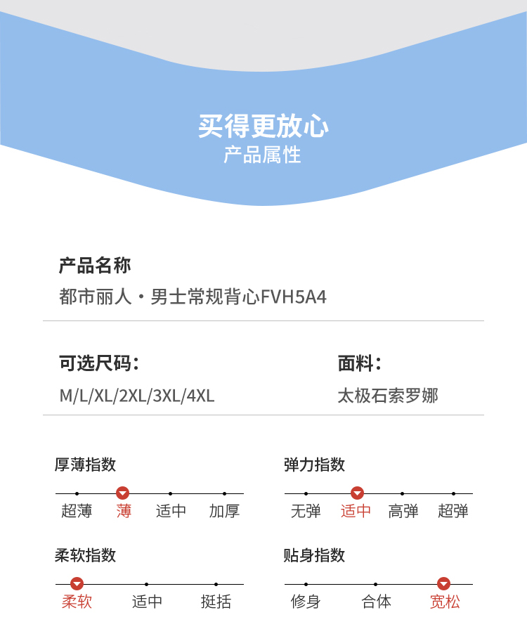 都市丽人男士常规背心太极石索罗娜基础简约窄肩背心FVH5A4