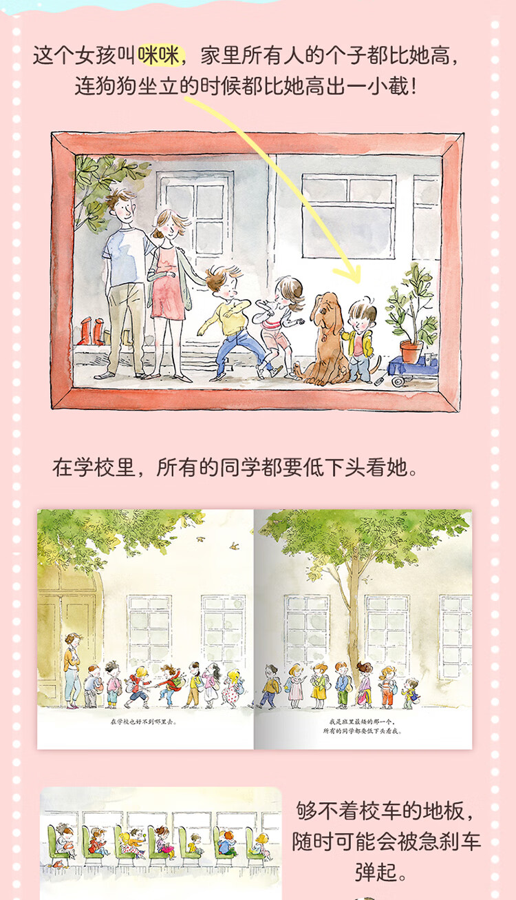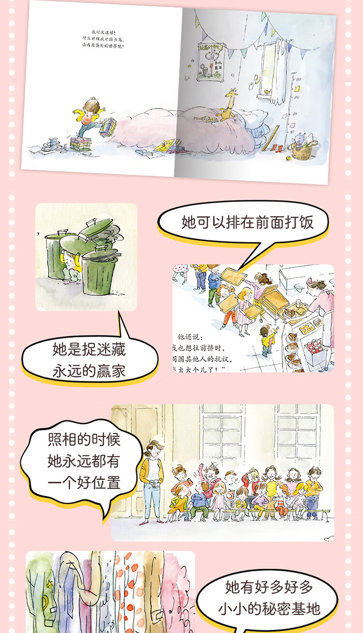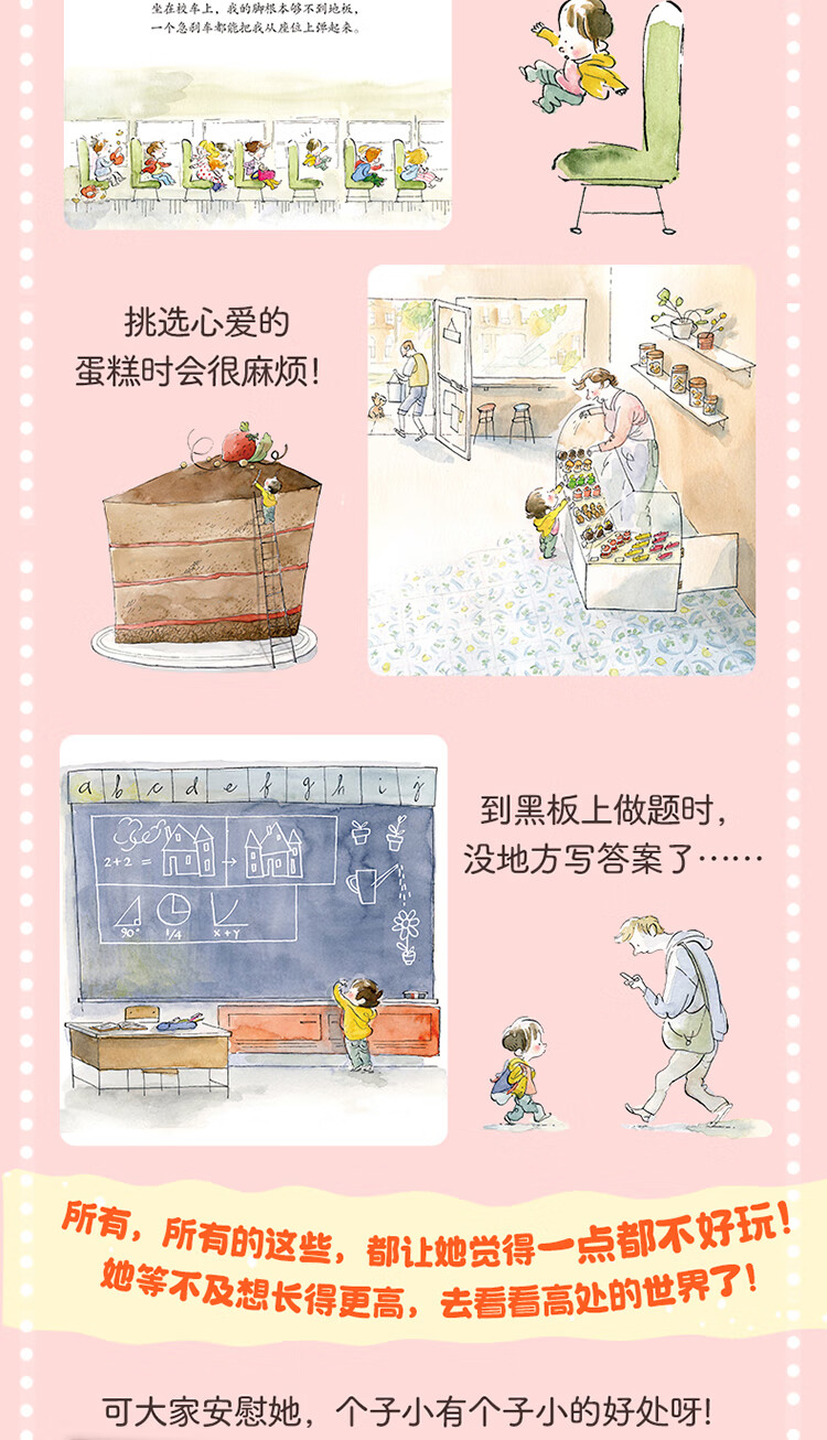 咪咪的个子很小,她觉得这一点也不好玩。在家里,在街区,在学校,她的小个子总是给她带来麻烦。大家安慰她,个子小有个子小的好处呀!没有一个人真正理解她…….一件意想不到的事让咪咪一下“长大”了!动人的水彩画描绘出了一个被自己的身高困扰的小姑娘的内心世界,温柔地叙述了“小个子”的烦恼和自卑情绪,然而从另一个角度看,“小个子”还有不少好处和优势。故事的*好让每个人都看到小小的“我”如何克服困难,渐渐长大。一个关于成长的简单而精彩的故事。本书是一本温情的儿童绘本。图书以外公的*一视角叙述,讲述与外孙女生活中的点滴。随着小女孩逐渐长大,外公渐渐衰老,记忆模糊、褪色,但是那些美好幸福的时光则会永远镌刻在生命中,爱会一代一代传承下去。浓浓的祖孙情,饱满真挚,温暖心灵。爱流淌在日常的点滴中,弥漫在日复一日的陪伴里,为孩子的童年铺上温暖的底色。画面细腻、柔和、明亮、生动,充满艺术魅力,带给人们希冀,即使记忆褪色,这些画面中的爱,是永远不会褪色的。