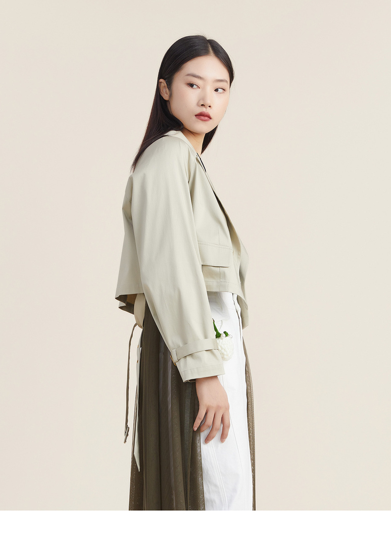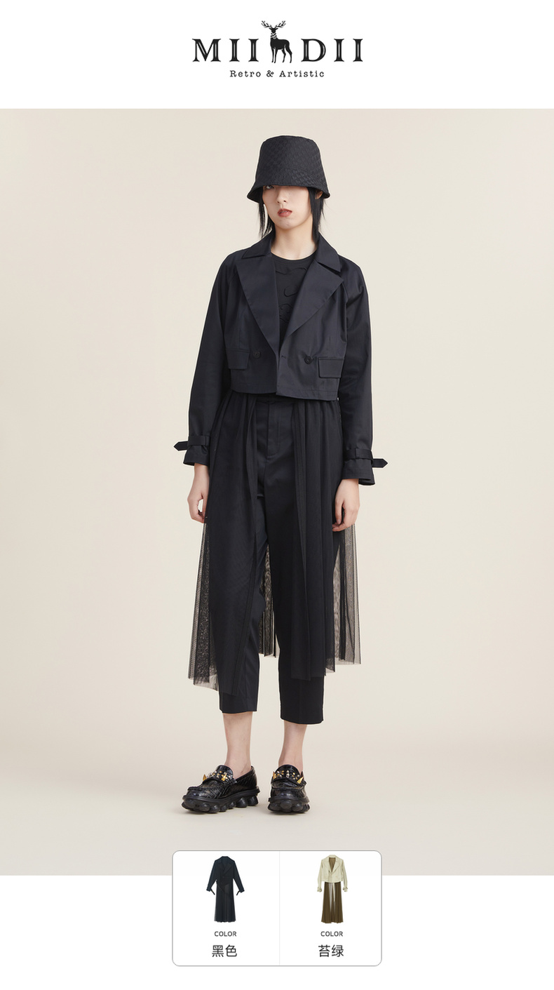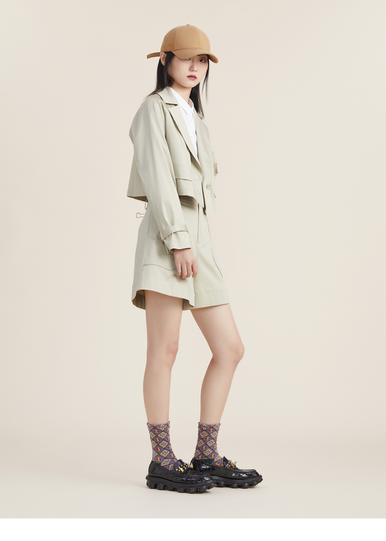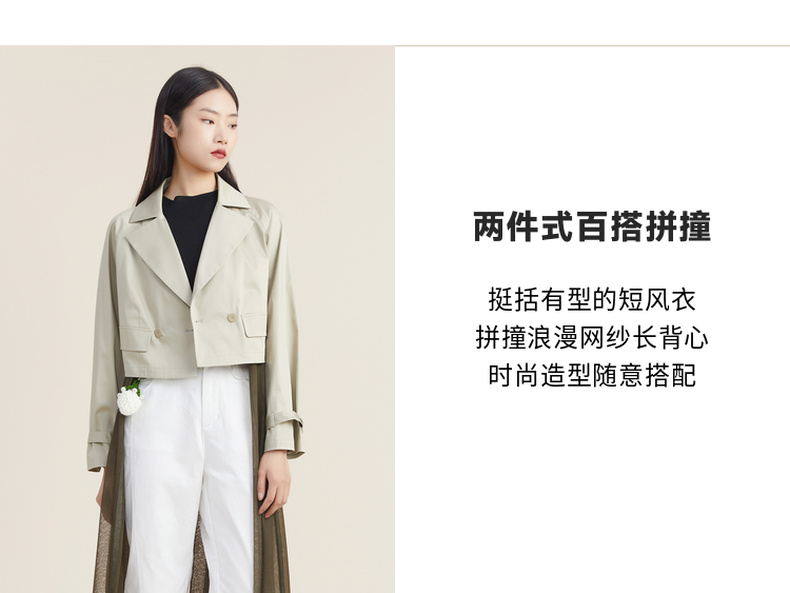 谜底2022秋新品两件时尚套装风衣女配内搭马甲短款外套223ME1081