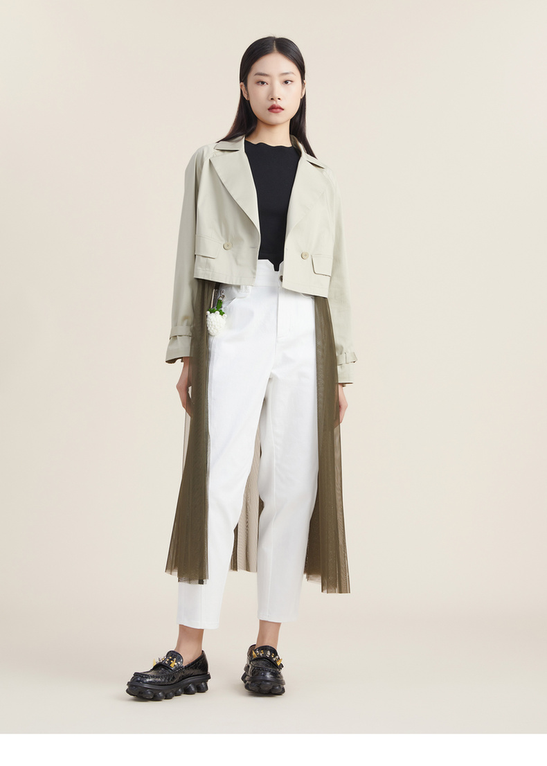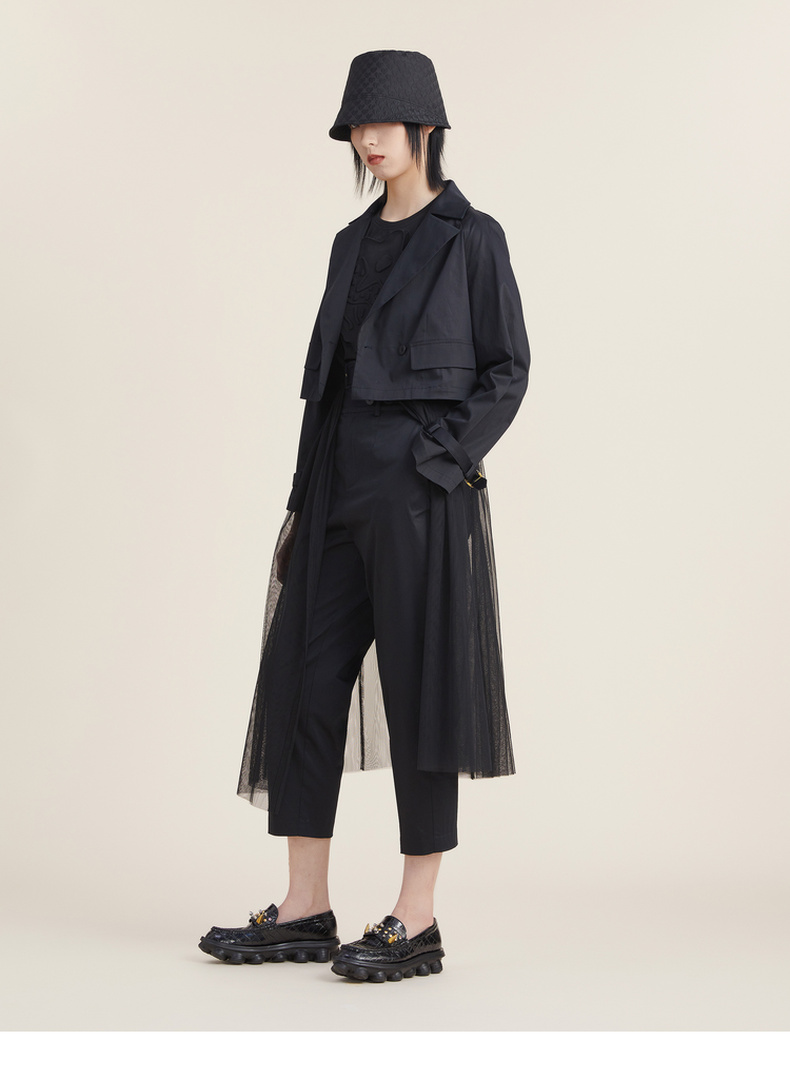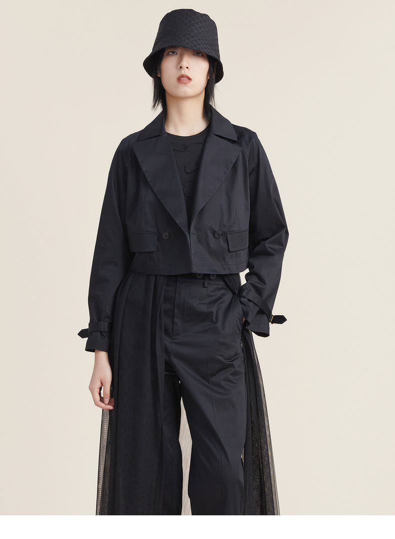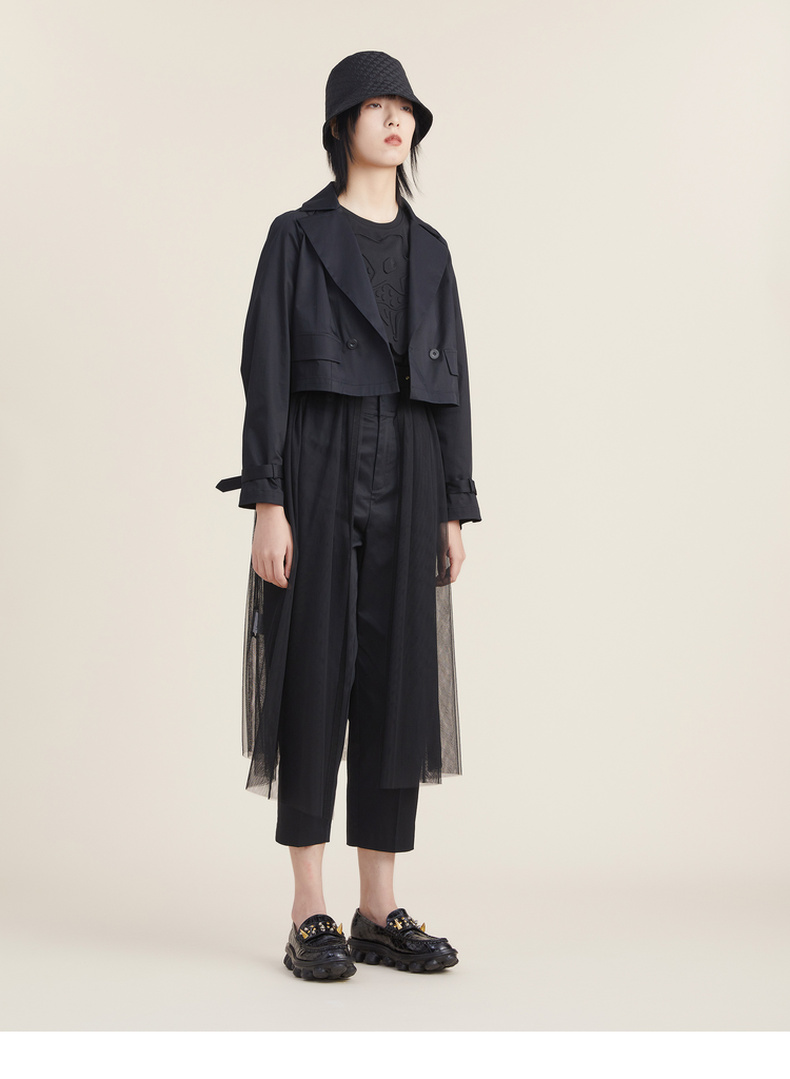 谜底2022秋新品两件时尚套装风衣女配内搭马甲短款外套223ME1081