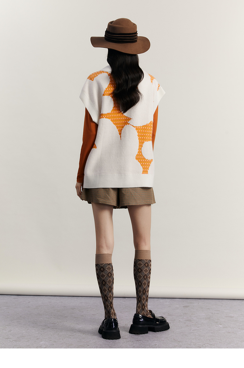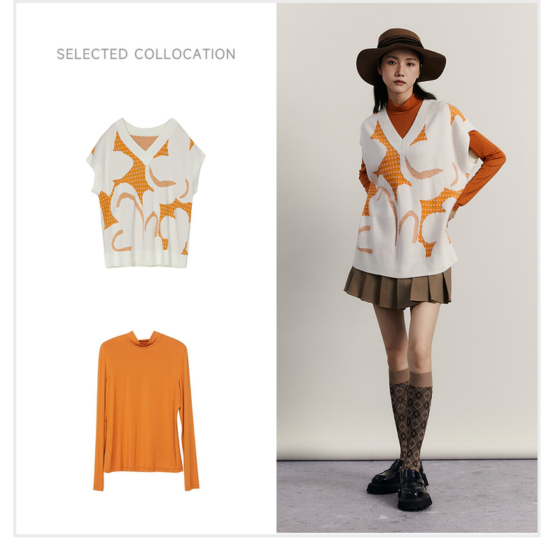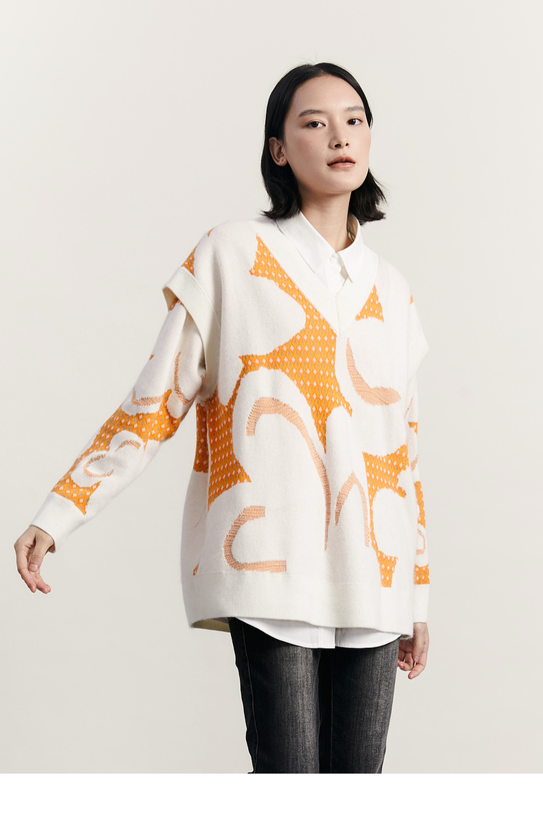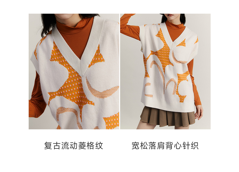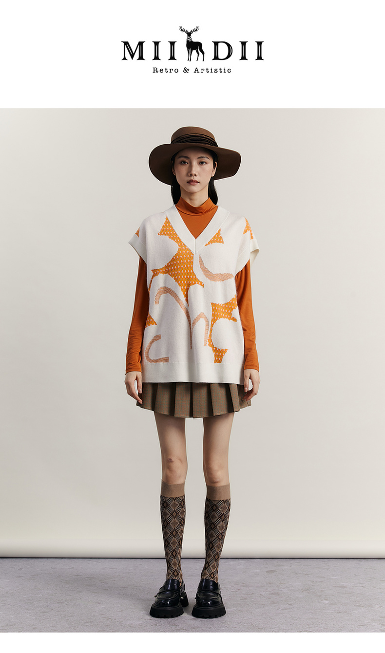 谜底V领针织衫马甲女2023冬新品复古文艺套头中长款毛衣234MZ1866