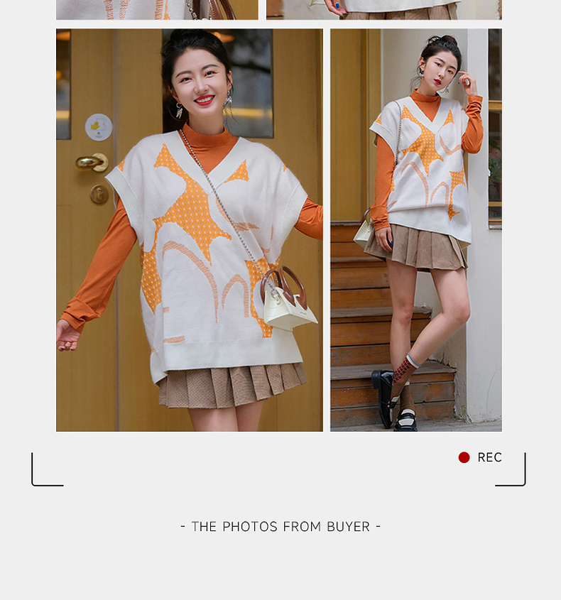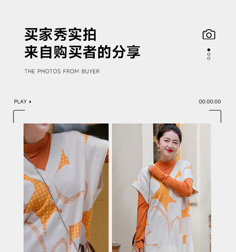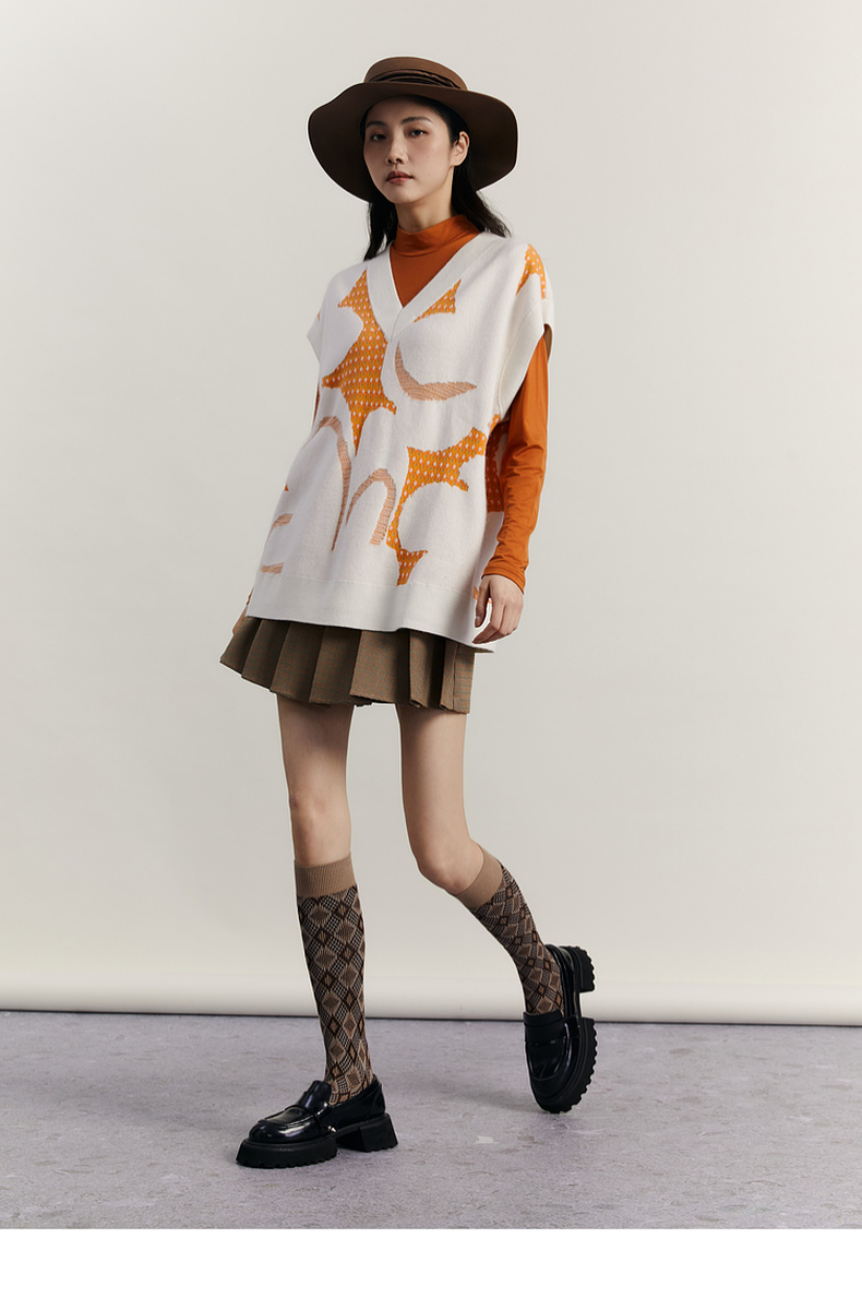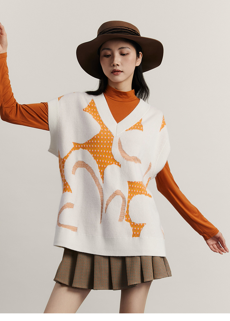 谜底V领针织衫马甲女2023冬新品复古文艺套头中长款毛衣234MZ1866