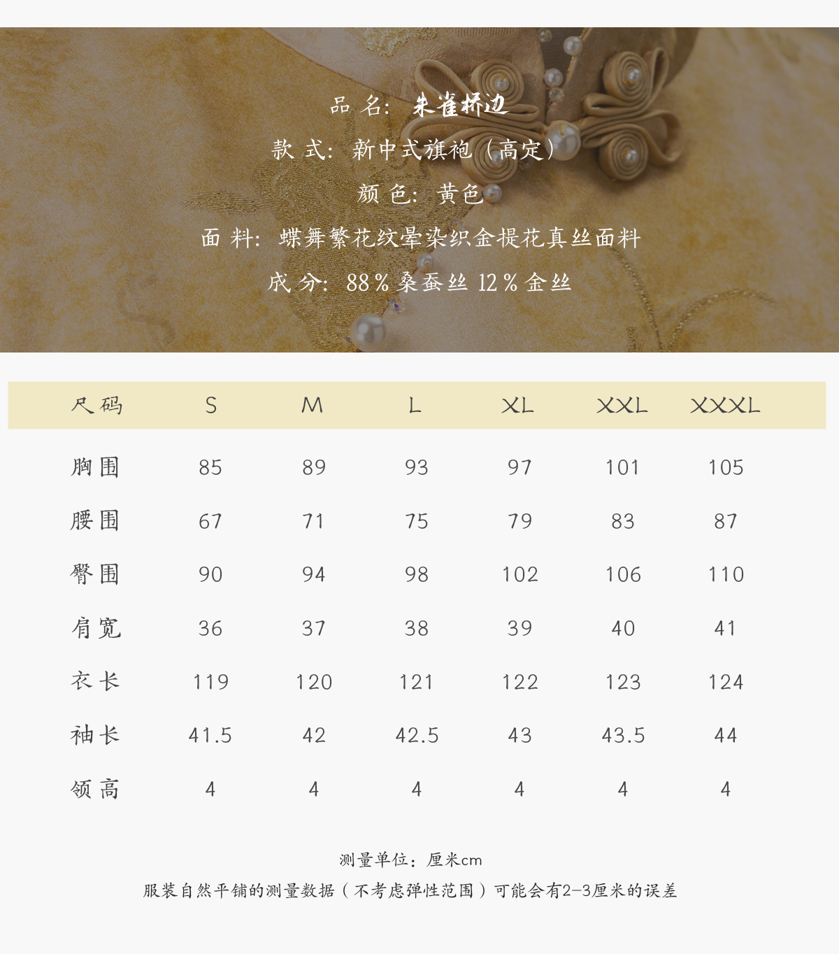 荷言HEYEN 朱雀桥边 真丝晕染织金提花立领七分袖手工旗袍高级定制