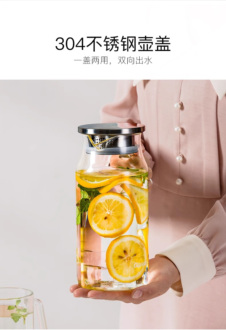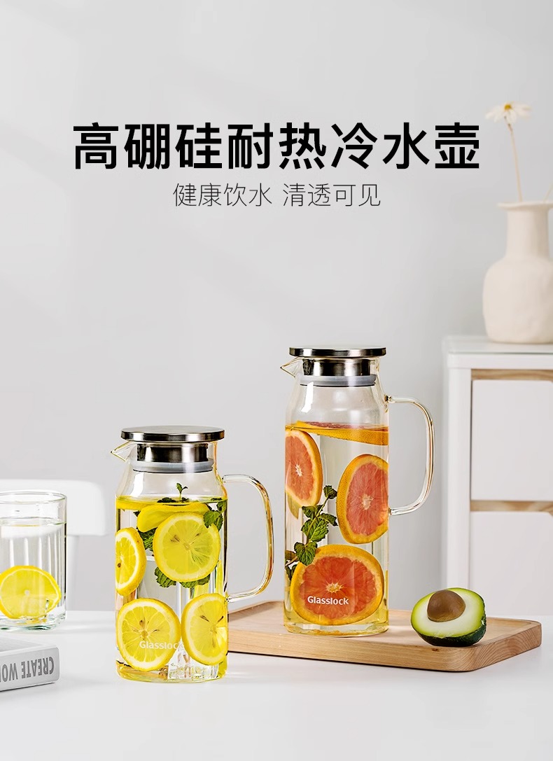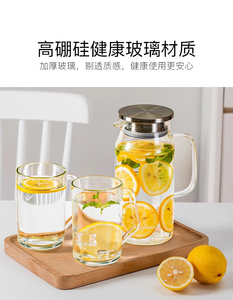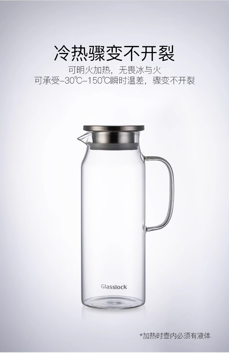 Glasslock耐高温通透玻璃冷水壶家用大容量凉白开水壶果汁壶泡茶1.6L/1.8L