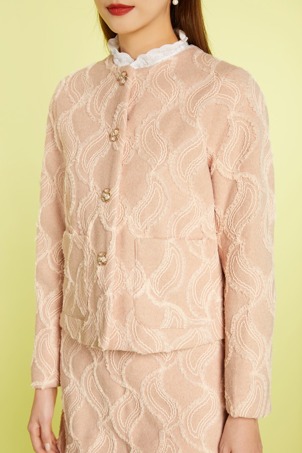 OCTAVIA 条纹饰粉色毛衣开衫 5626