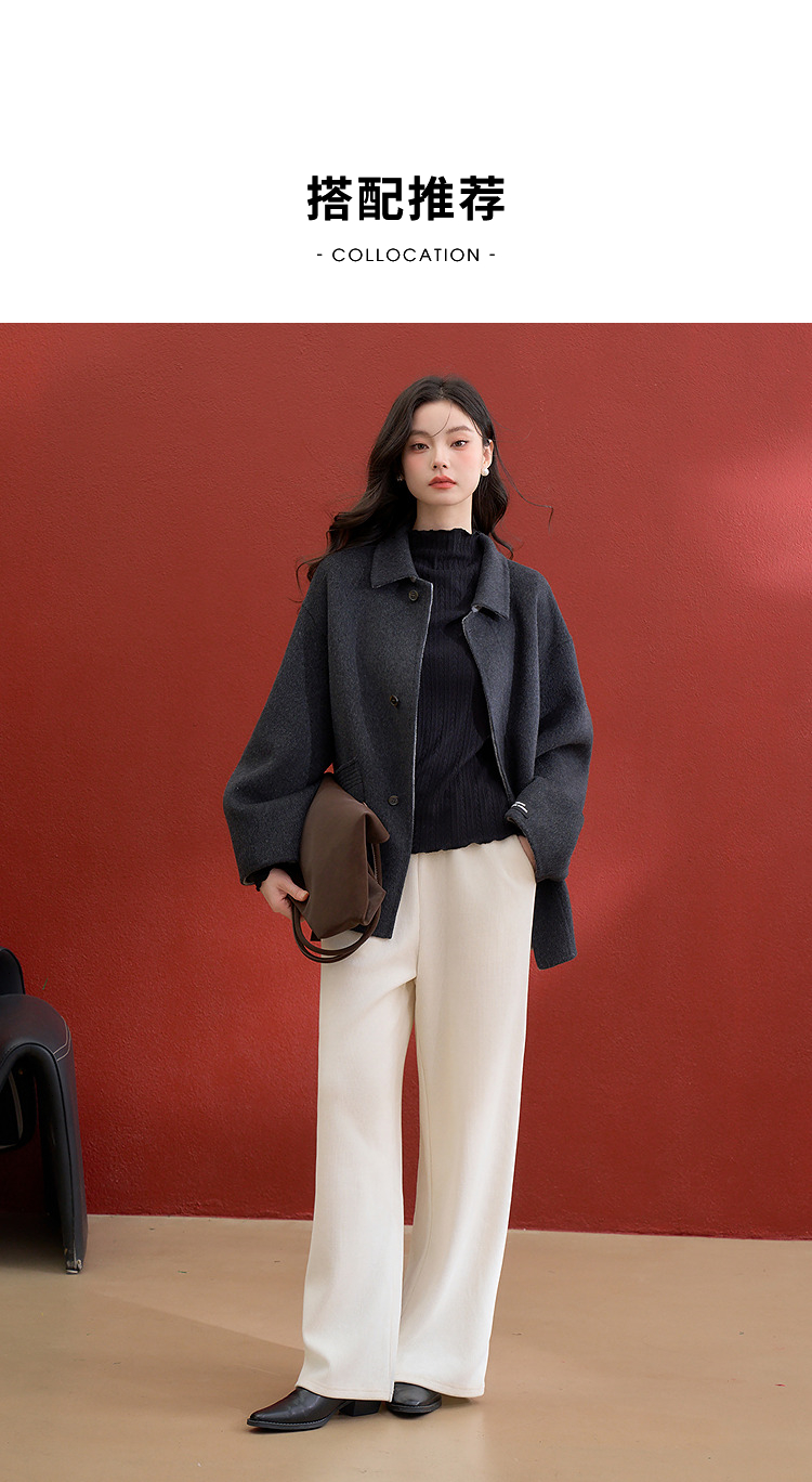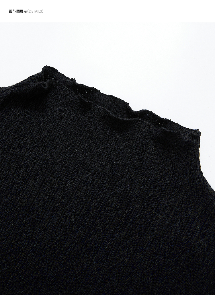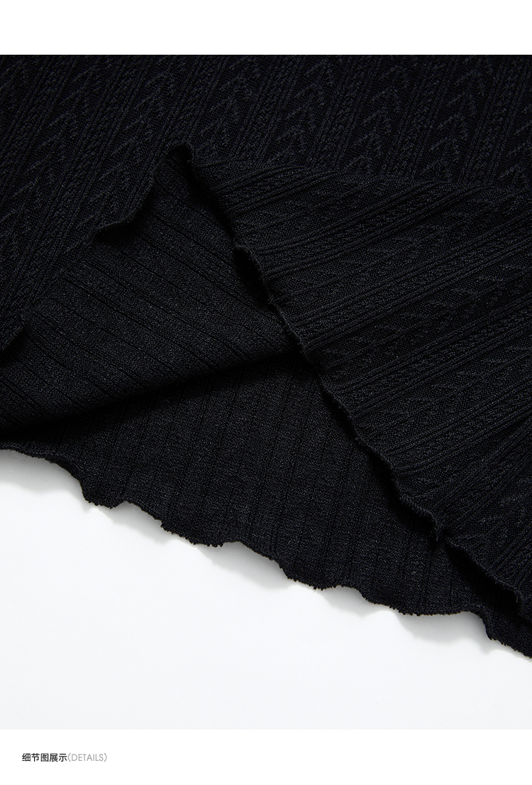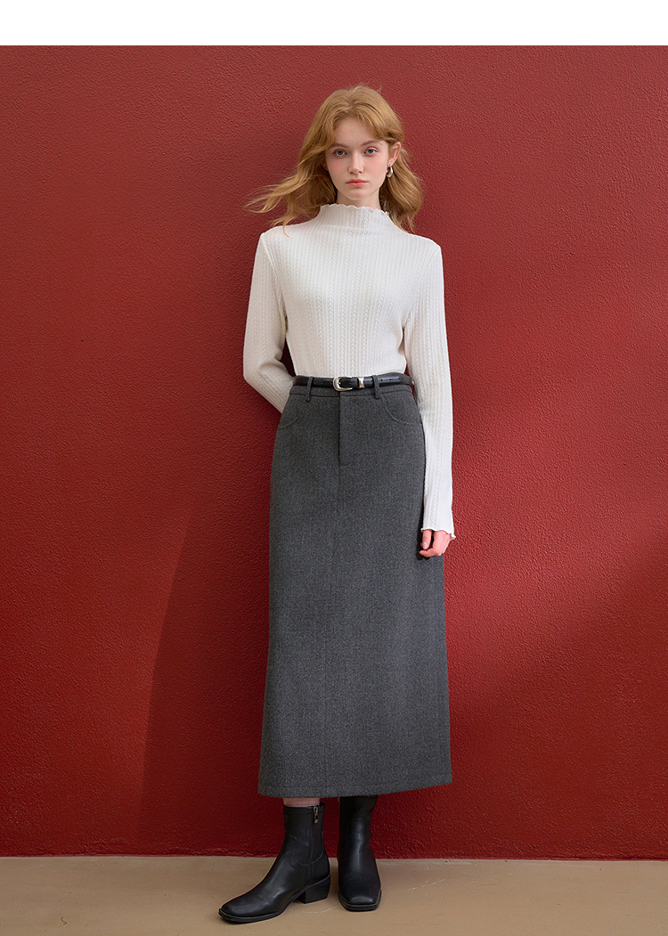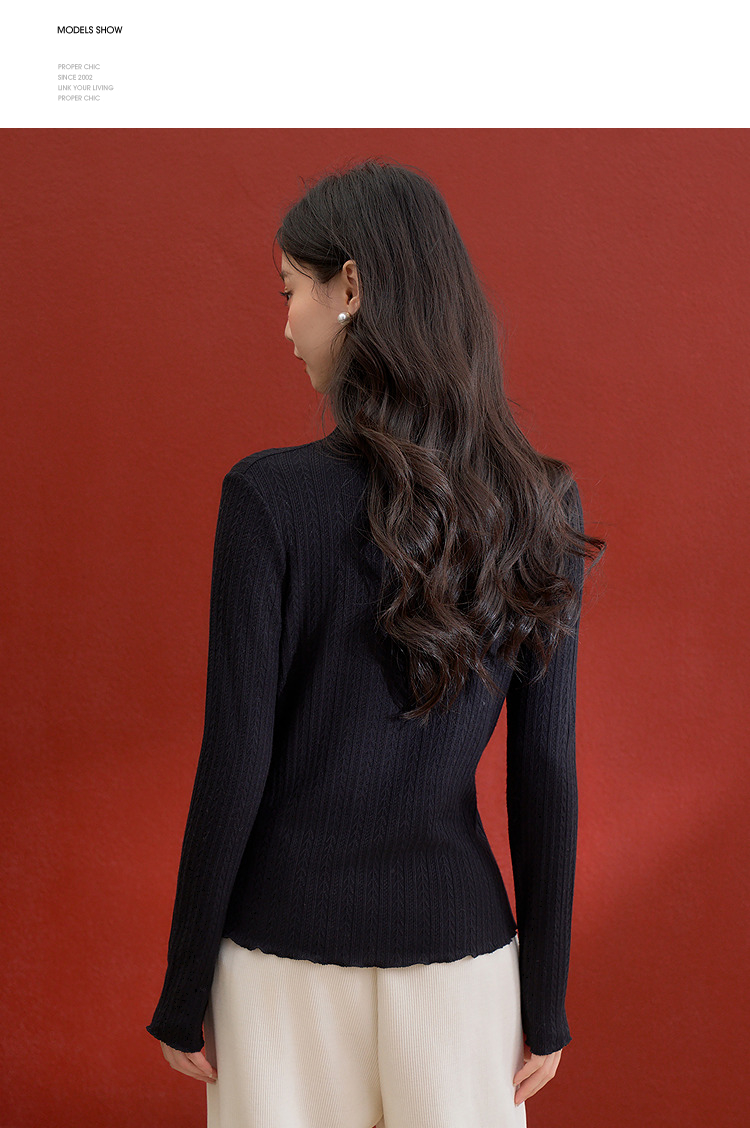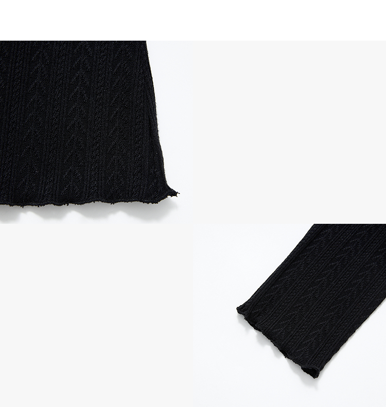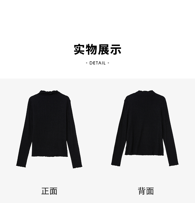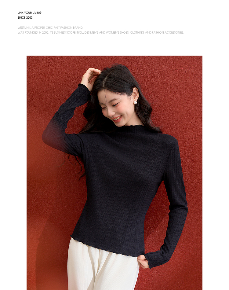 西遇木耳边半高领长袖T恤女冬季新款麦穗纹亲肤内搭针织衫V3955363