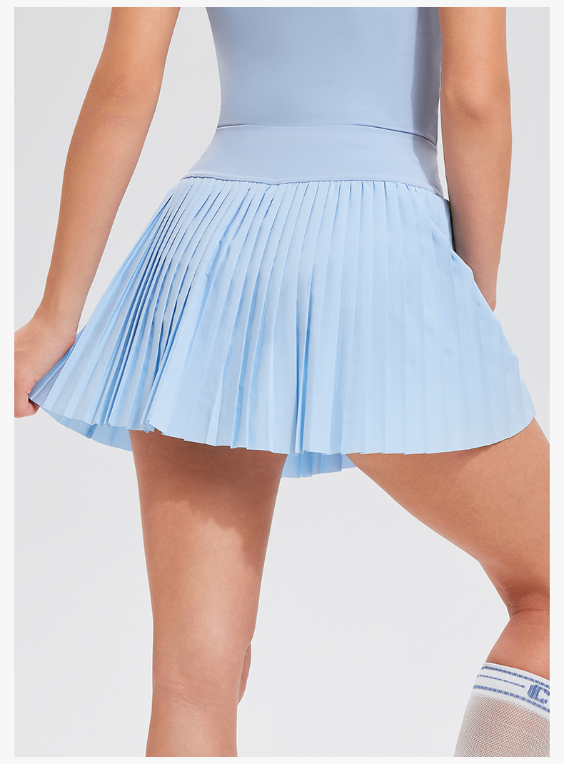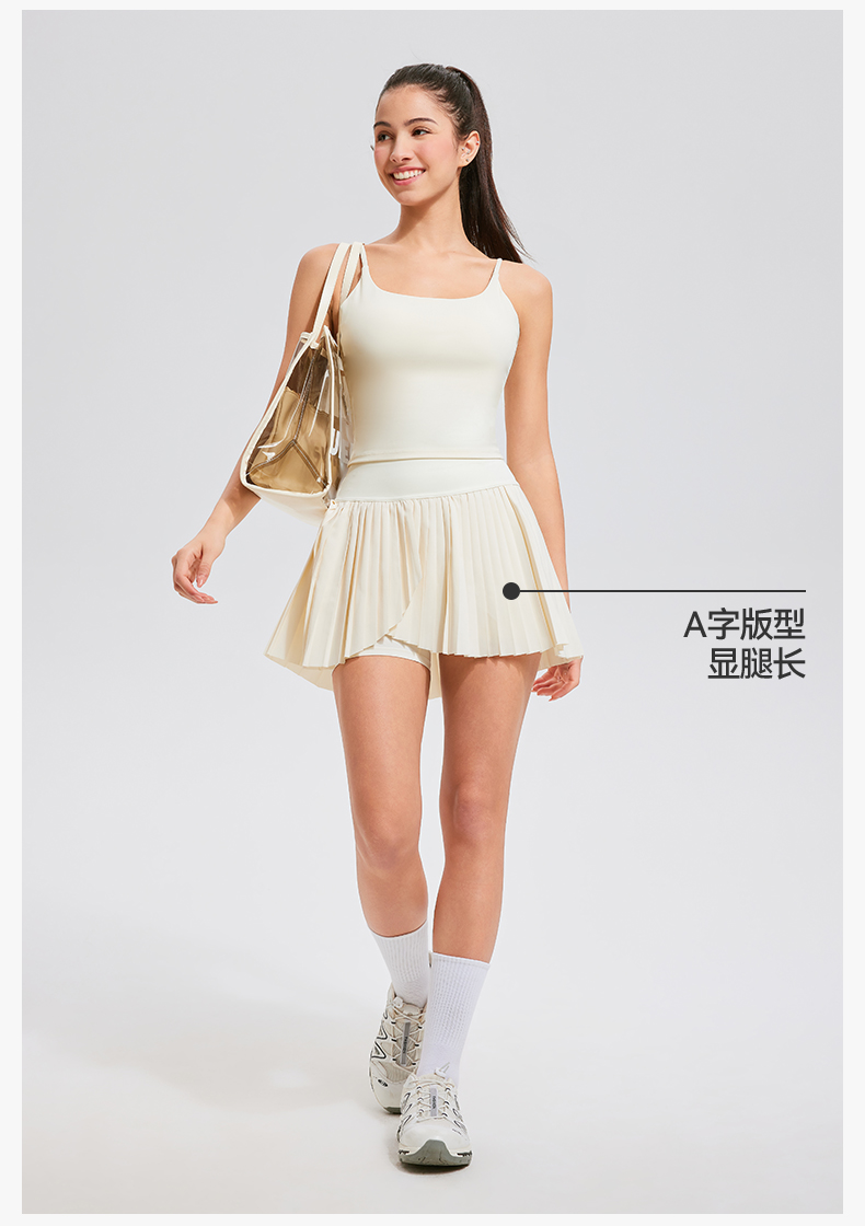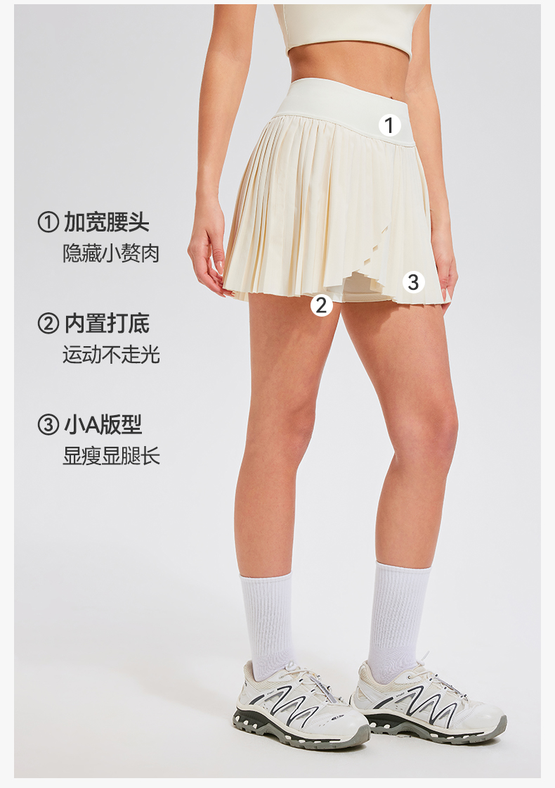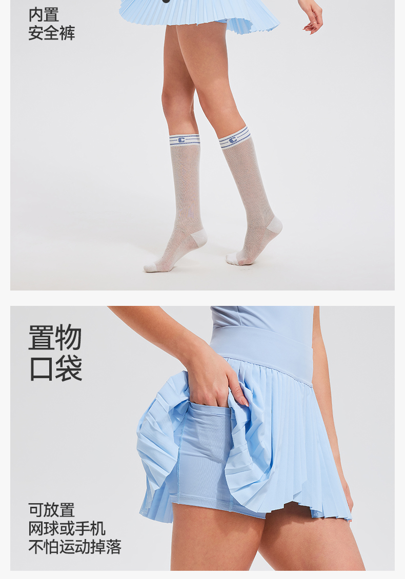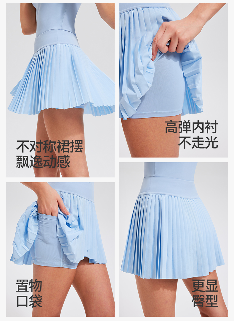 【2025上新】科里芙假两件开叉百褶裙A字裙高腰显瘦带口袋女