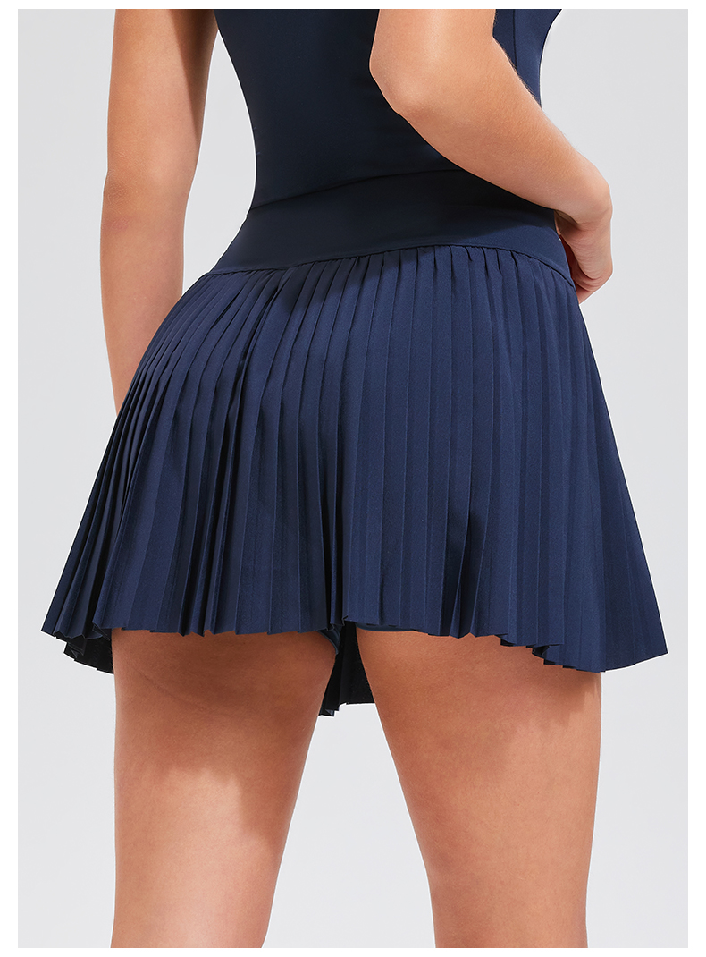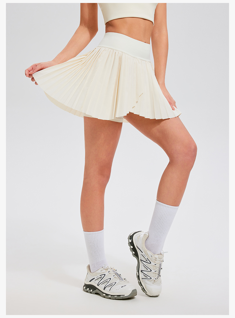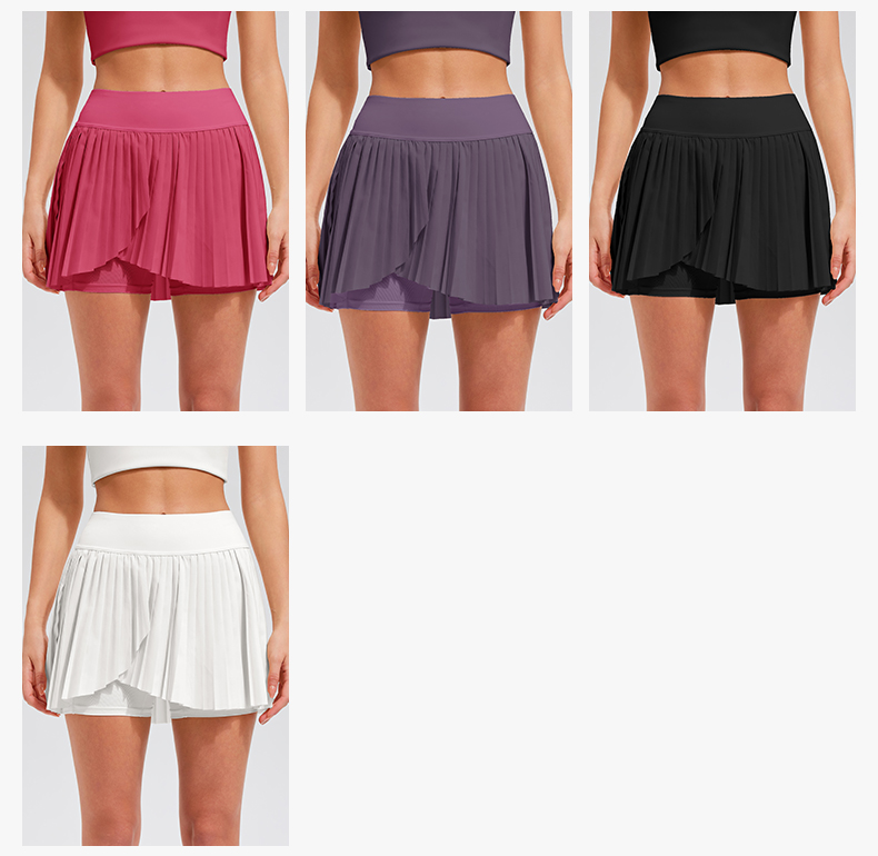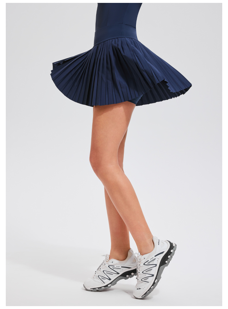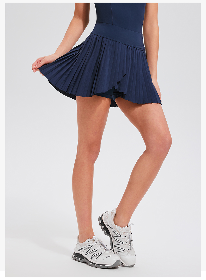 【2025上新】科里芙假两件开叉百褶裙A字裙高腰显瘦带口袋女
