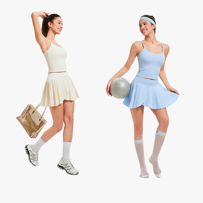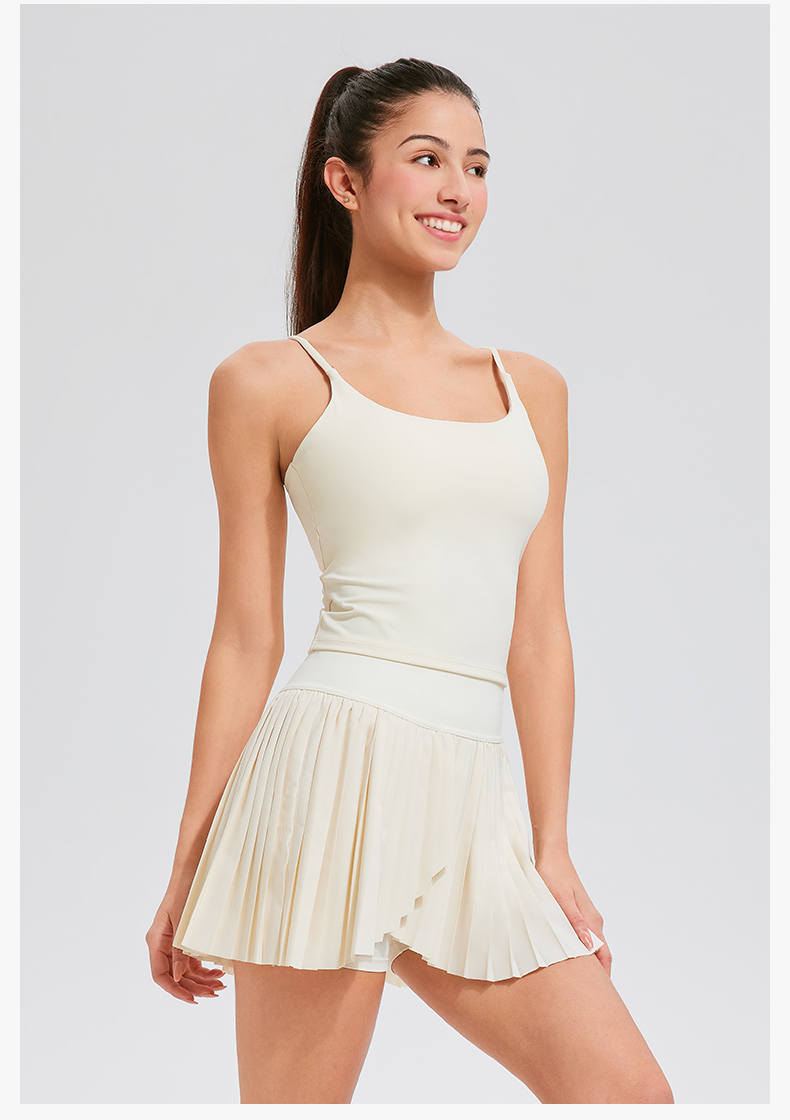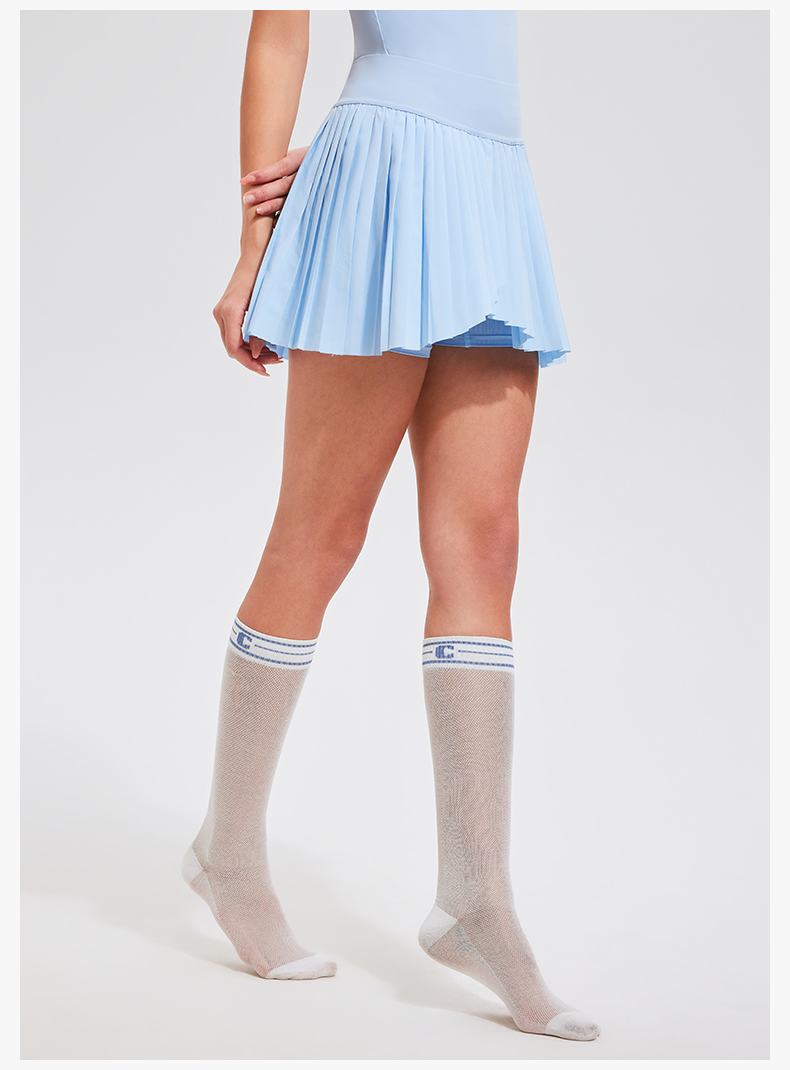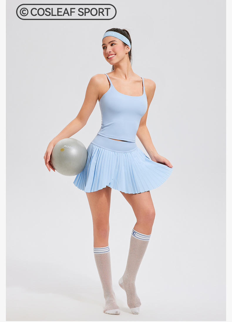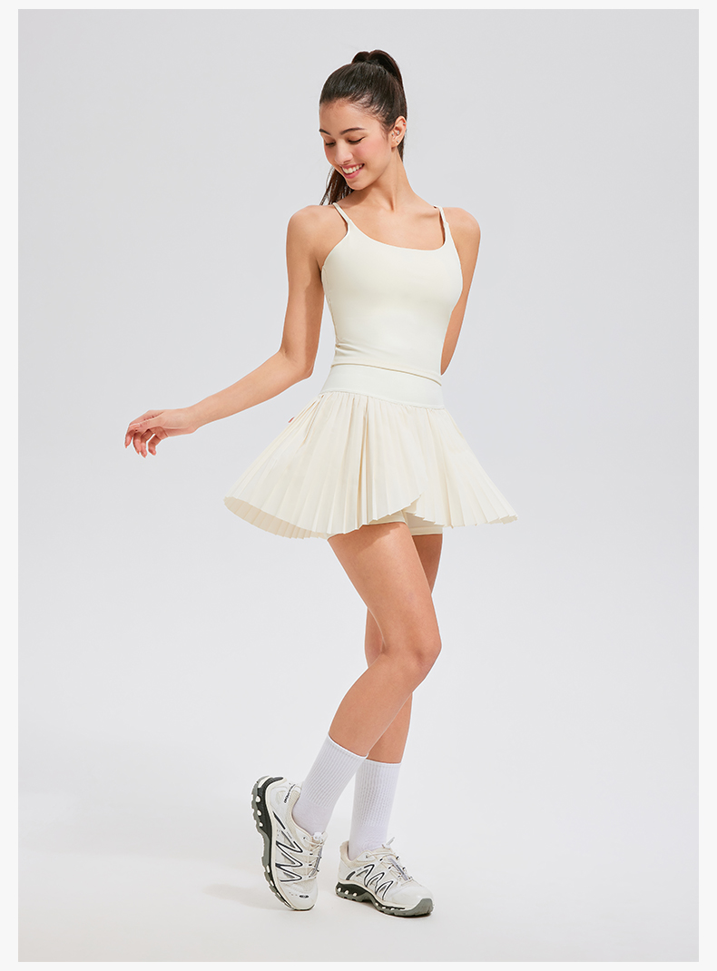 【2025上新】科里芙假两件开叉百褶裙A字裙高腰显瘦带口袋女