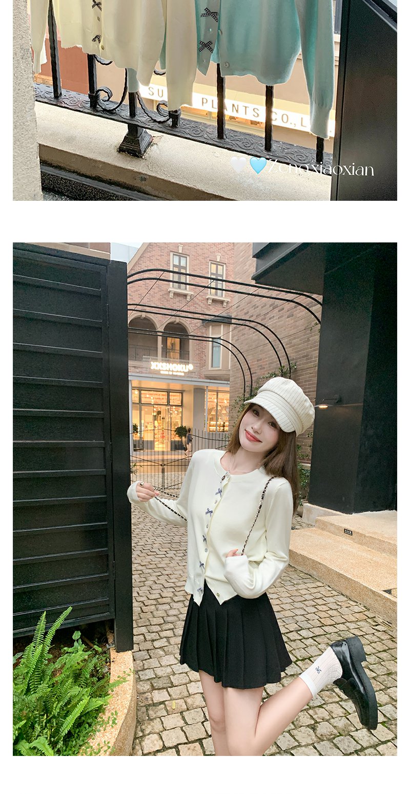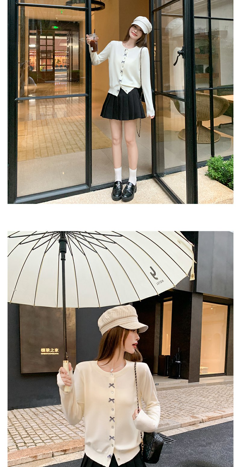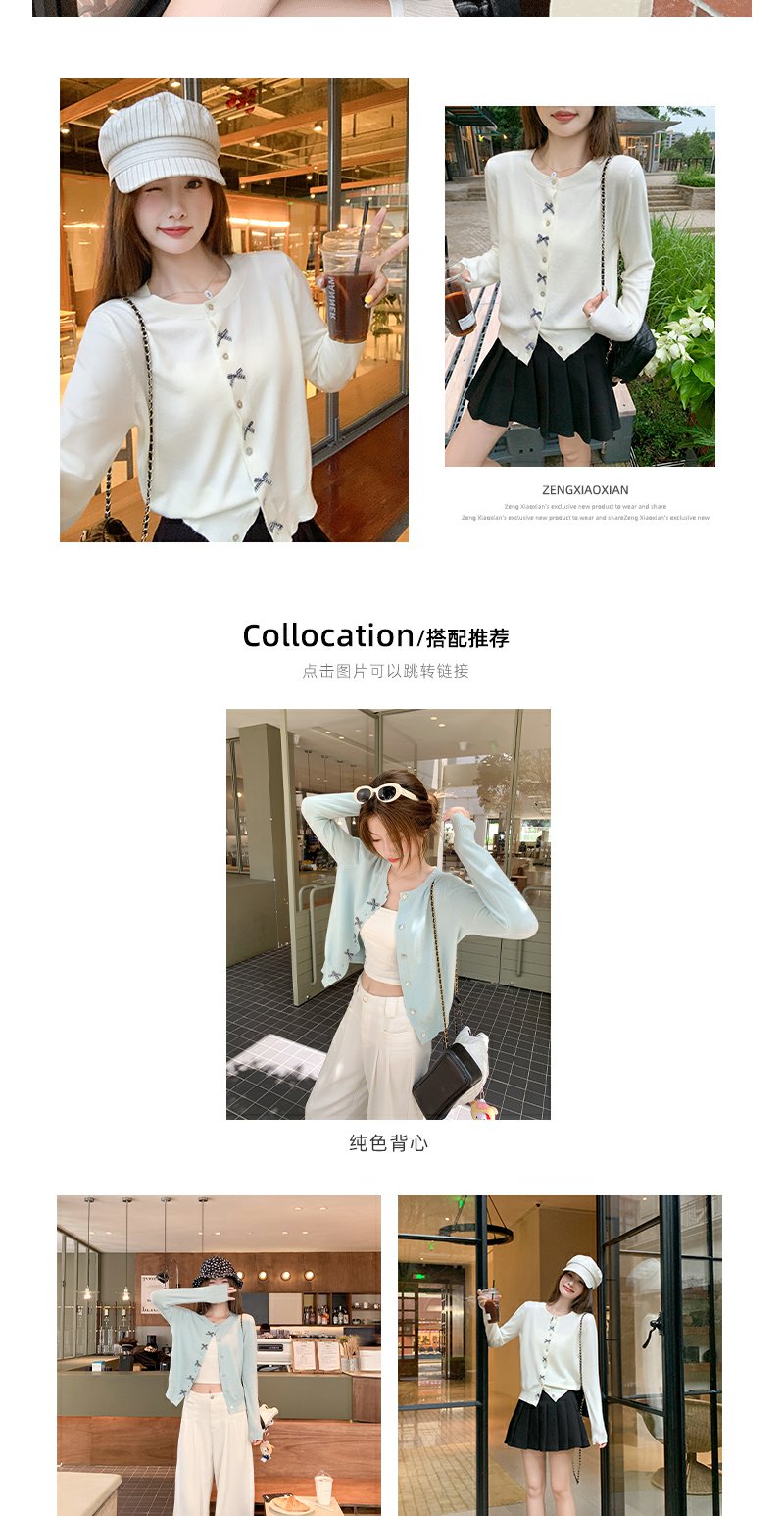 <曾小咸推荐>韩系甜美风蝴蝶结长袖针织开衫