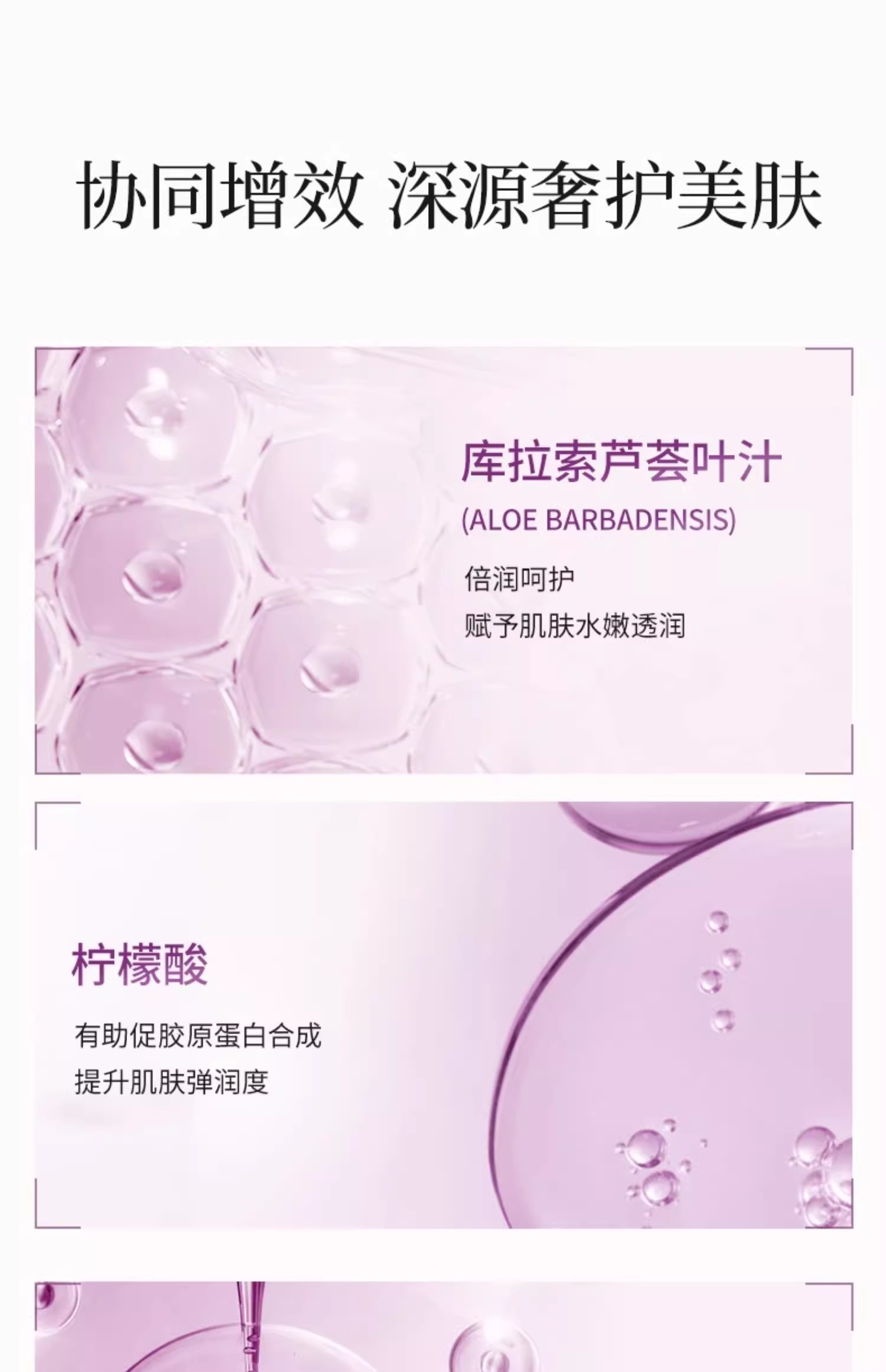 包含五大因子:逆韵再生因子、活氧緊緻因子、ga0 效保濕因子、美肌修瑕因子、細胞能量因子,