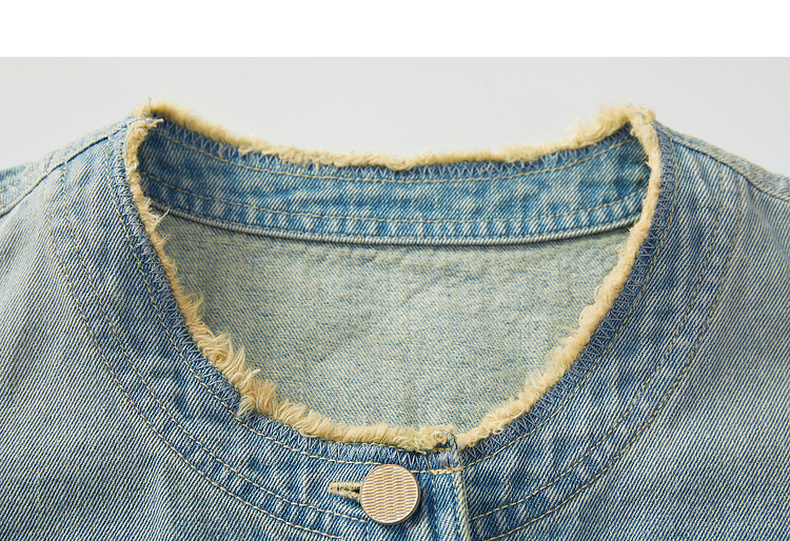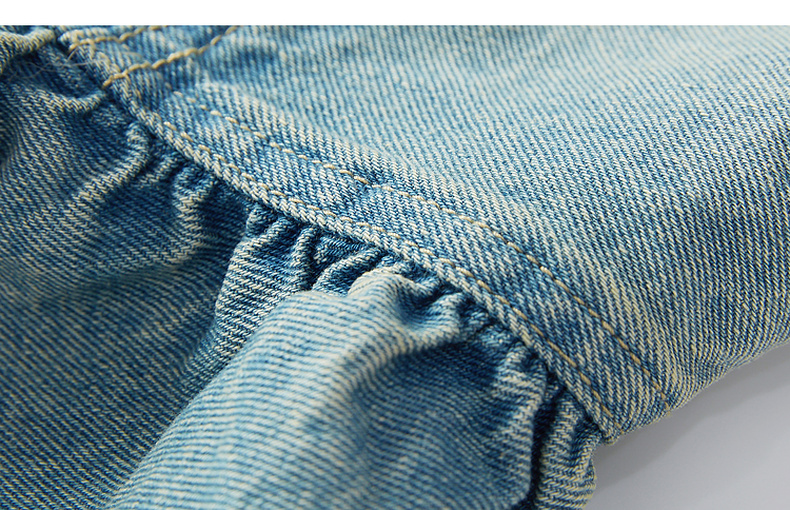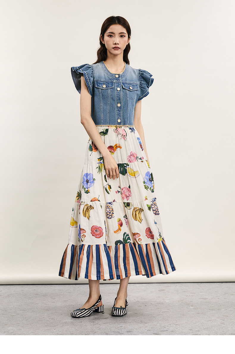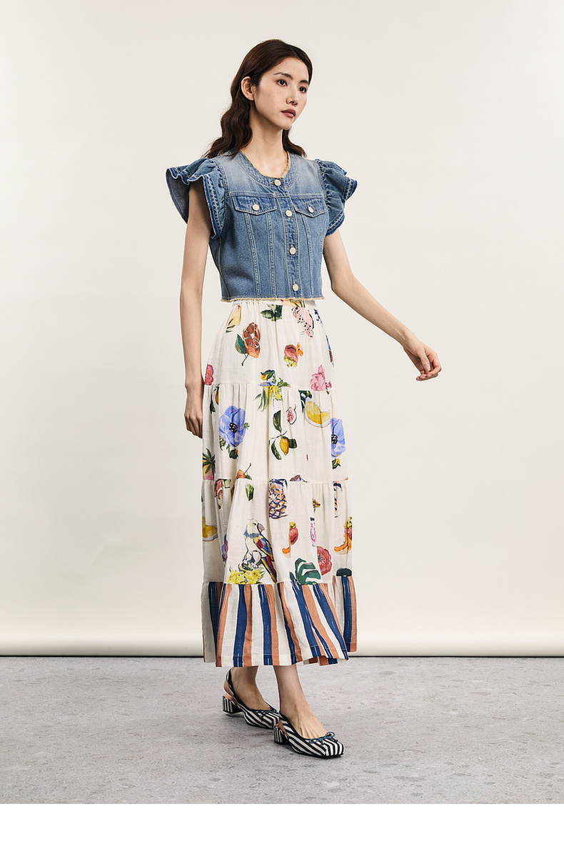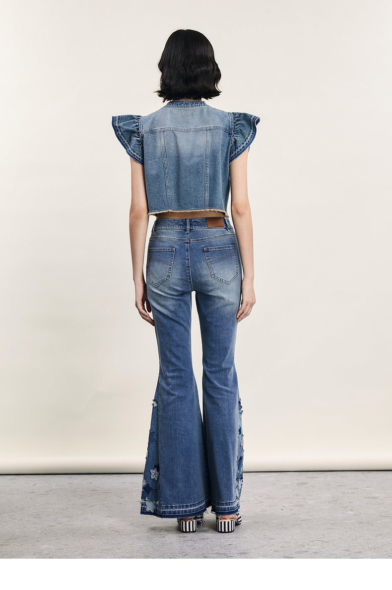 谜底牛仔马甲外套女2024夏新品复古文艺风荷叶袖短上衣242MW0562