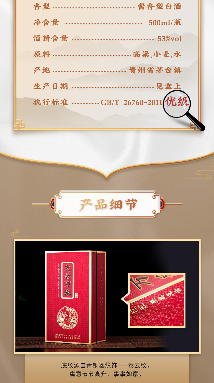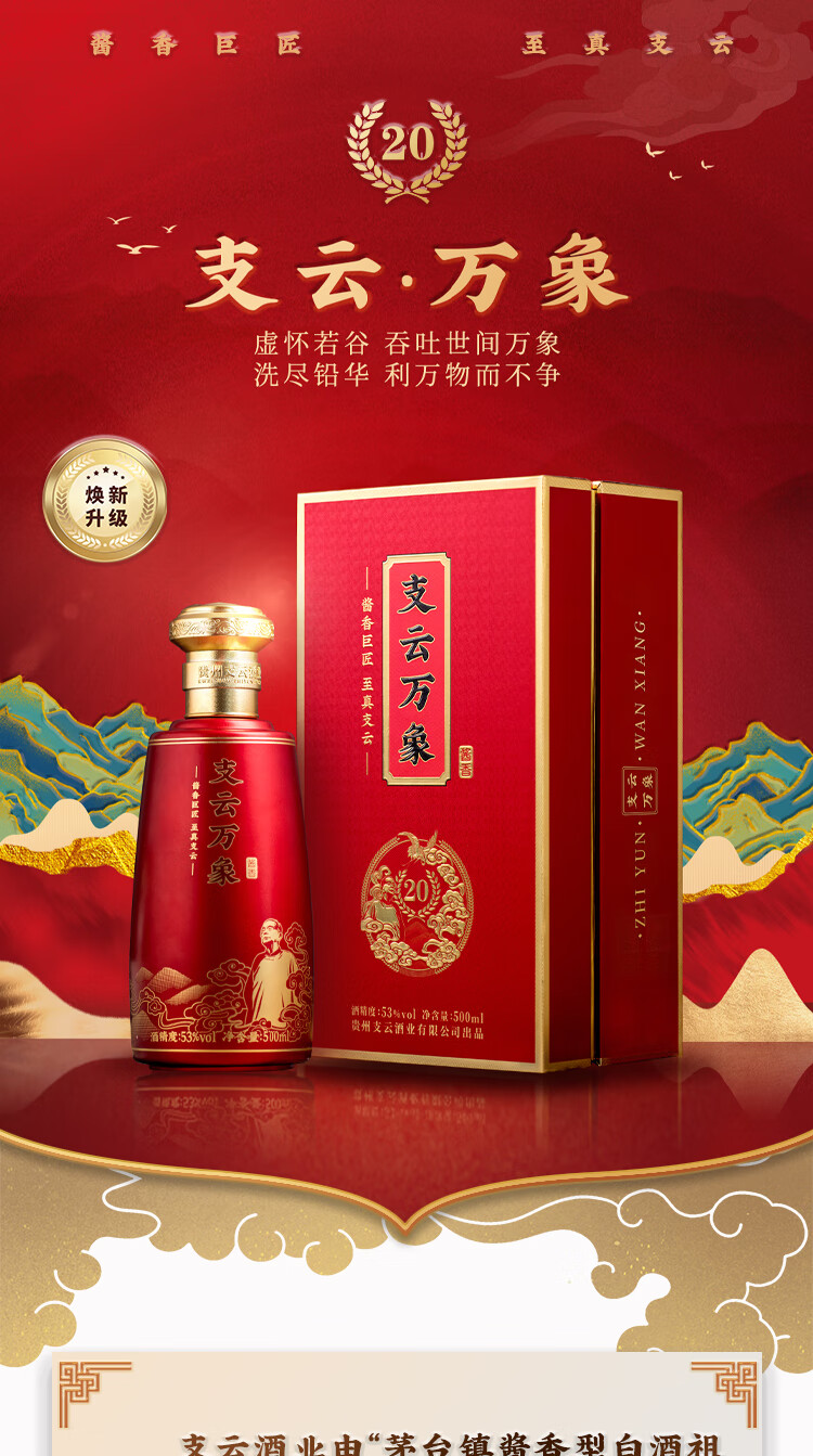 张支云 支云万象 酱香型白酒53度500mL单瓶装支云万象