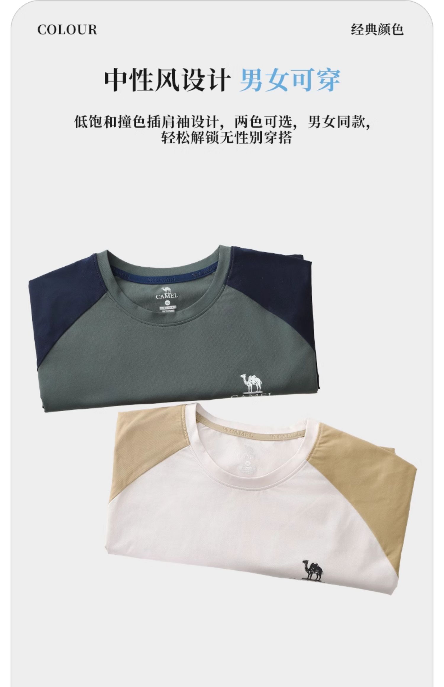 骆驼女装长袖圆领T恤女薄款2024春夏新款拼色防晒速干透气上衣A34BA6K092