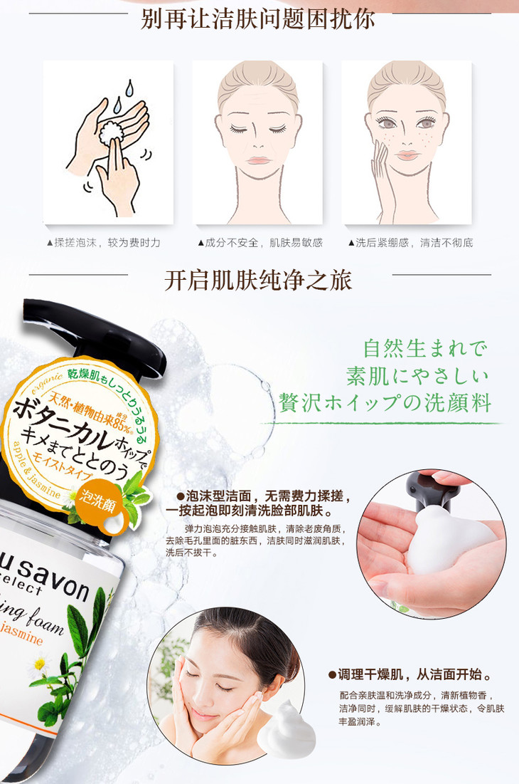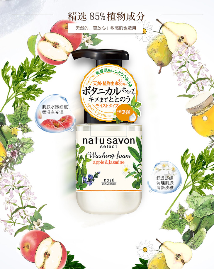 日本Kose高丝natu savon植物氨基酸洁面泡沫保湿美白净透洗面奶 180ML