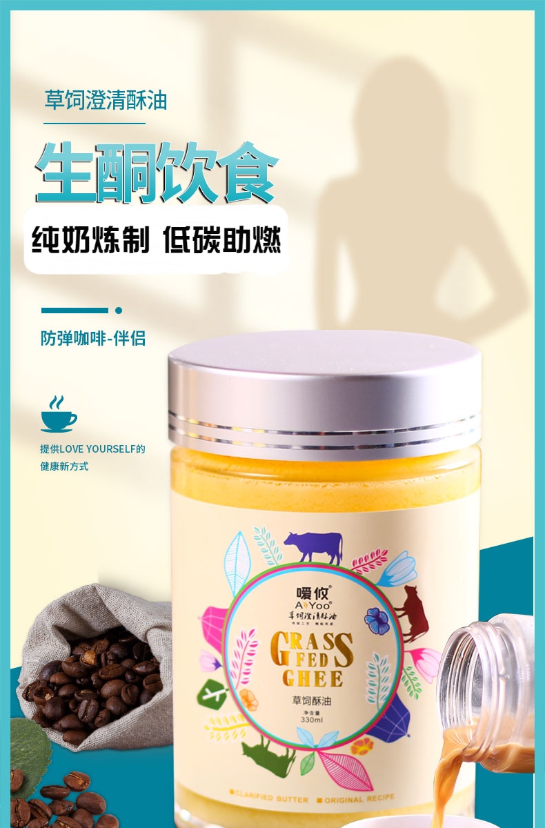 嗳攸草食饲澄清熟酥油阿育吠陀生酮彩虹轻饮食印度瑜伽防弹咖啡用