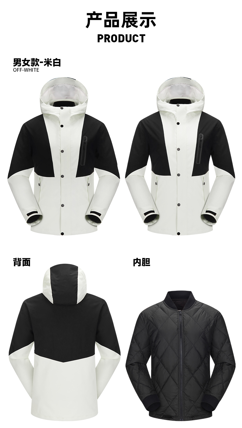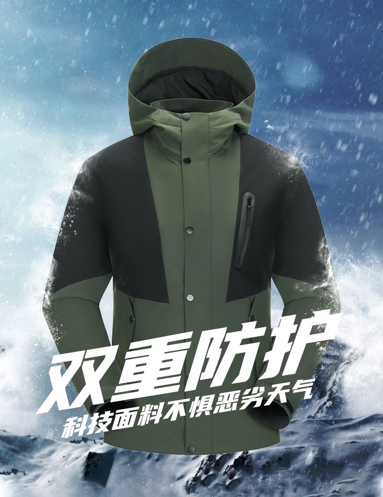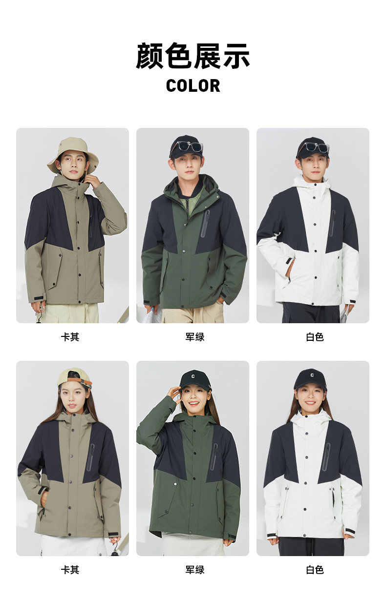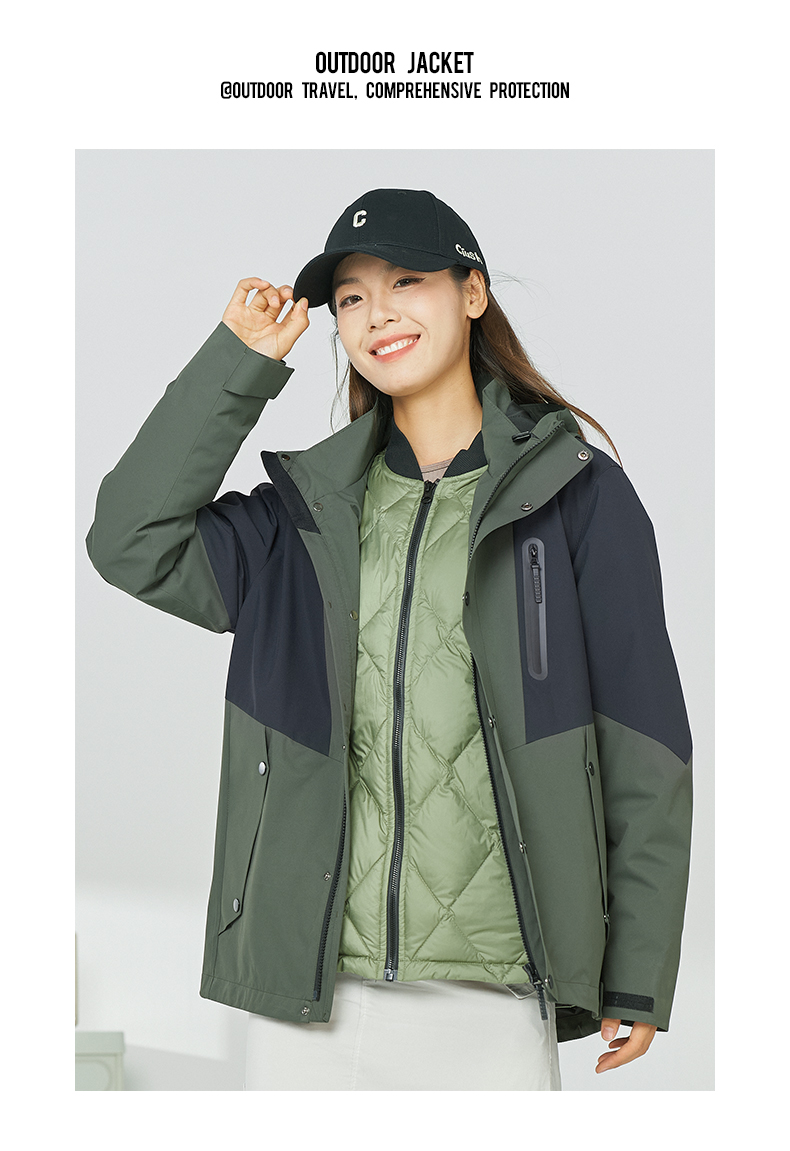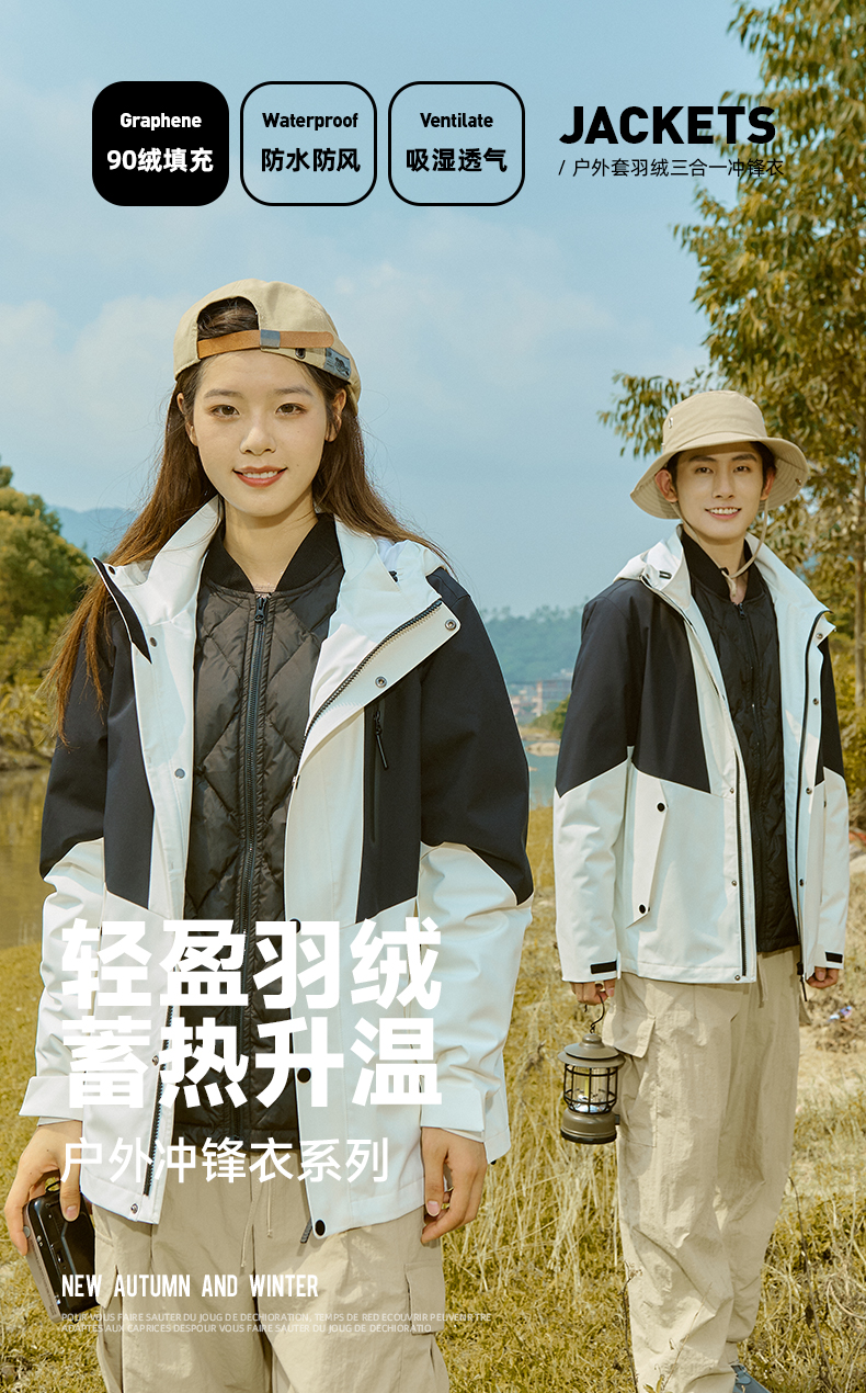 幸运鹿 防风防水三合一90鸭绒内胆男女同款2308Y