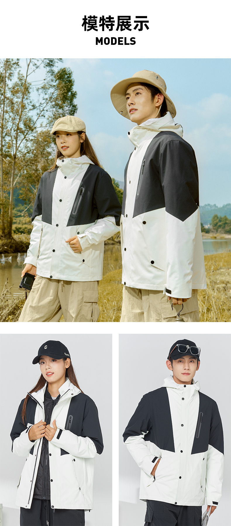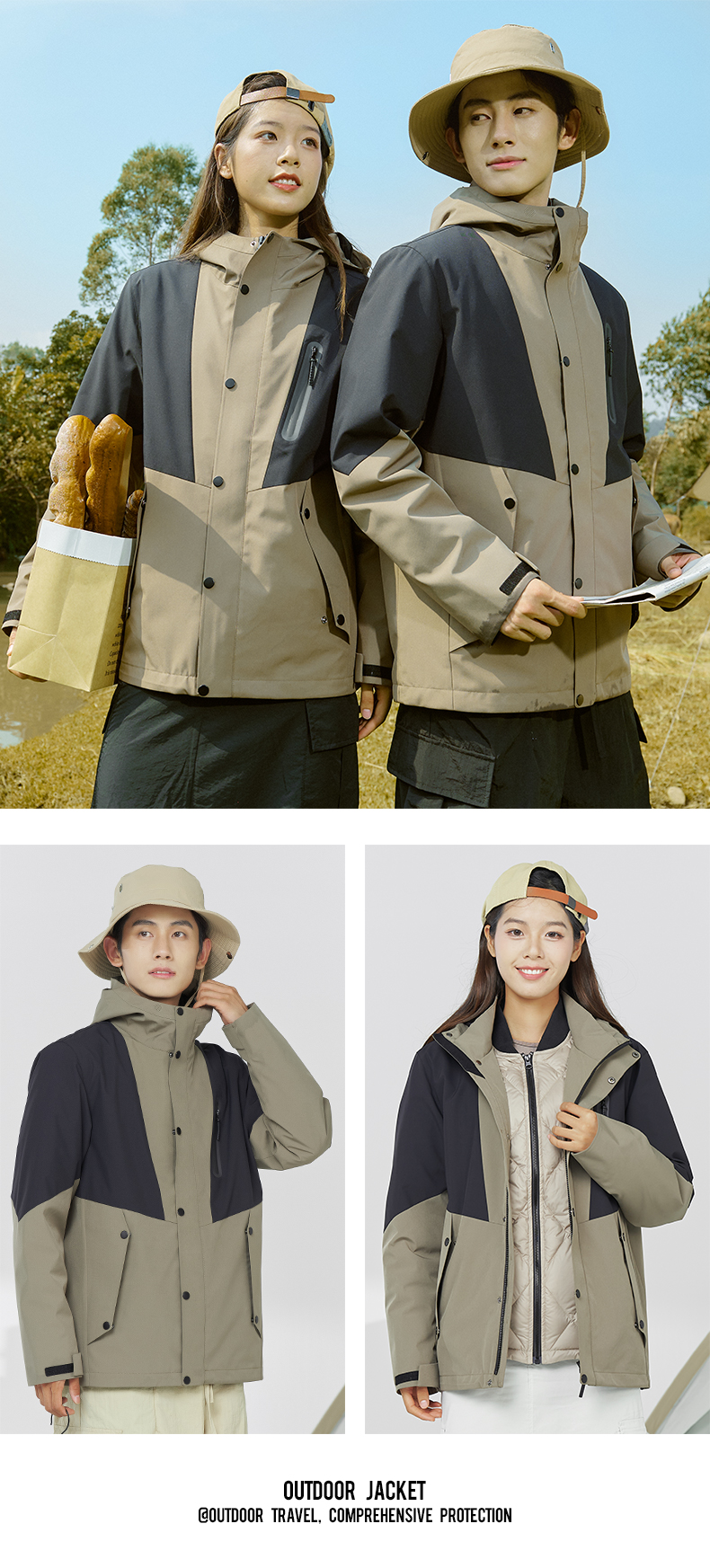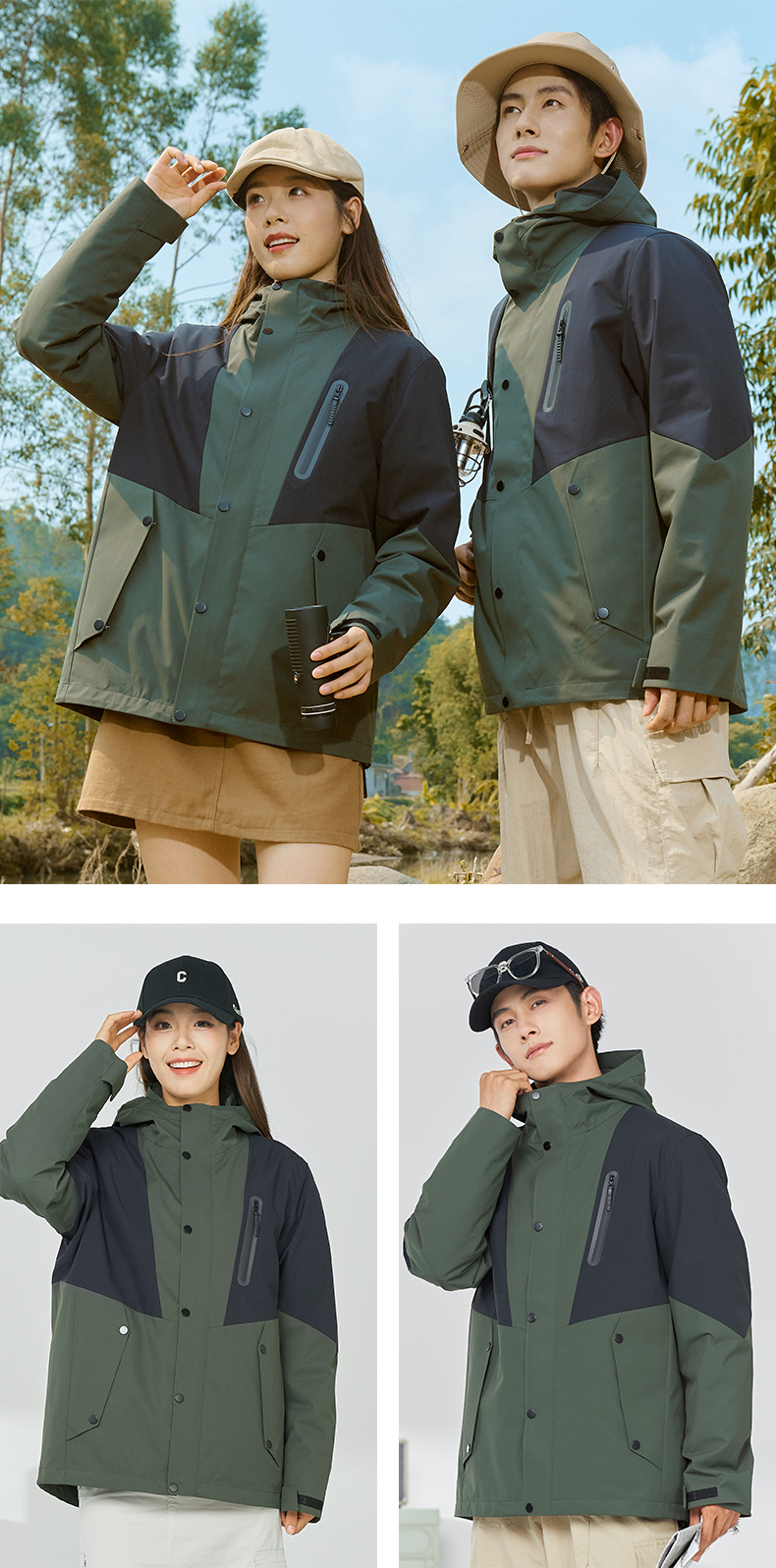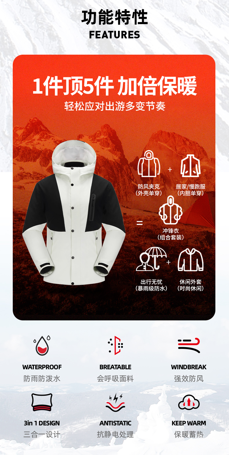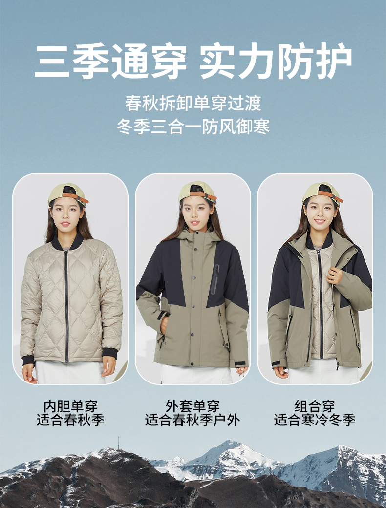 幸运鹿 防风防水三合一90鸭绒内胆男女同款2308Y