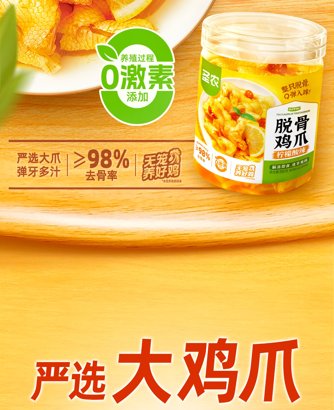 【满减专区】圣农脱骨鸡爪浓郁蒜香味柠檬酸辣味 500g*1罐,单拍不包邮